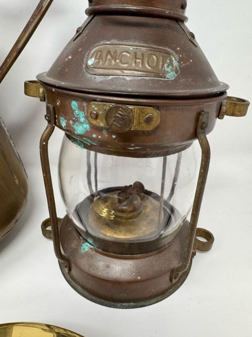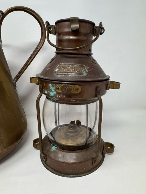 Lot # 45 - Copper Pitcher Made in Holland w/ Anchor Lantern & Brass Bed Warmer