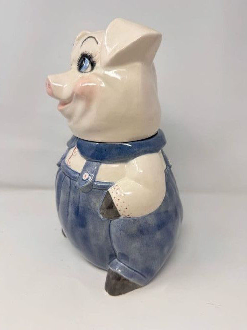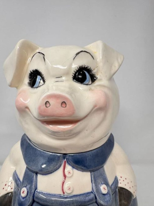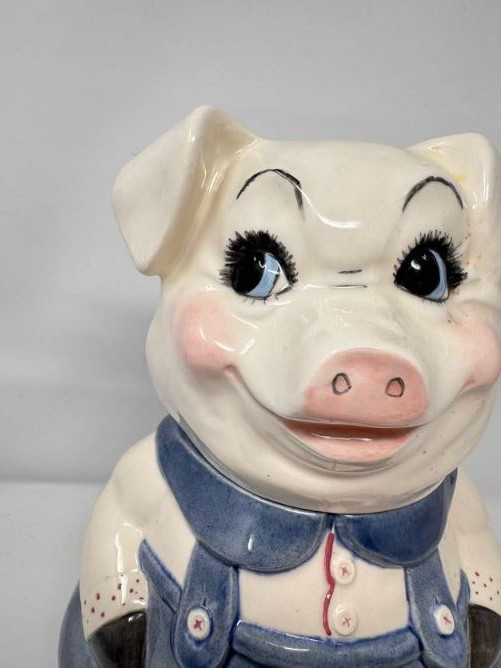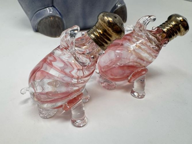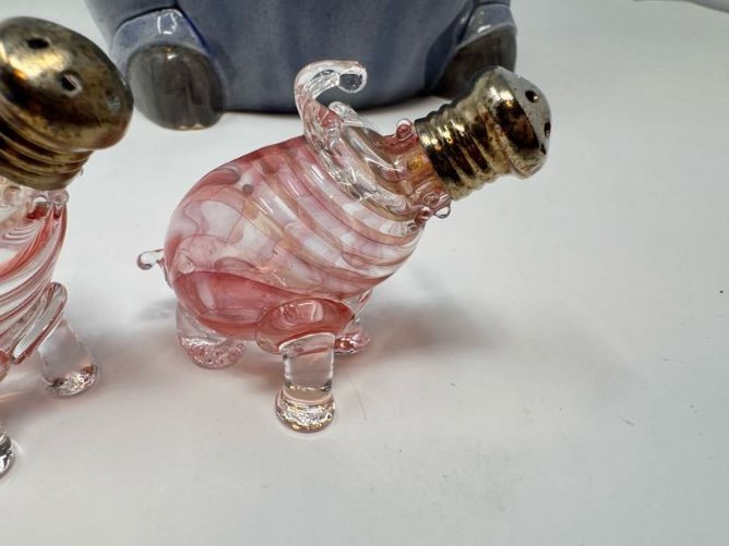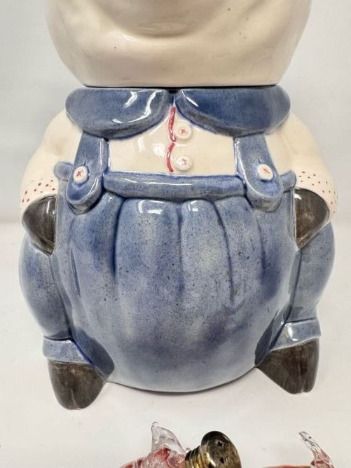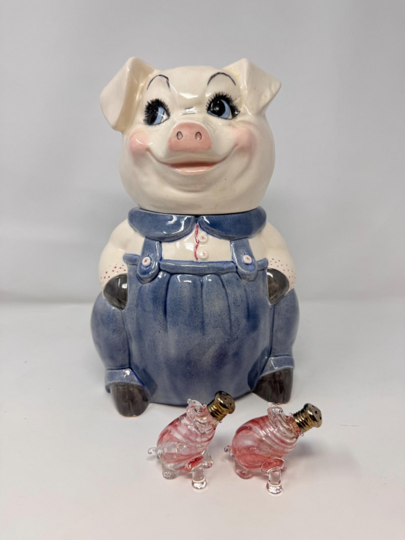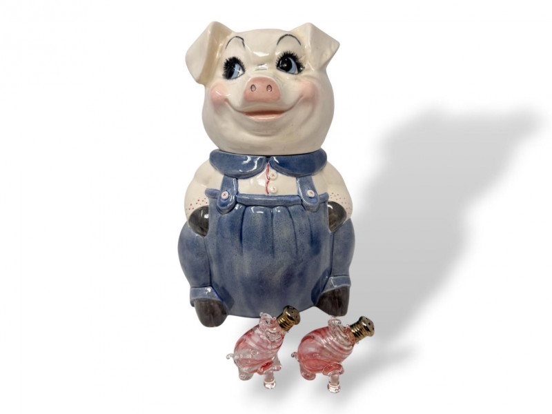 Lot # 47 - Vintage Pig Cookie Jar w/ Blown Glass Pig Salt & Pepper Shakers