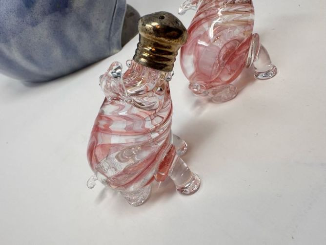 Vintage Pig Cookie Jar w/ Blown Glass Pig Salt & Pepper Shakers.