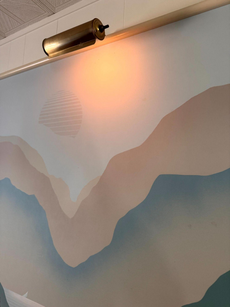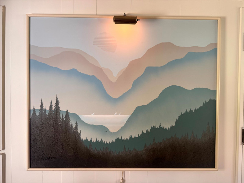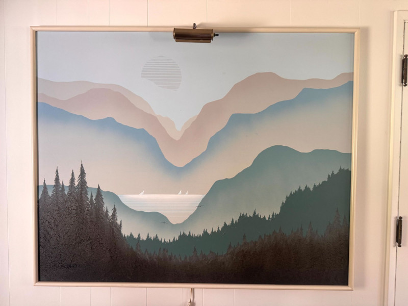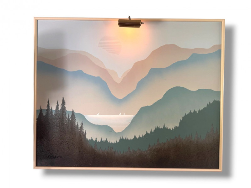 Mario De Ferrante Large Alpine Landscape Painting w/ Overhead Light.