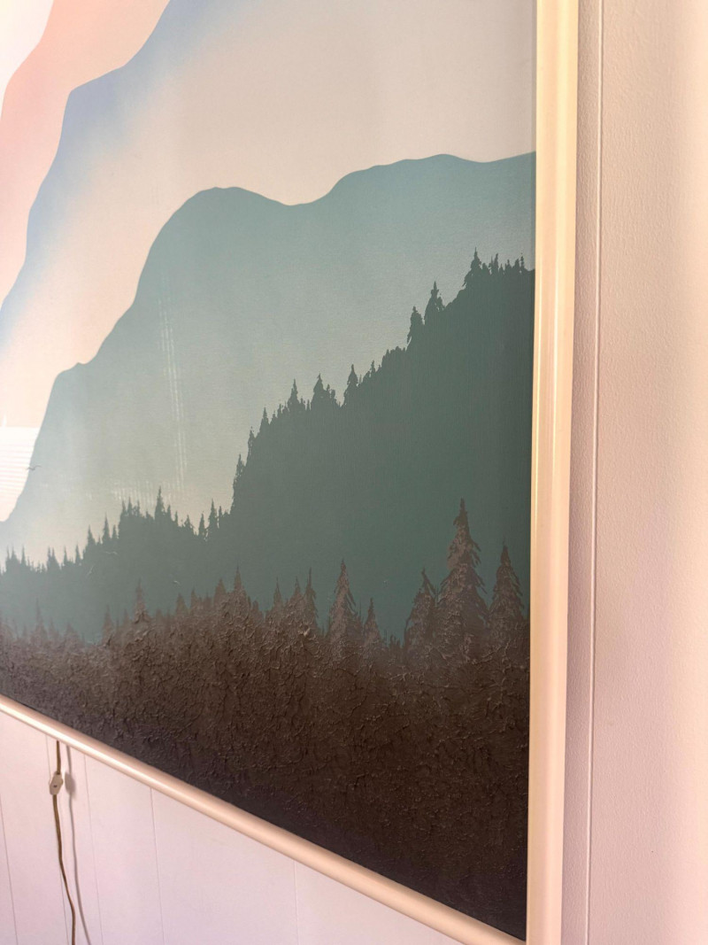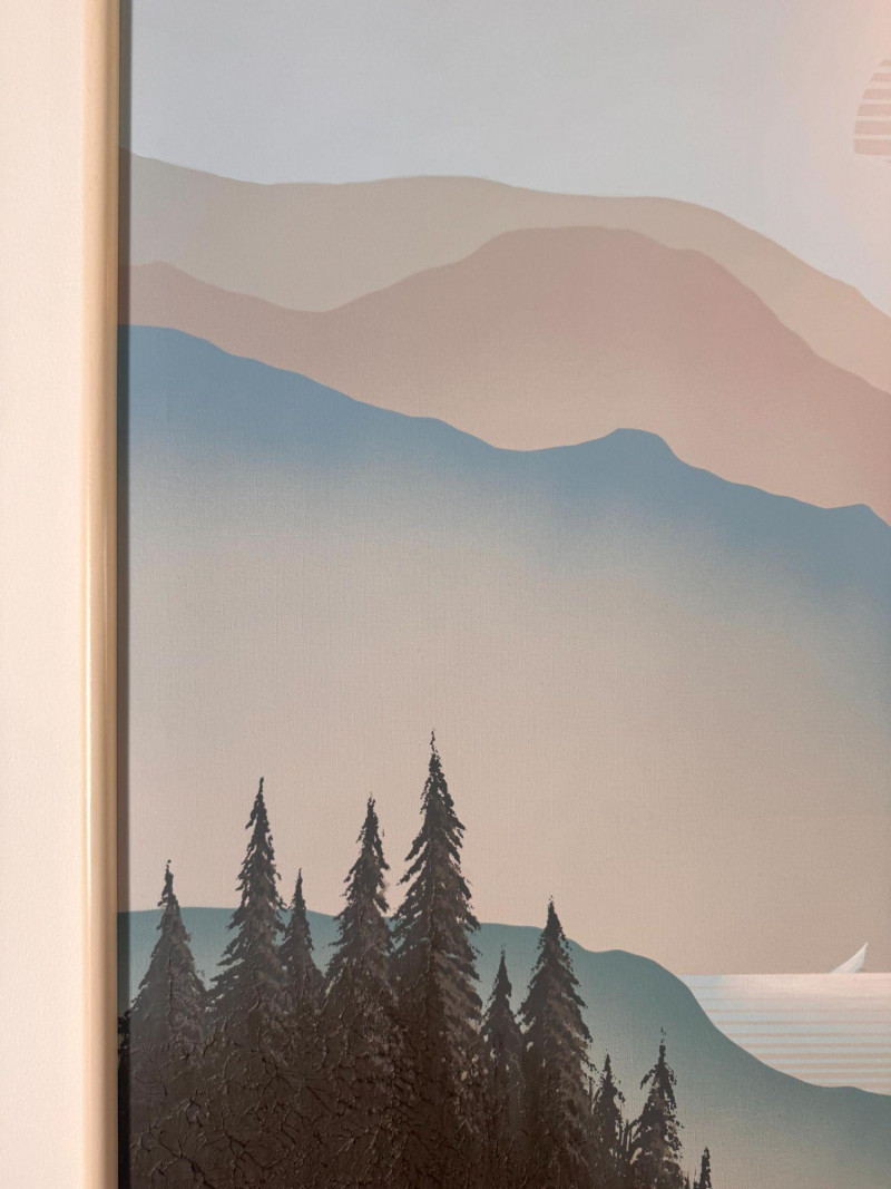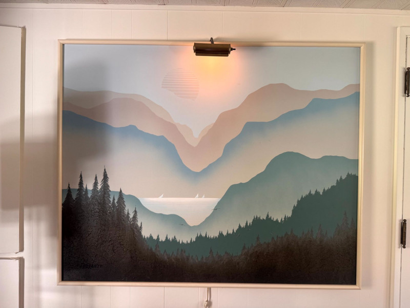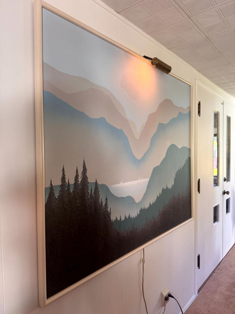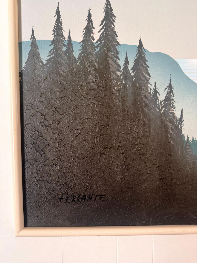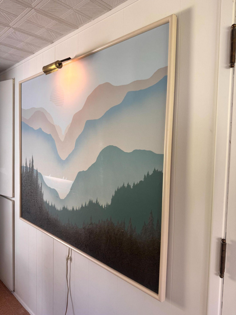 Lot # 50 - Mario De Ferrante Large Alpine Landscape Painting w/ Overhead Light