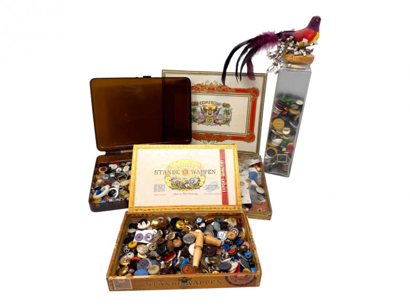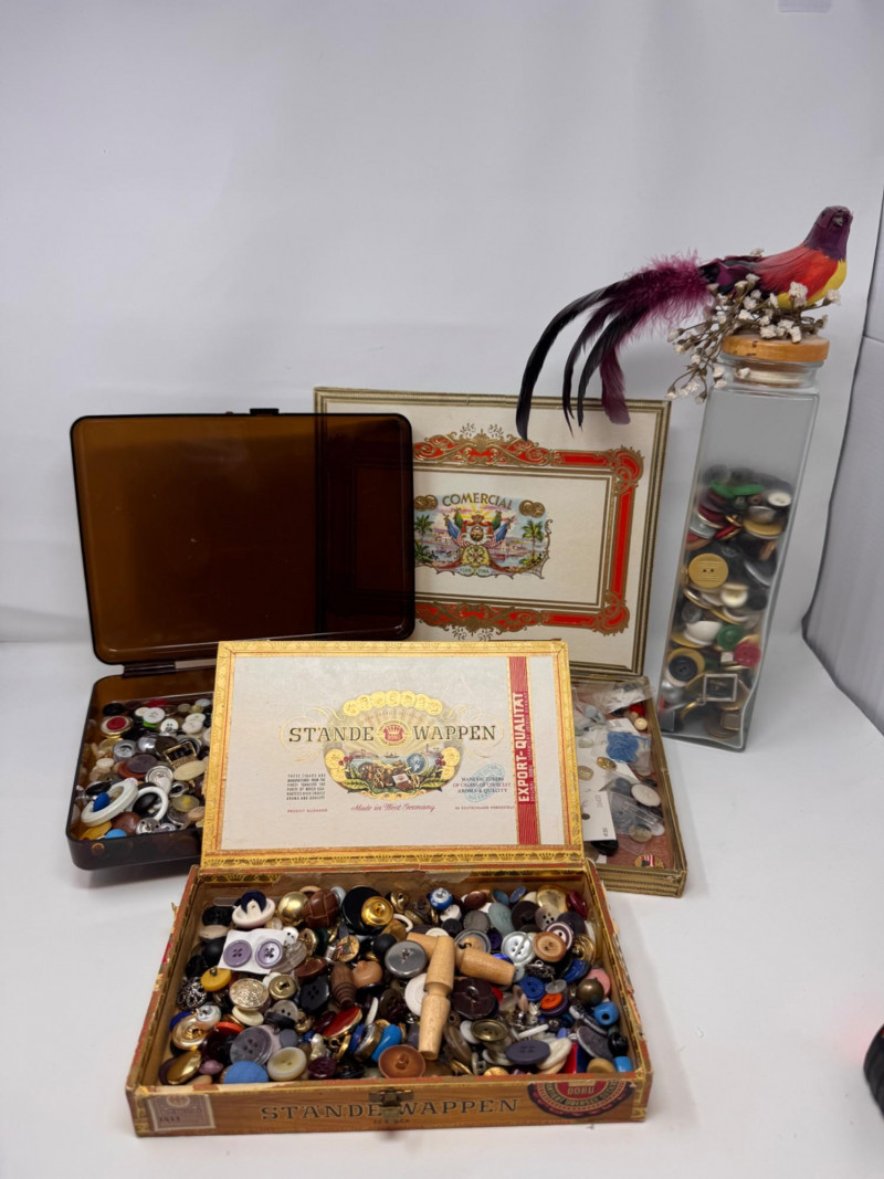 Lot # 55 - Large Vintage Button Collection w/ Mixed Materials in Boxes