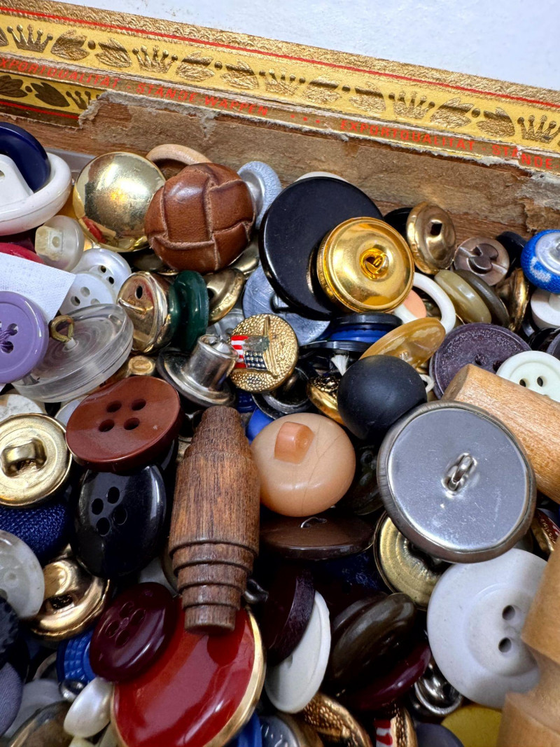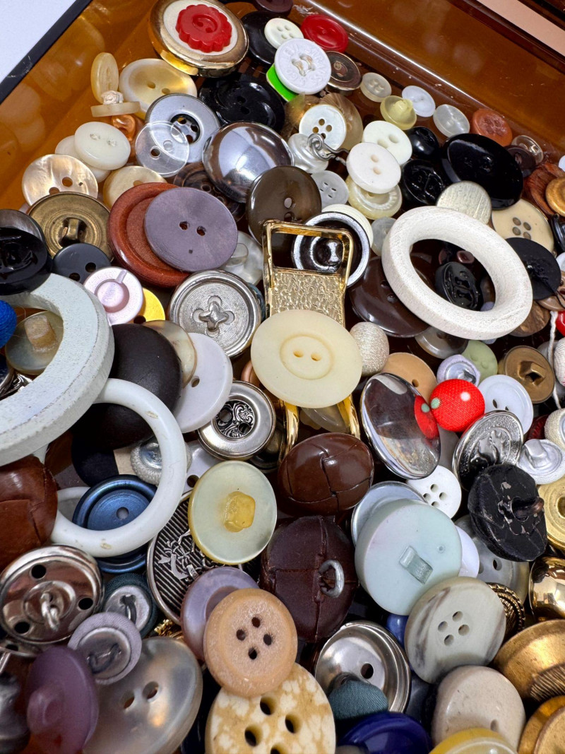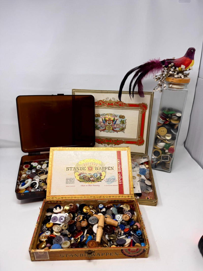 Large Vintage Button Collection w/ Mixed Materials in Boxes.