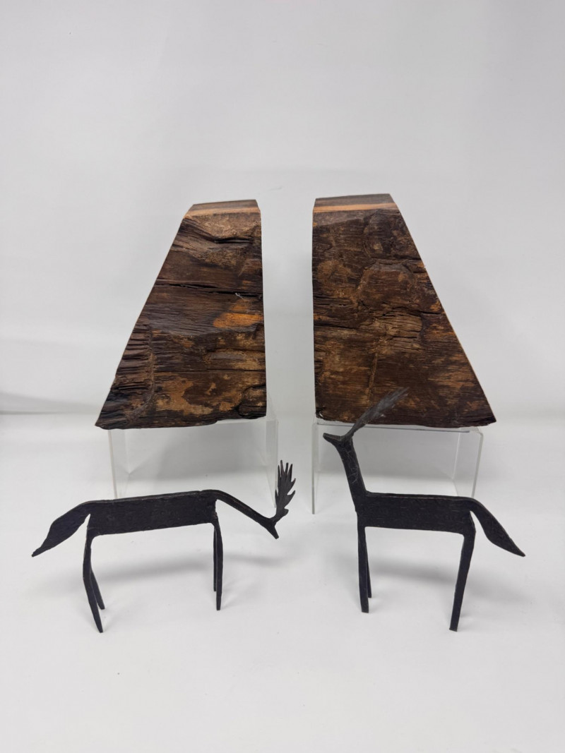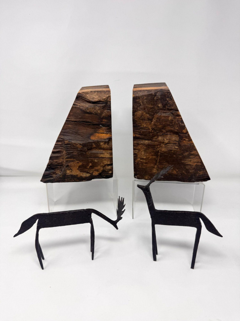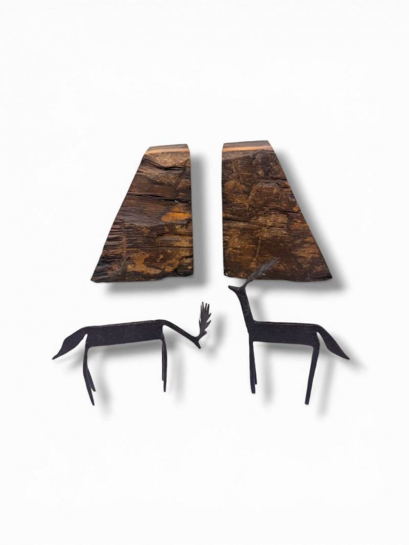 Lot # 57 - Rustic Wood Bookends w/ Primitive Iron Deer Figurines