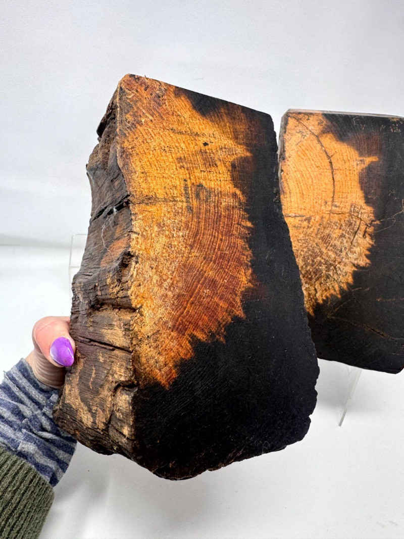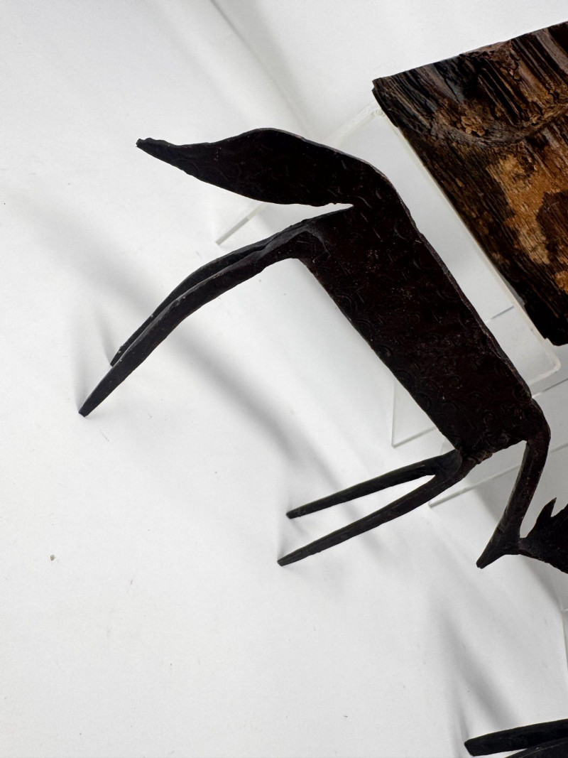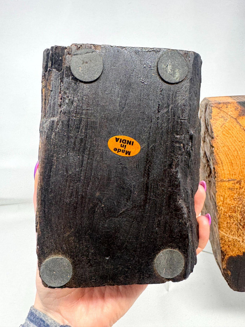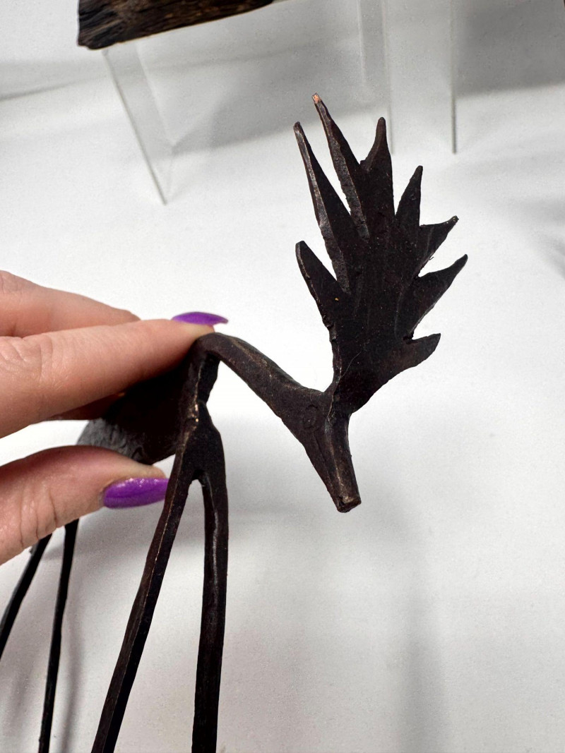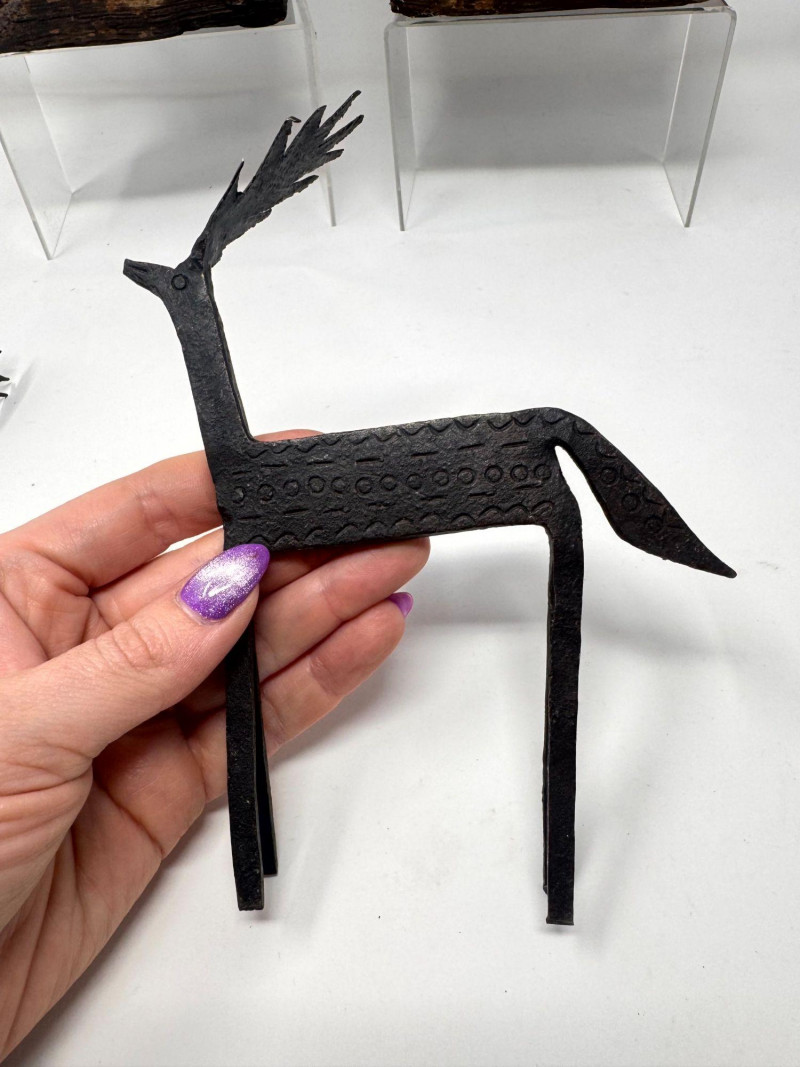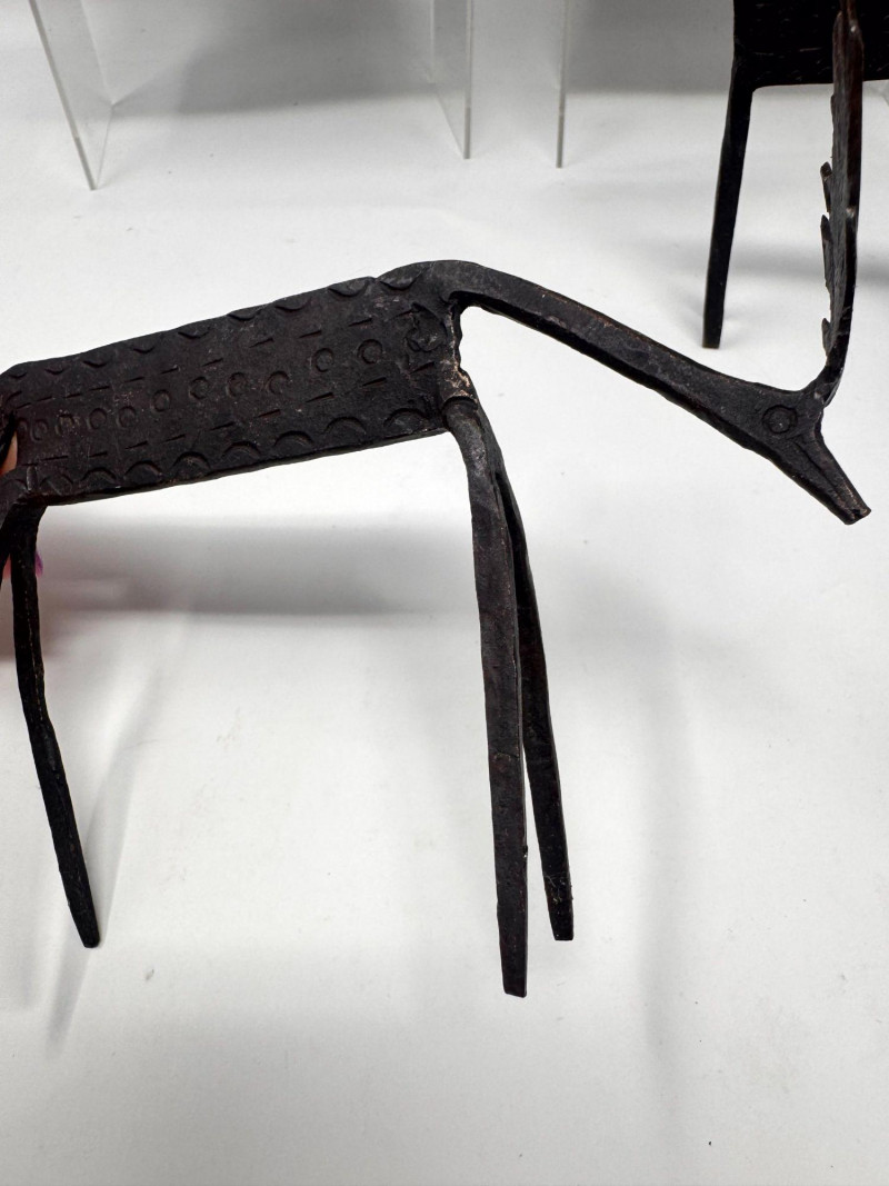 Rustic Wood Bookends w/ Primitive Iron Deer Figurines.