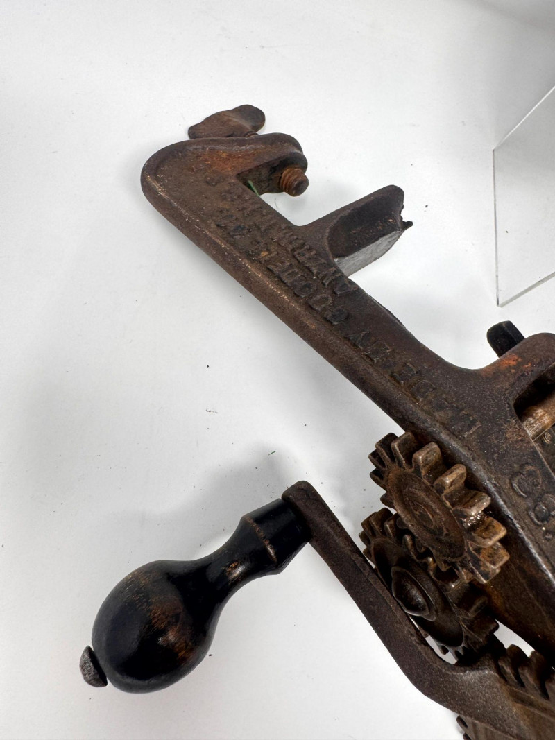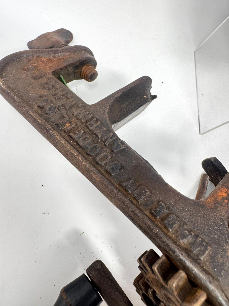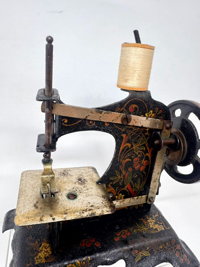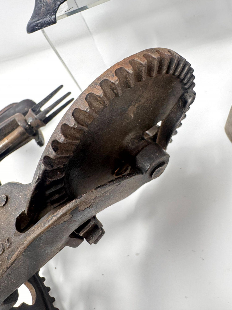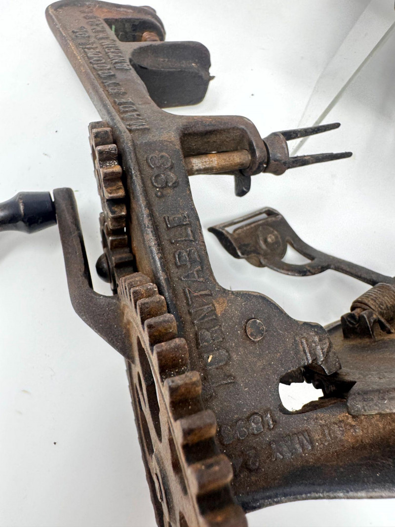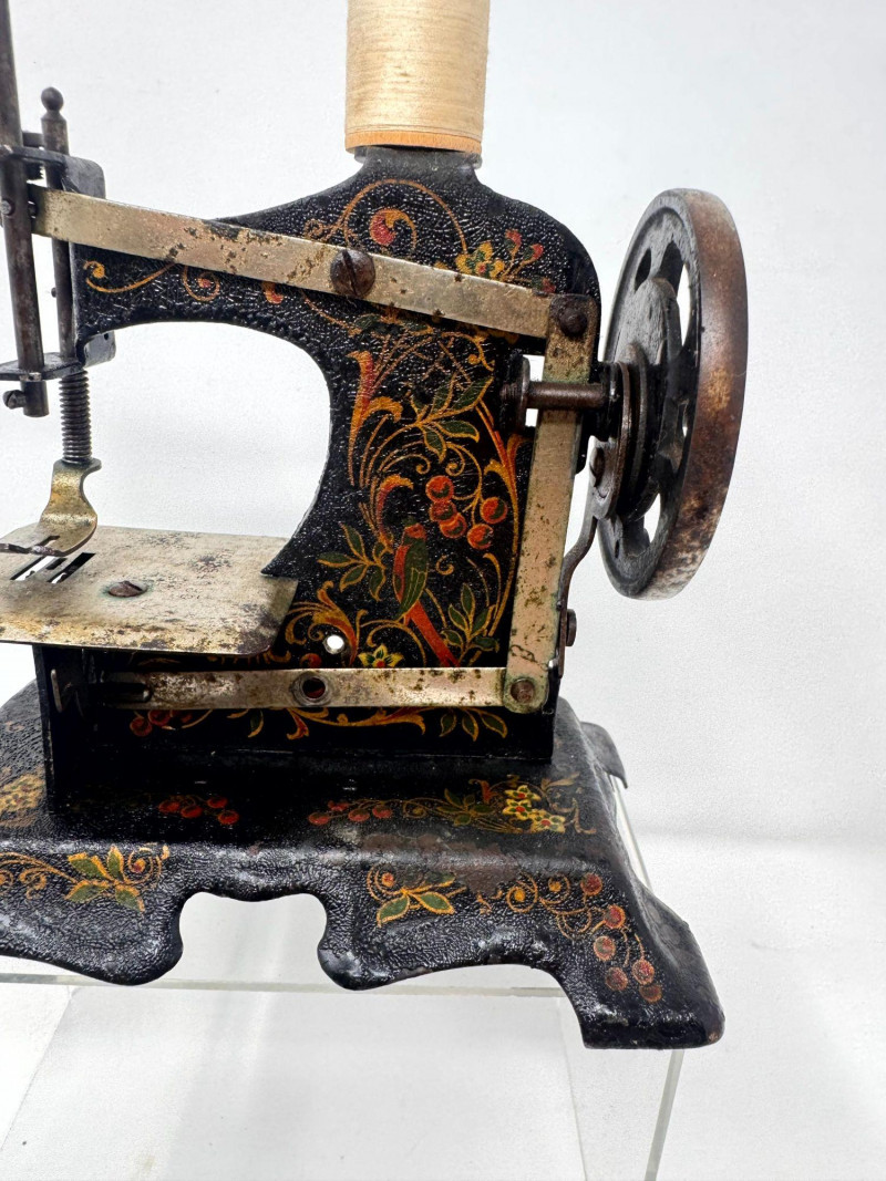 Antique Sewing Machine, Sad Iron & Cast Iron Apple Peeler.