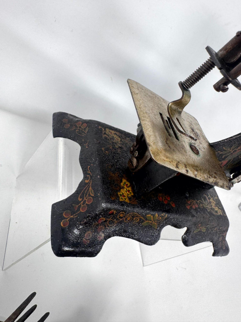 Lot # 59 - Antique Sewing Machine, Sad Iron & Cast Iron Apple Peeler