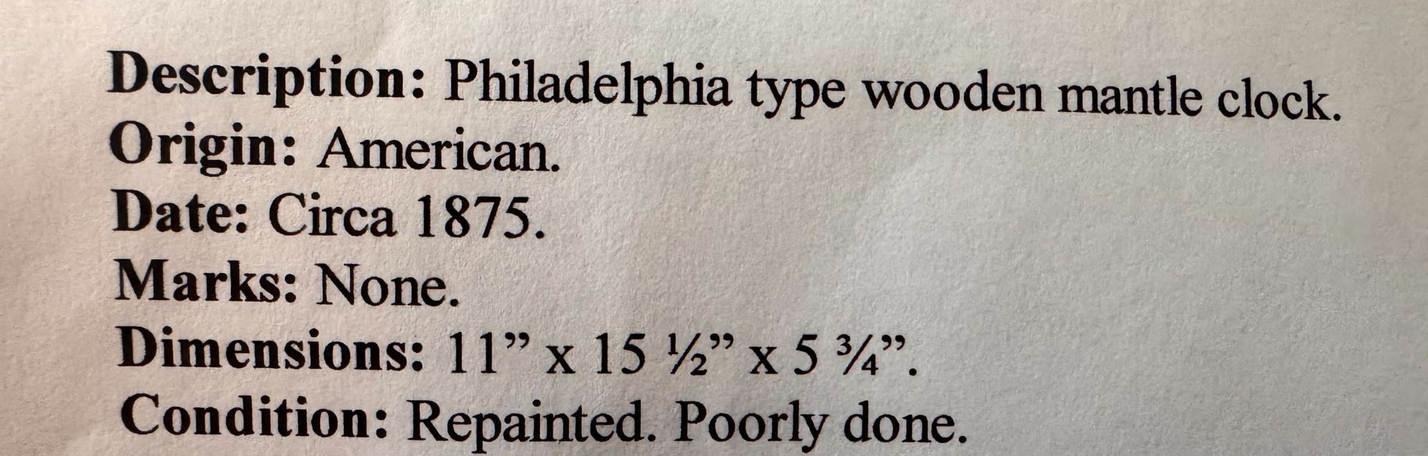 Antique Philadelphia Style Mantel Clock c.1875 – Repainted.