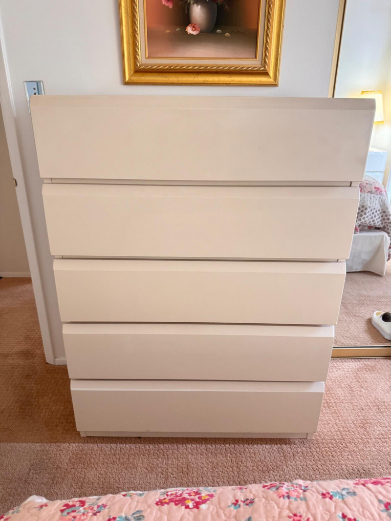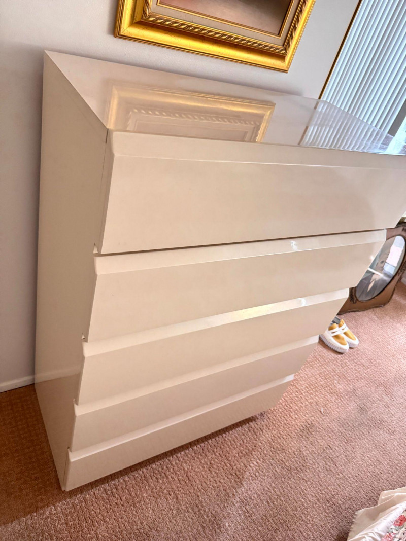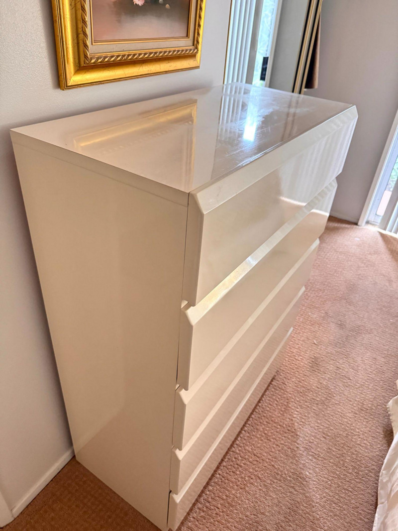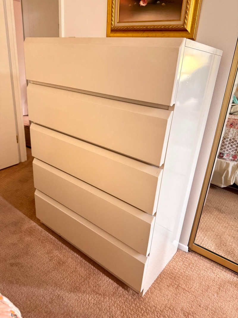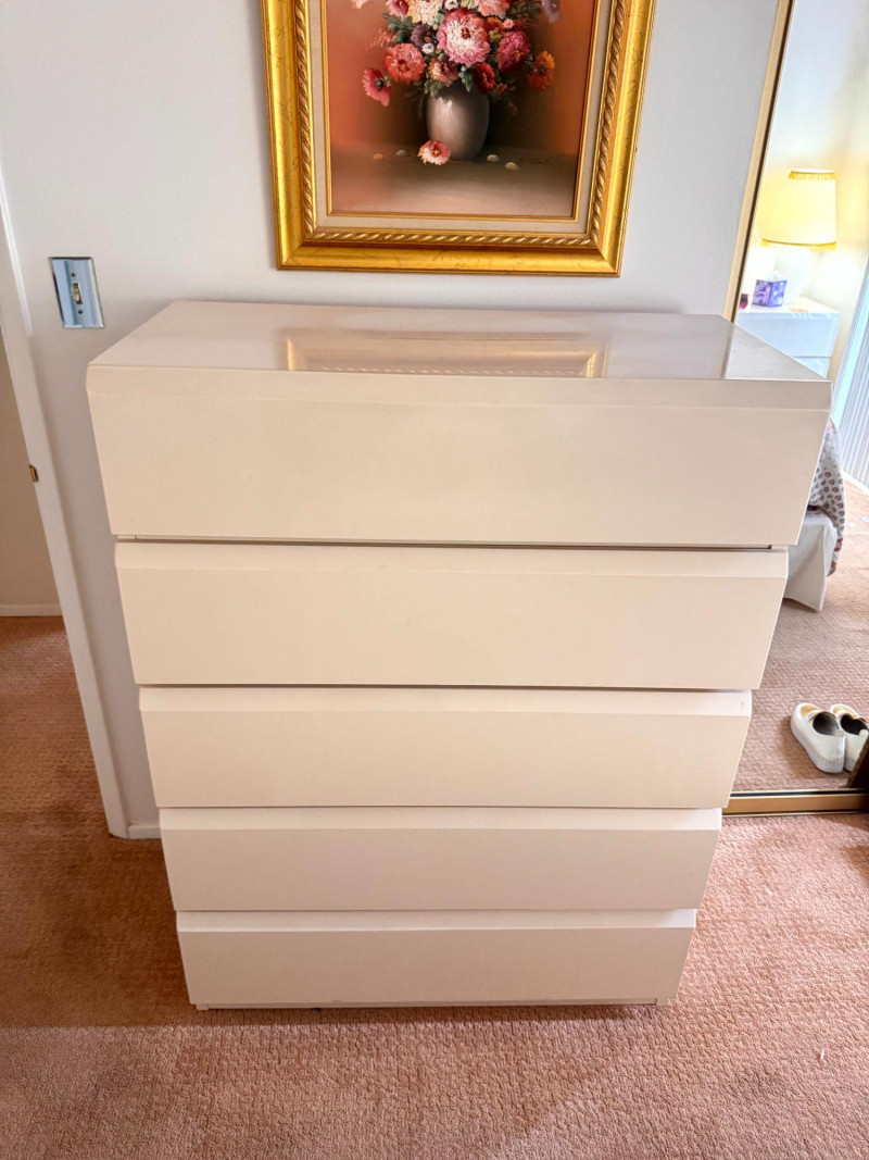 Vintage Lane Highboy Dresser – White Painted 5 Drawer Chest. Bidding on this lot is an agreement that: (1.) You will have at least 2 capable, able bodied persons to lift and load at a minimum. (2.) You will bring a hand truck and/or any other tools needed to remove this item. If these steps are not followed your item will be forfeit and no refund given.