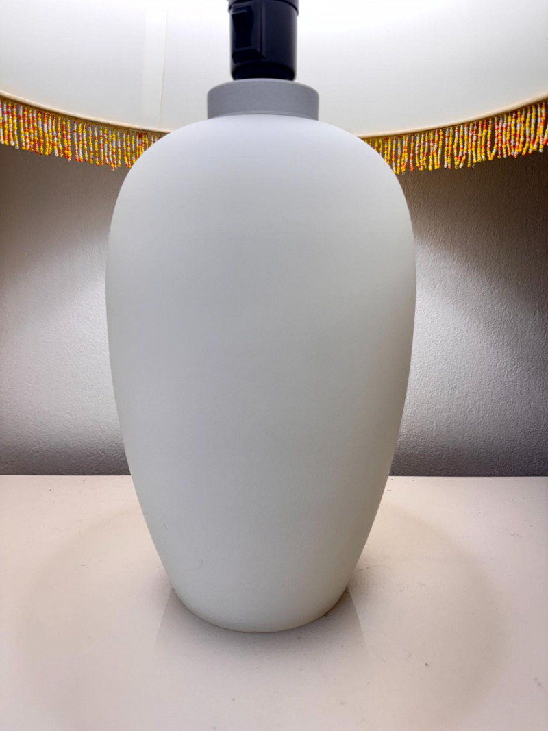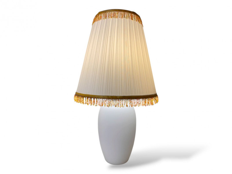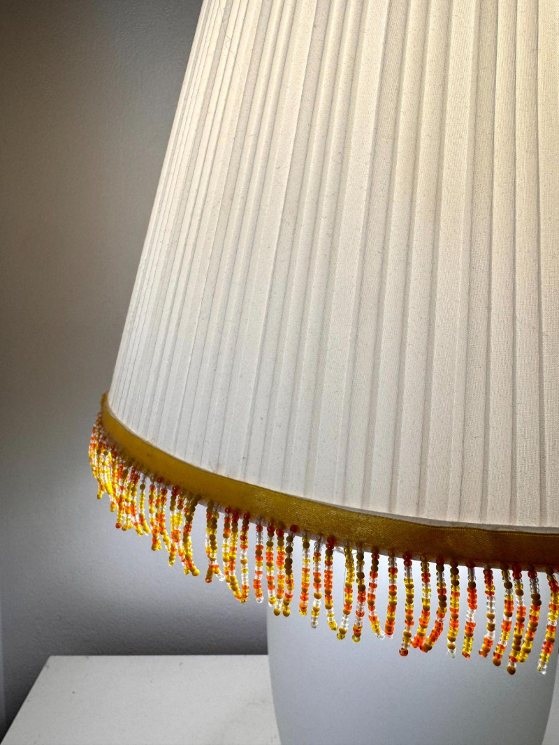 Lot # 67 - Vintage Glass Base Table Lamp w/ Pleated Shade & Beaded Fringe