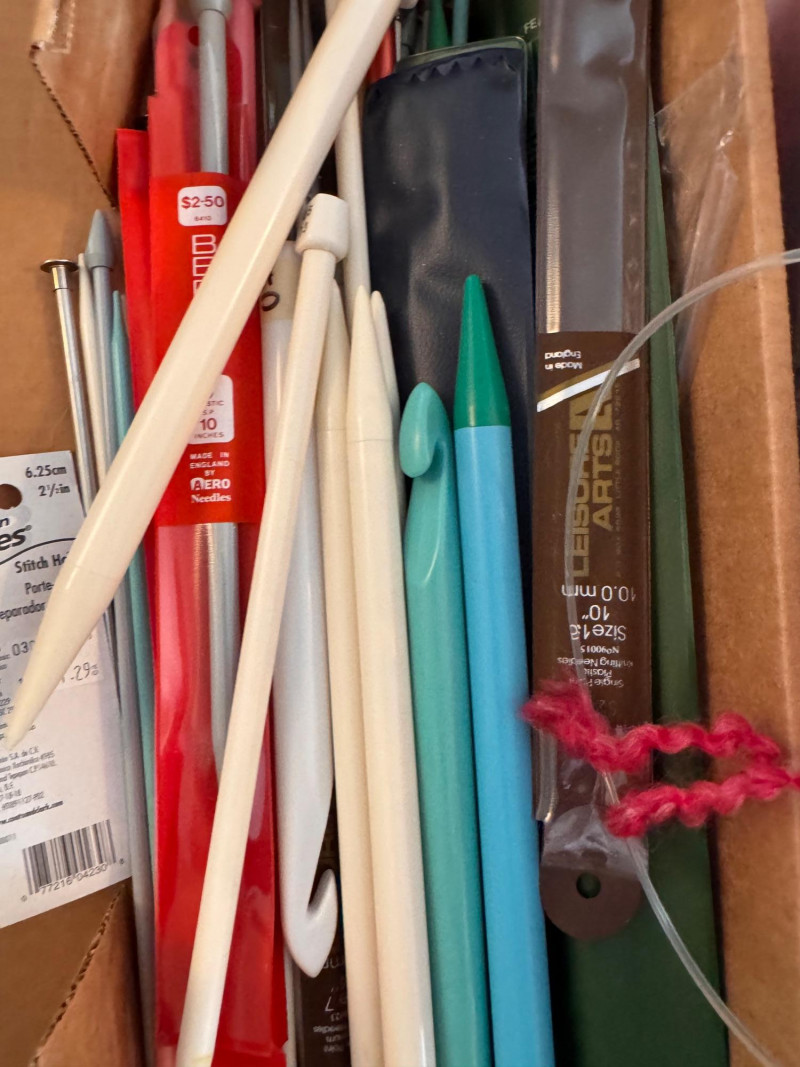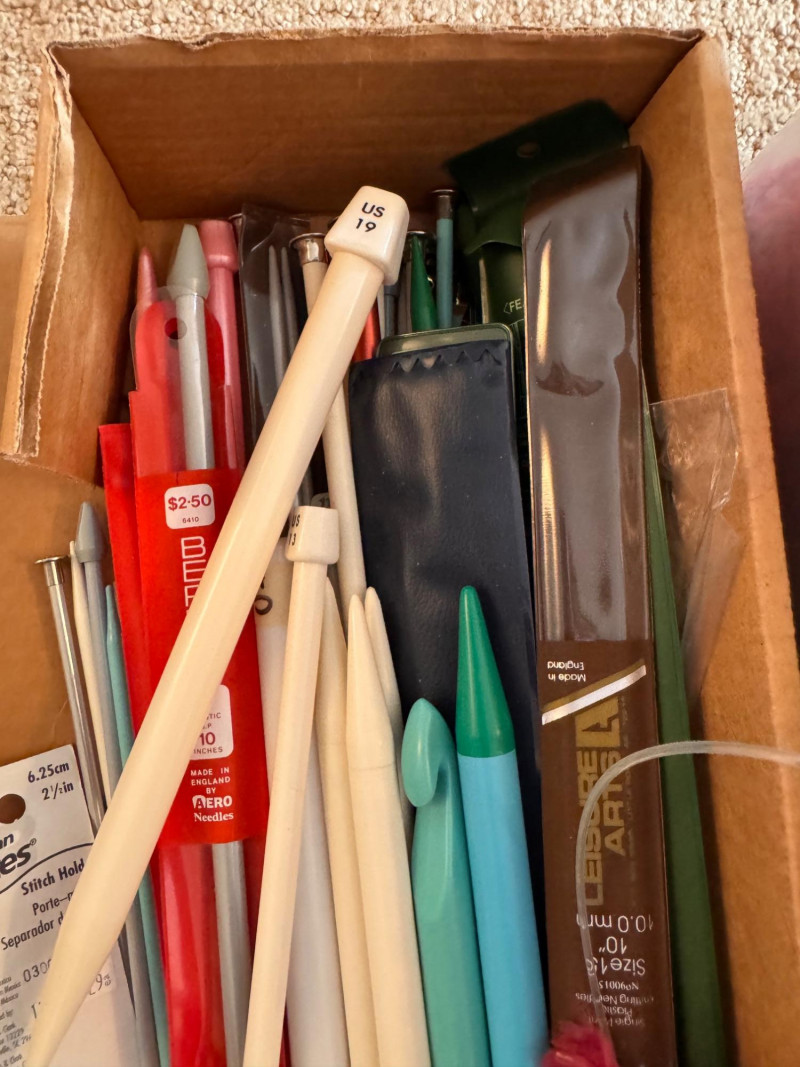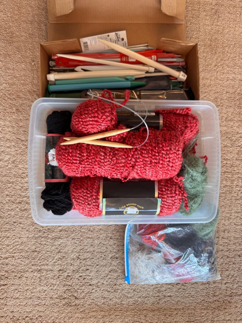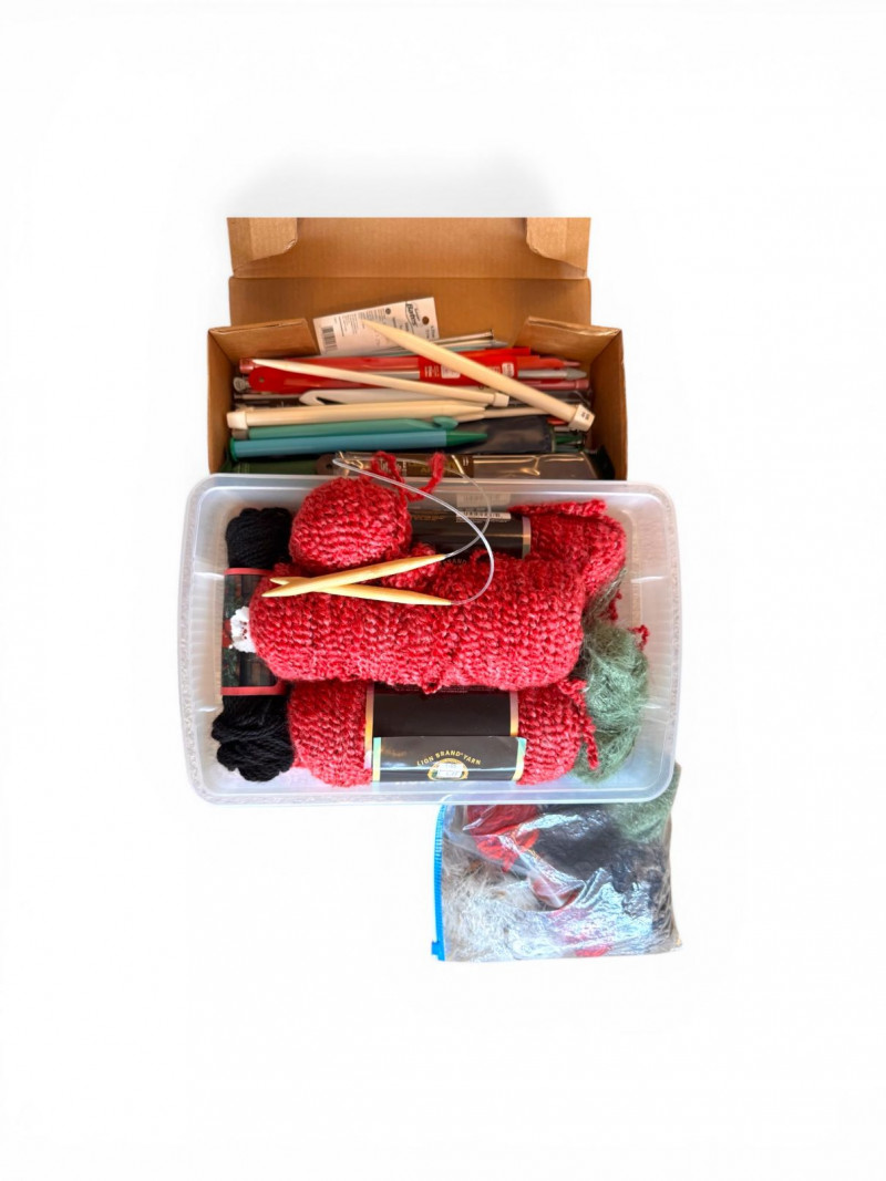 Lot # 70 - Assorted Knitting Supplies w/ Yarn, Needles & Other Tools