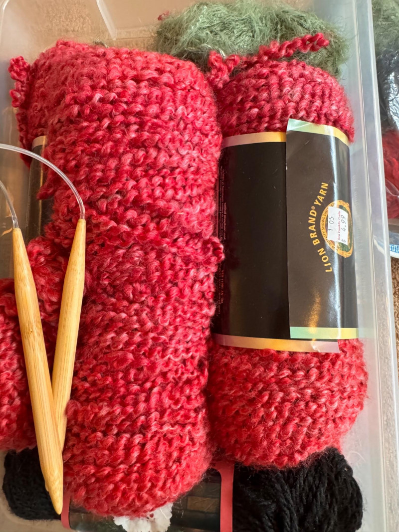 Assorted Knitting Supplies w/ Yarn, Needles & Other Tools.