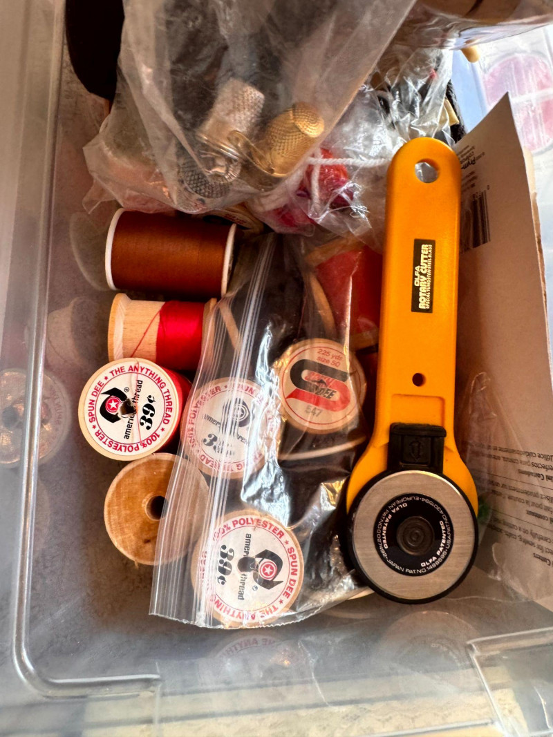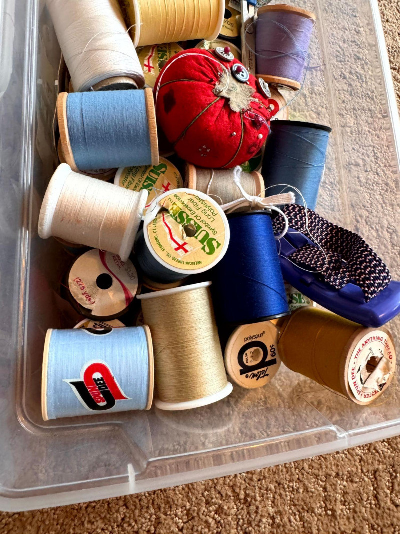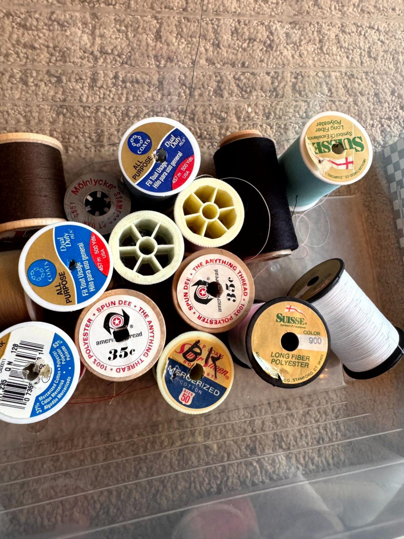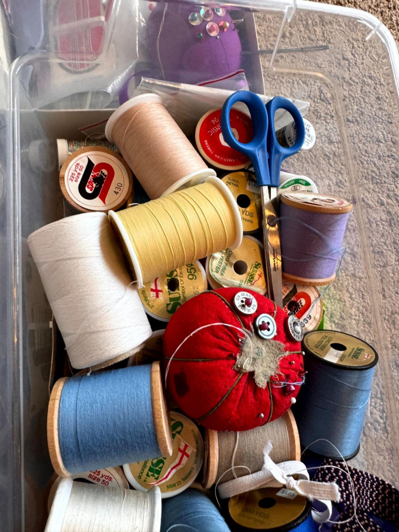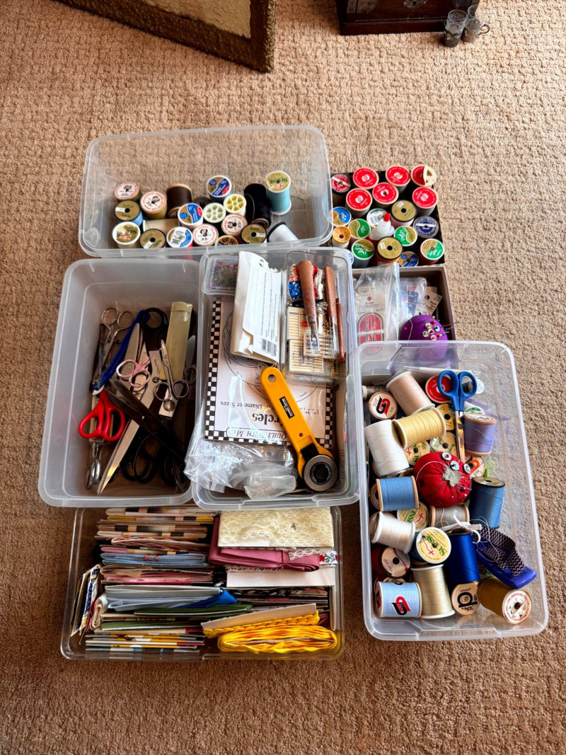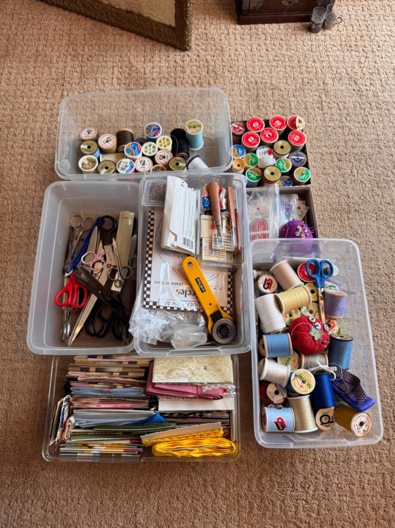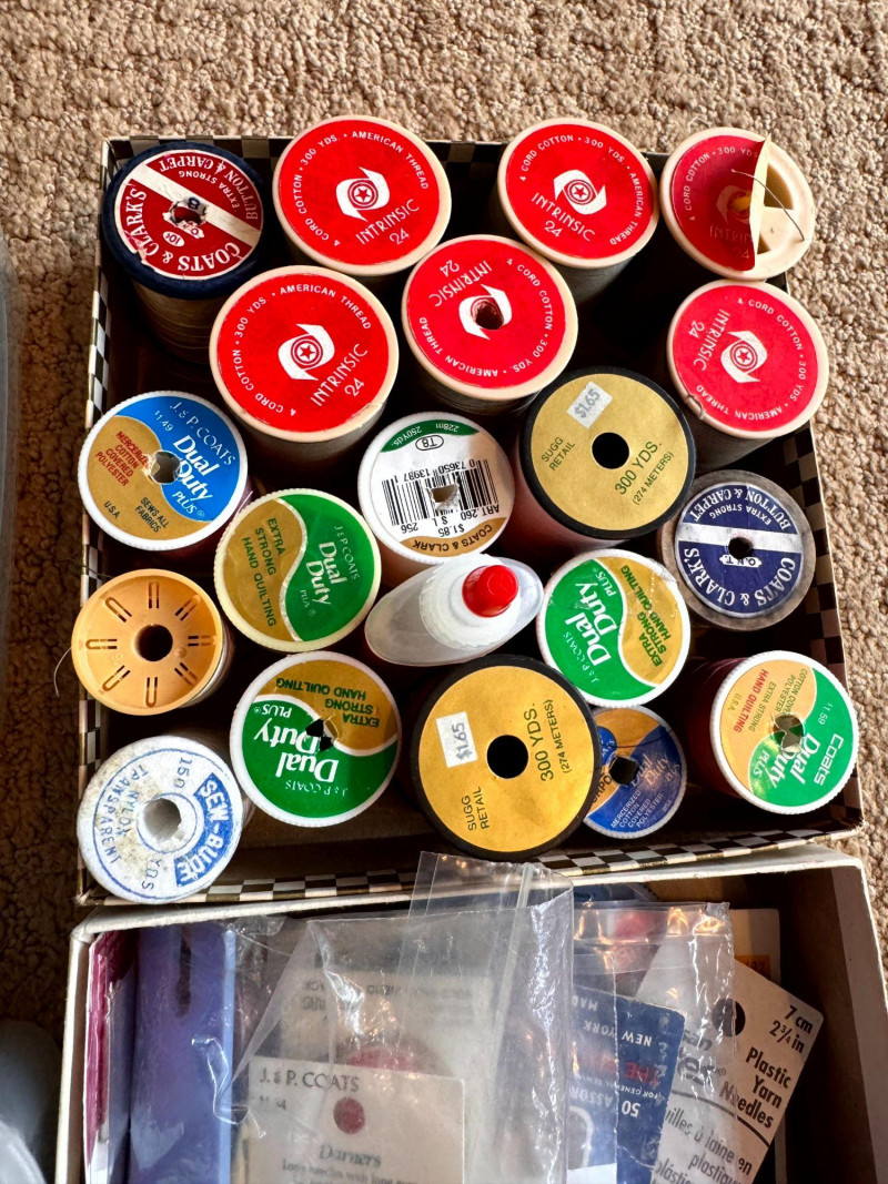 Sewing Supplies w/ Thread, Spools, Fabric, Scissors, Tools +