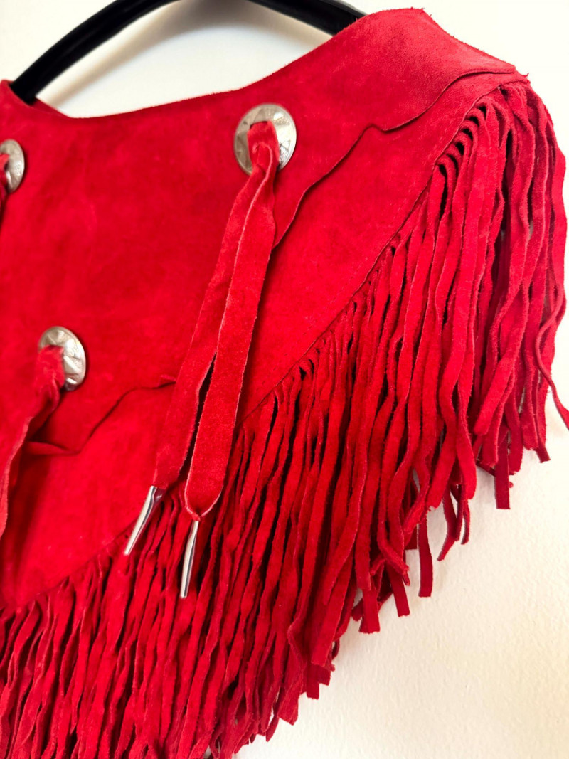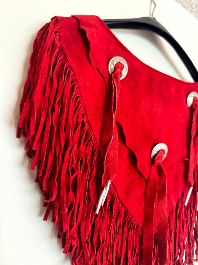 Vintage Pioneer Wear Red Leather Fringe Collar.