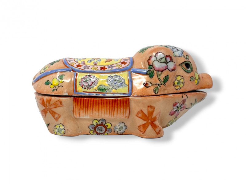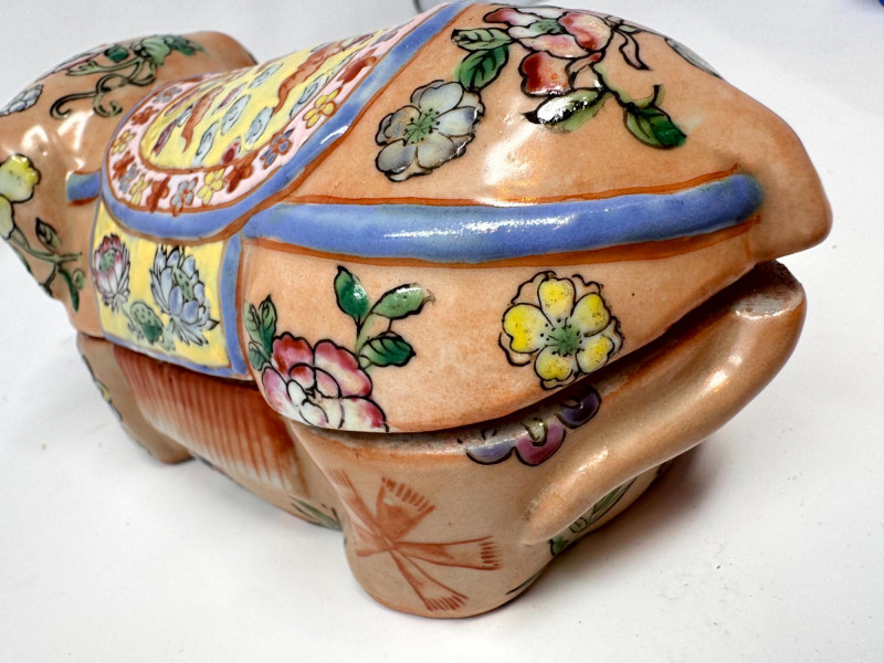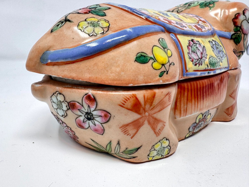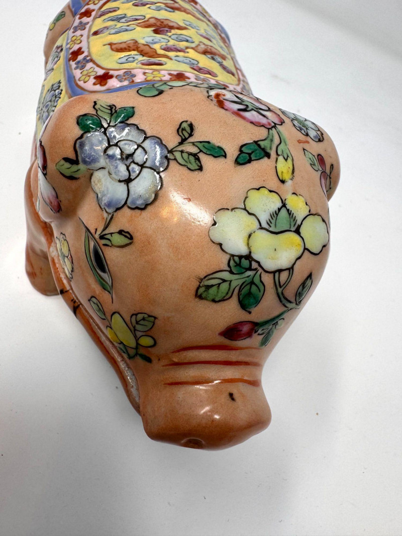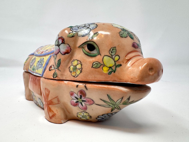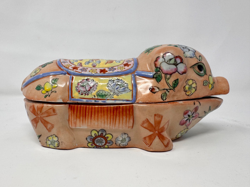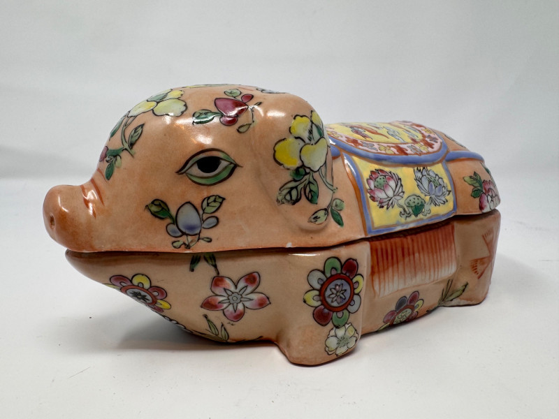 Lot # 87 - Vintage Hand Painted Floral Ceramic Pig Trinket Box