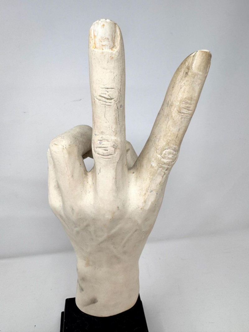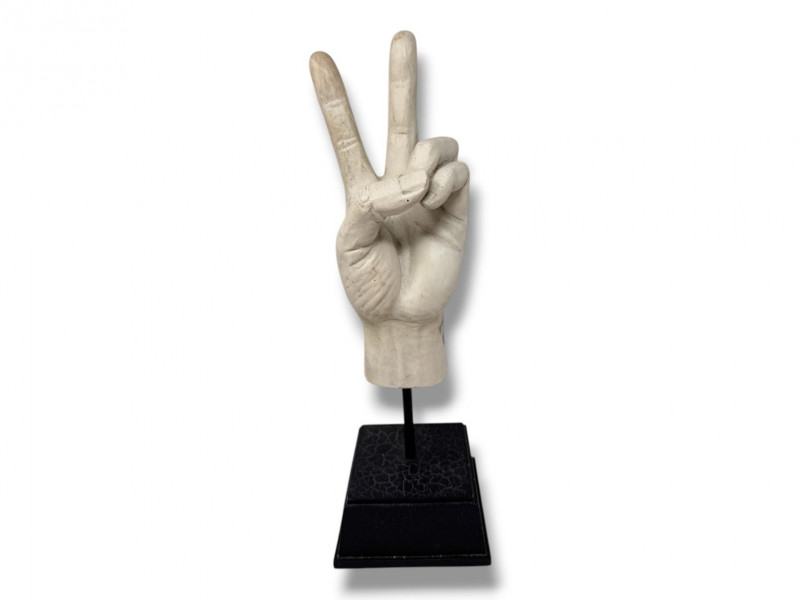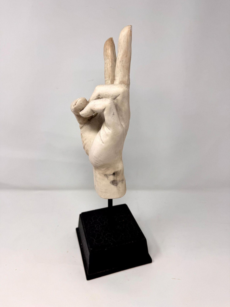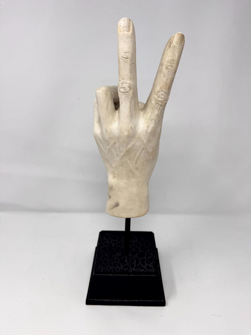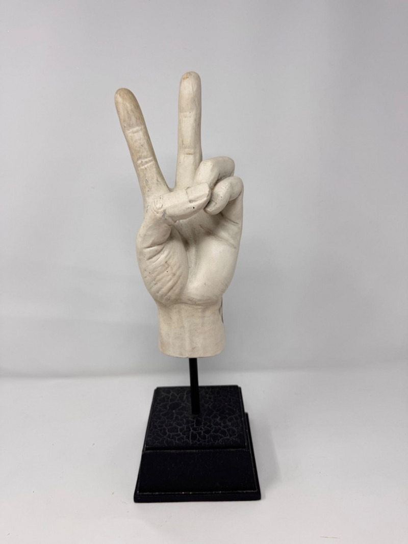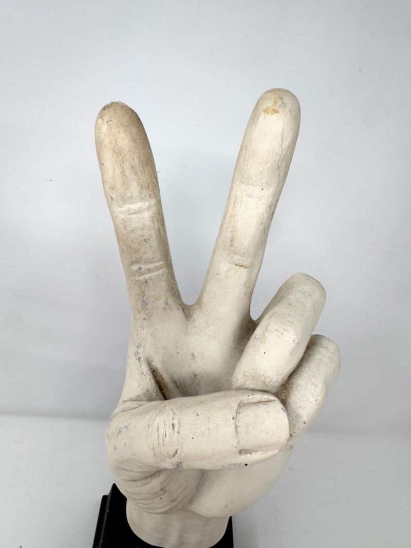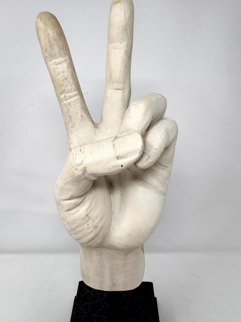Lot # 90 - Plaster Peace Sign Hand Sculpture on Stand