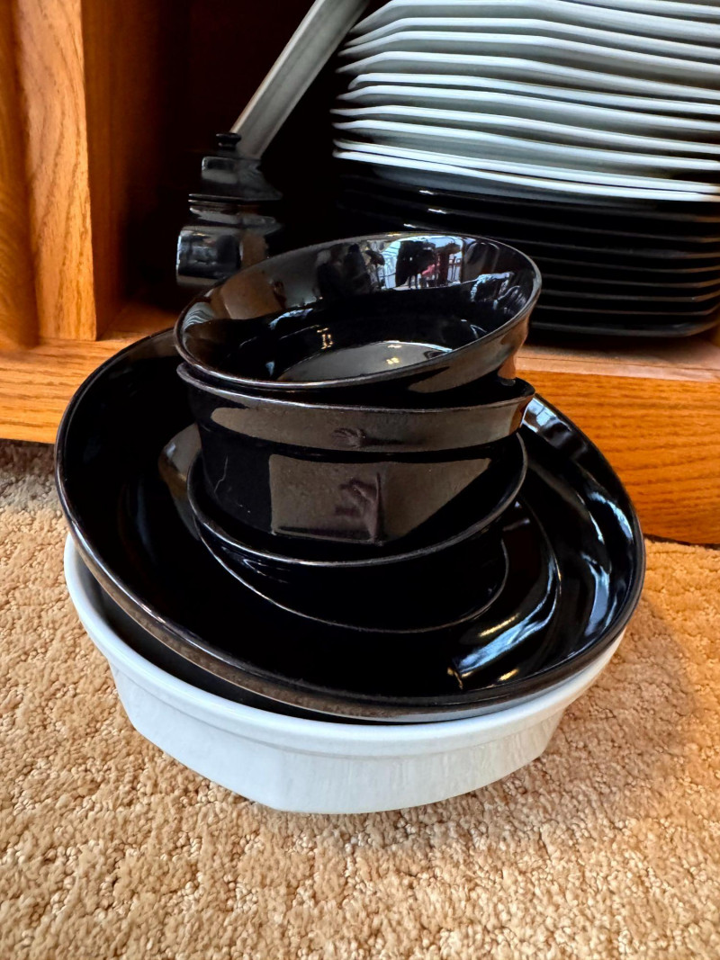 Mikasa Japan Vintage Black & White China Set - Plates, Bowls, & Cups.