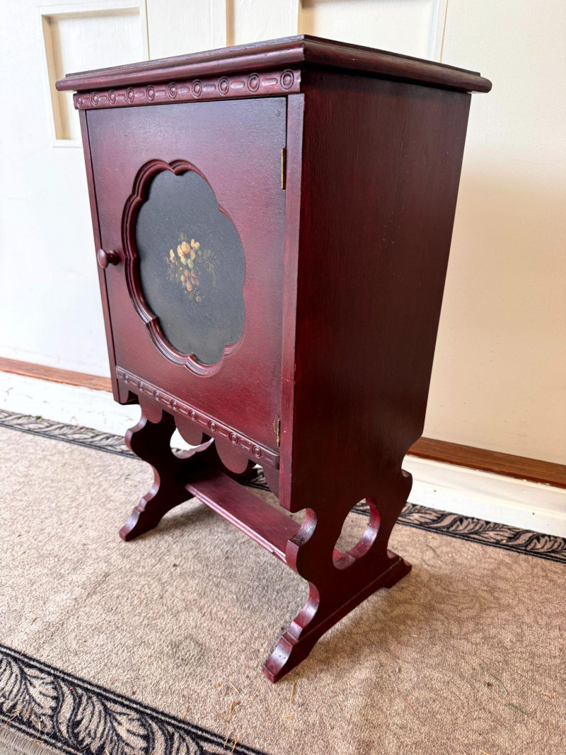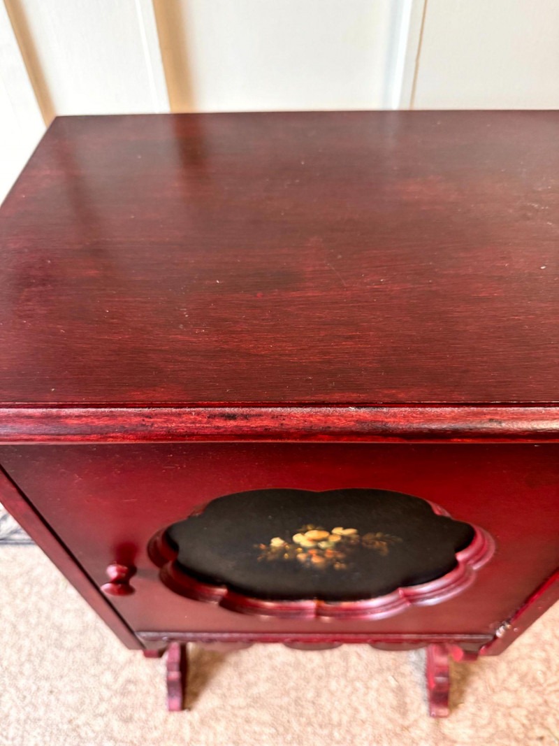 Antique Painted Humidor Cabinet - Red,Black & Floral.