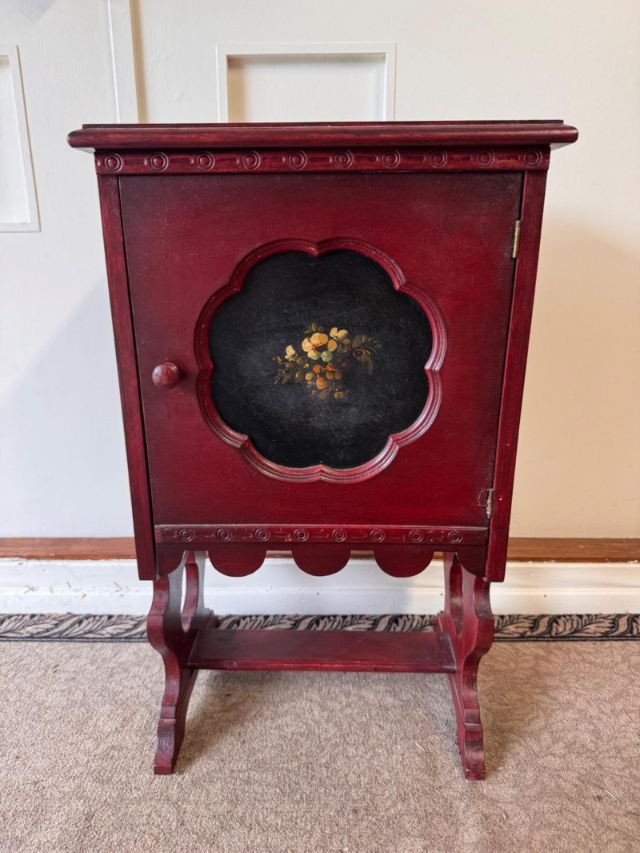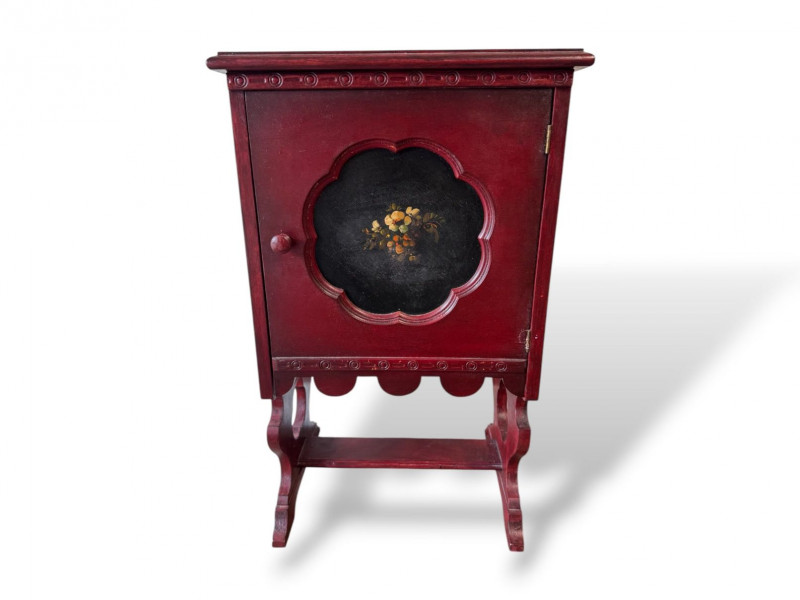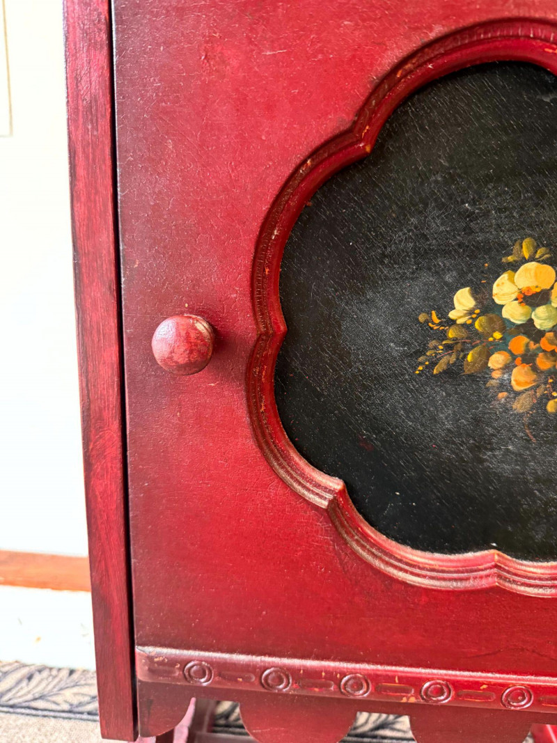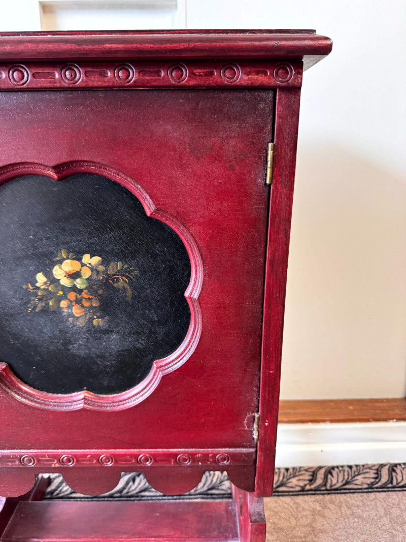 Lot # 99 - Antique Painted Humidor Cabinet - Red,Black & Floral