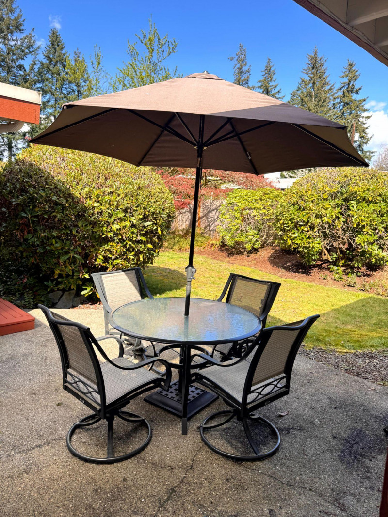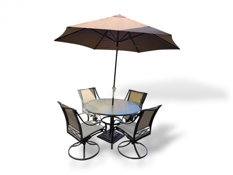 Lot # 105 - Hampton Bay Outdoor Patio Dining Set w/ Swivel Chairs & Umbrella