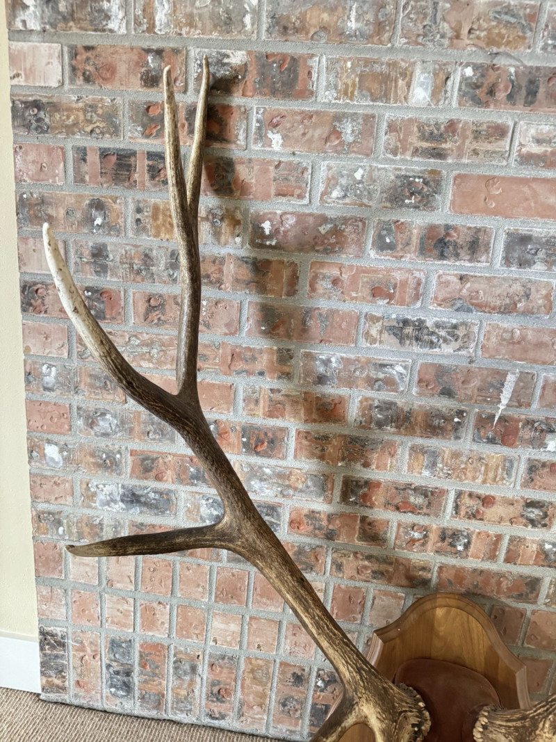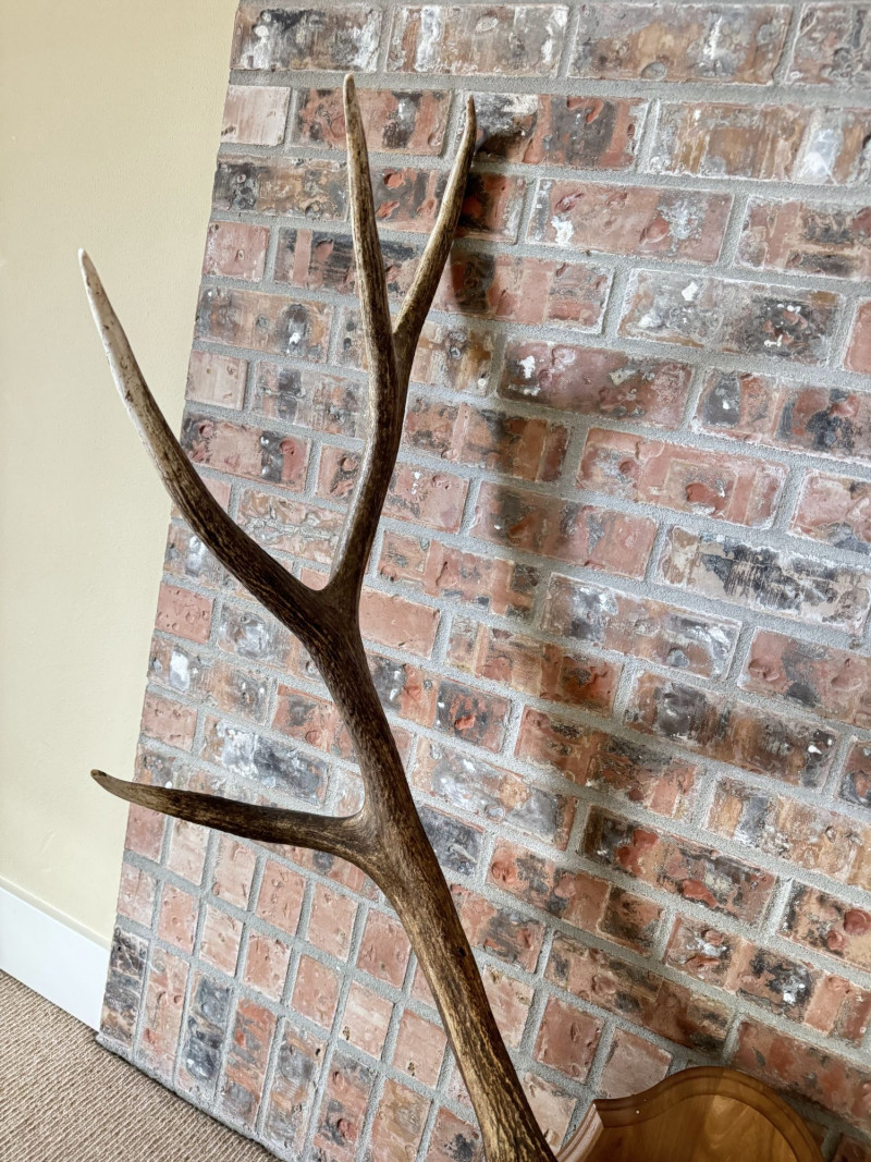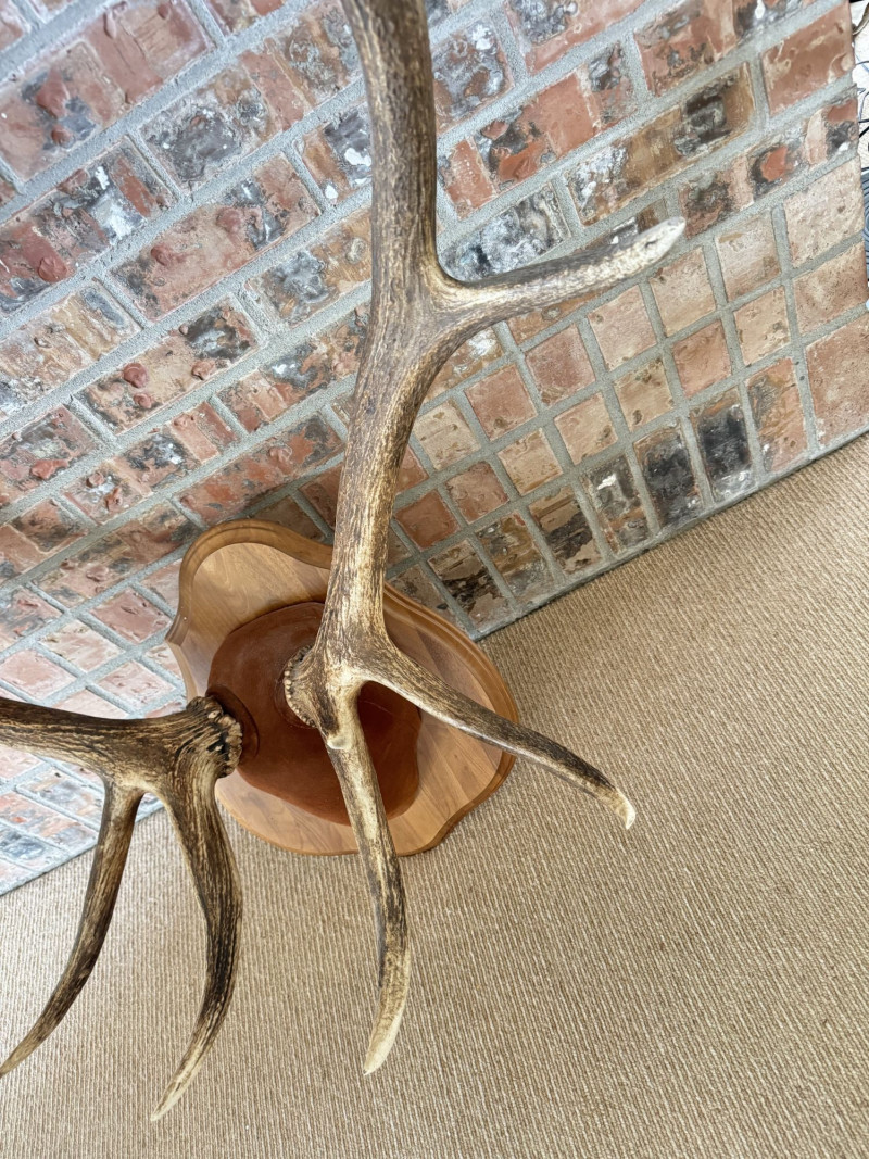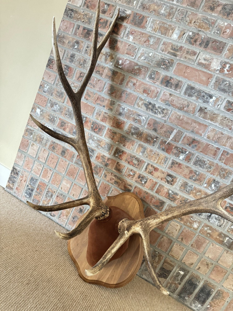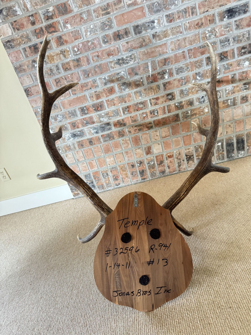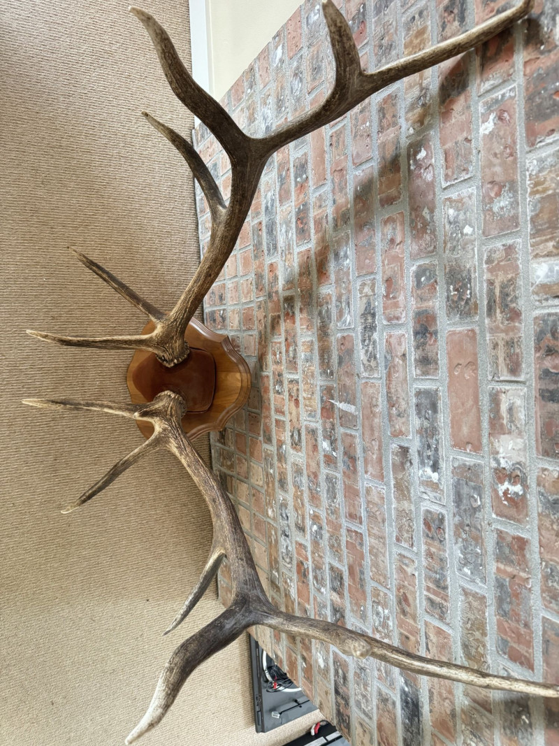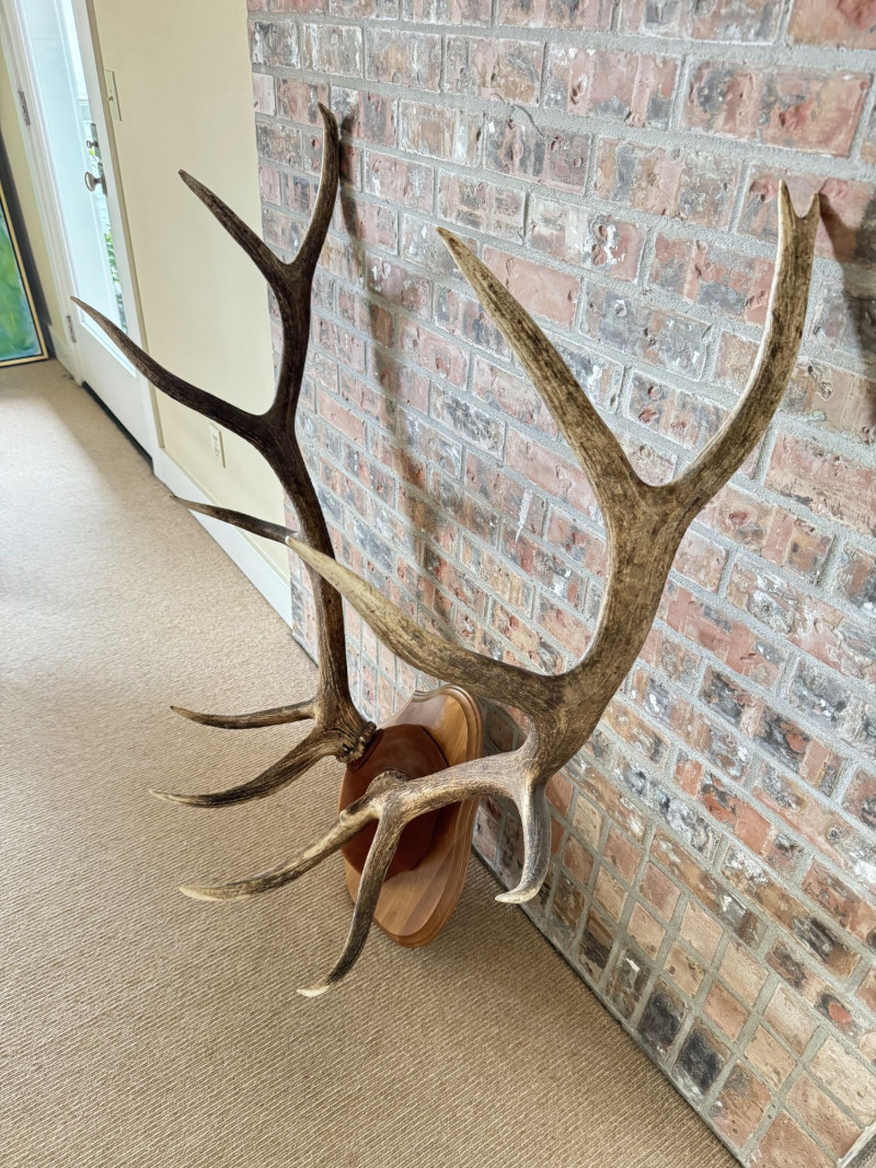Oversized Mounted Deer Antlers on Wood Plaque.