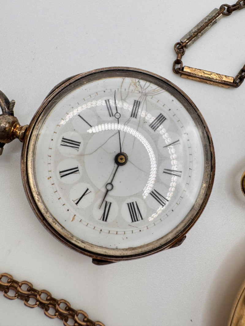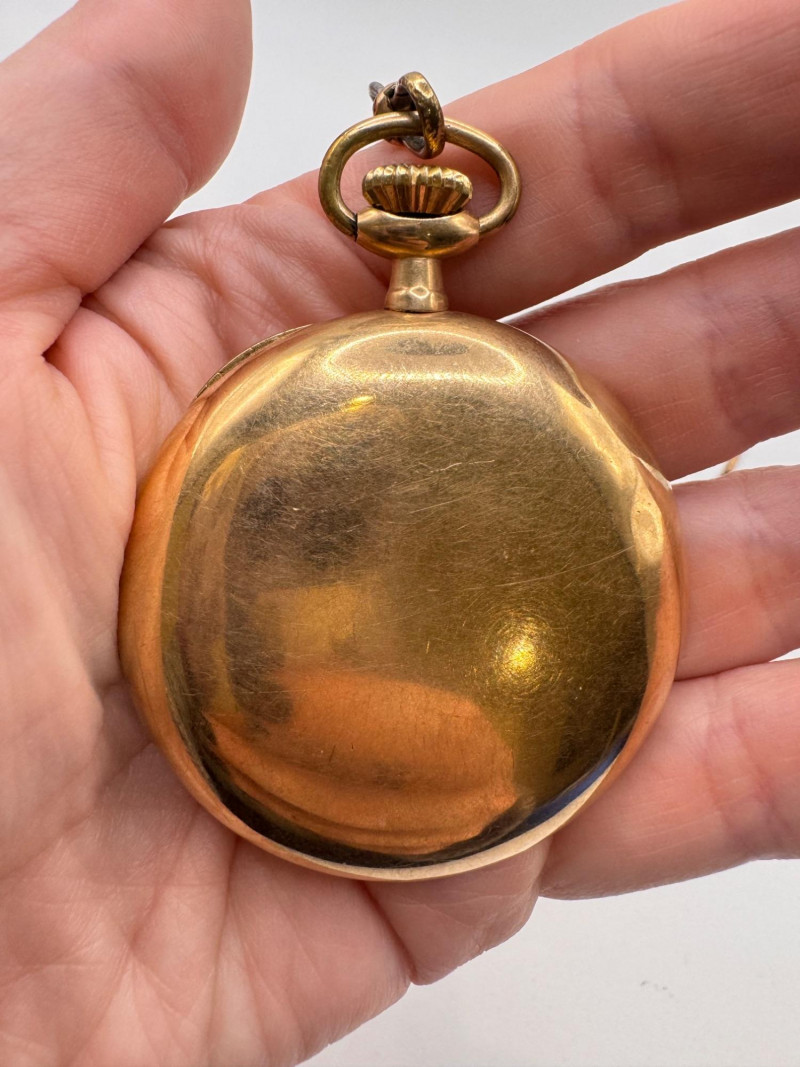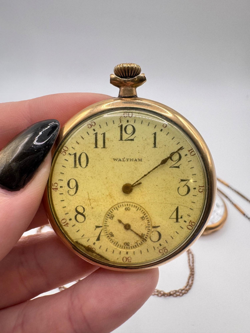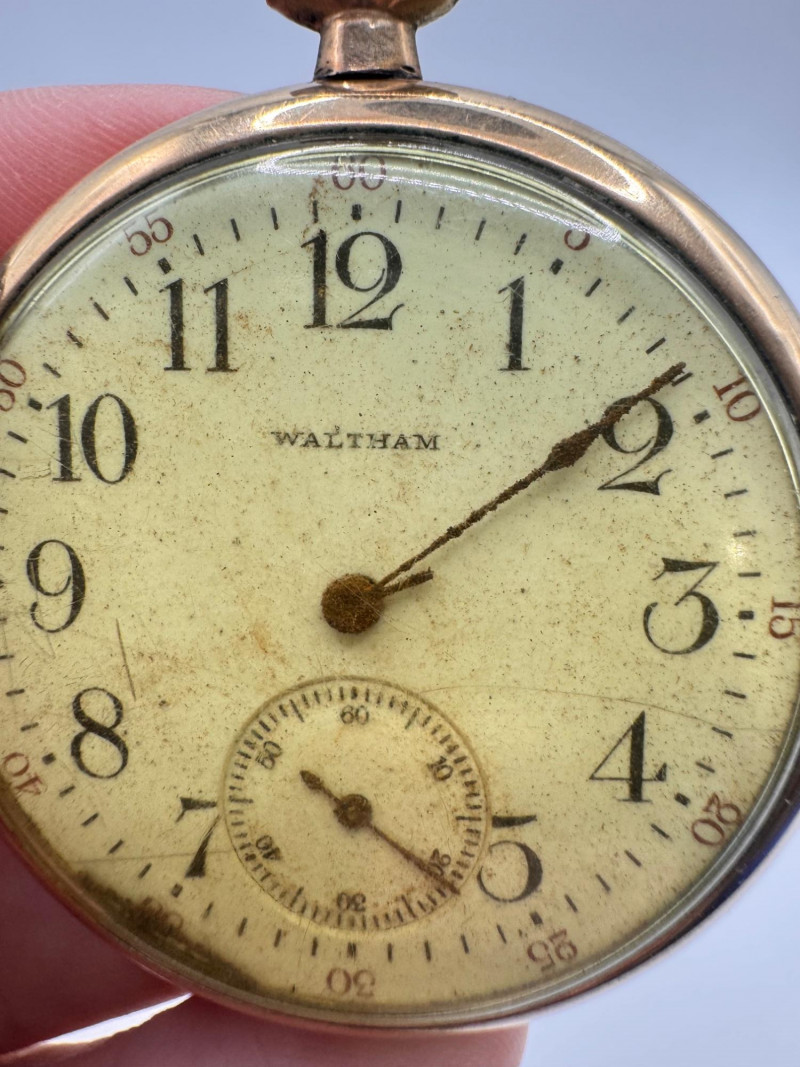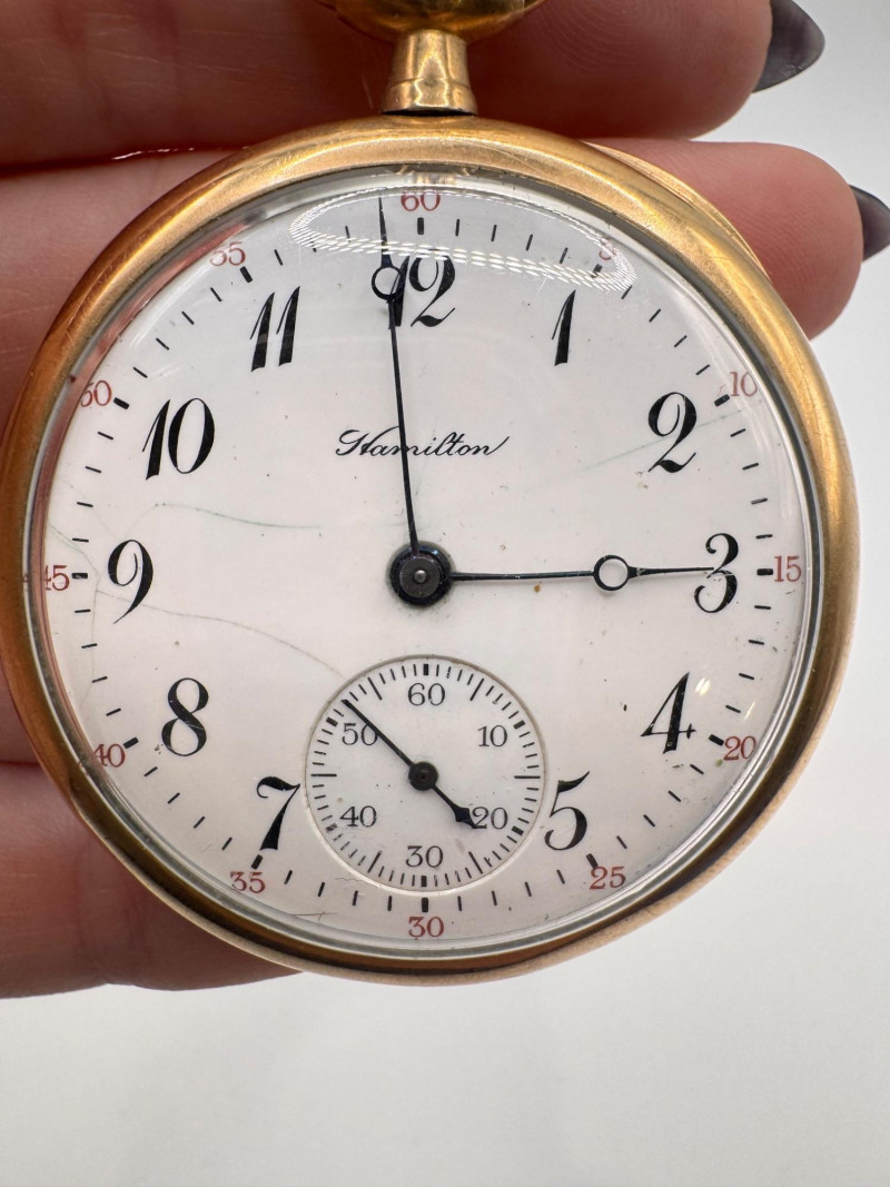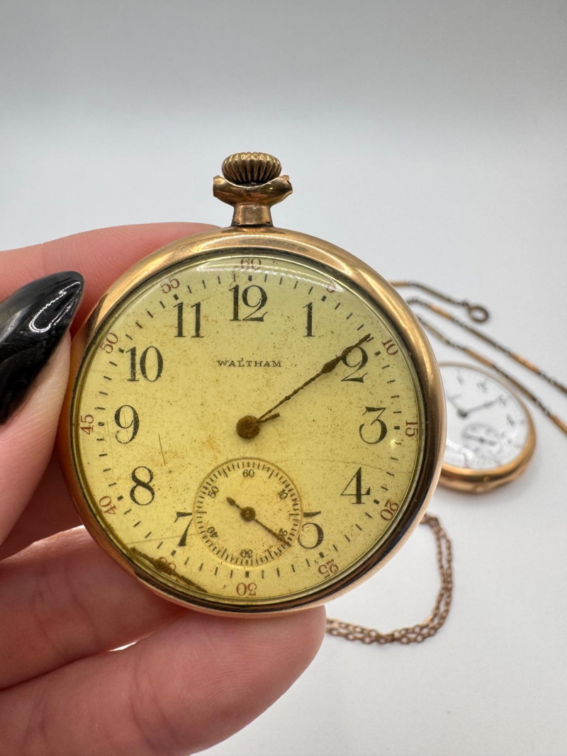 Gold Filled Pocket Watches - Hampden, Waltham, & Hamilton w/ Chains.