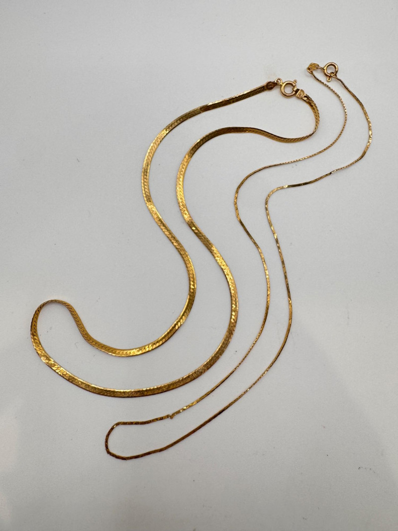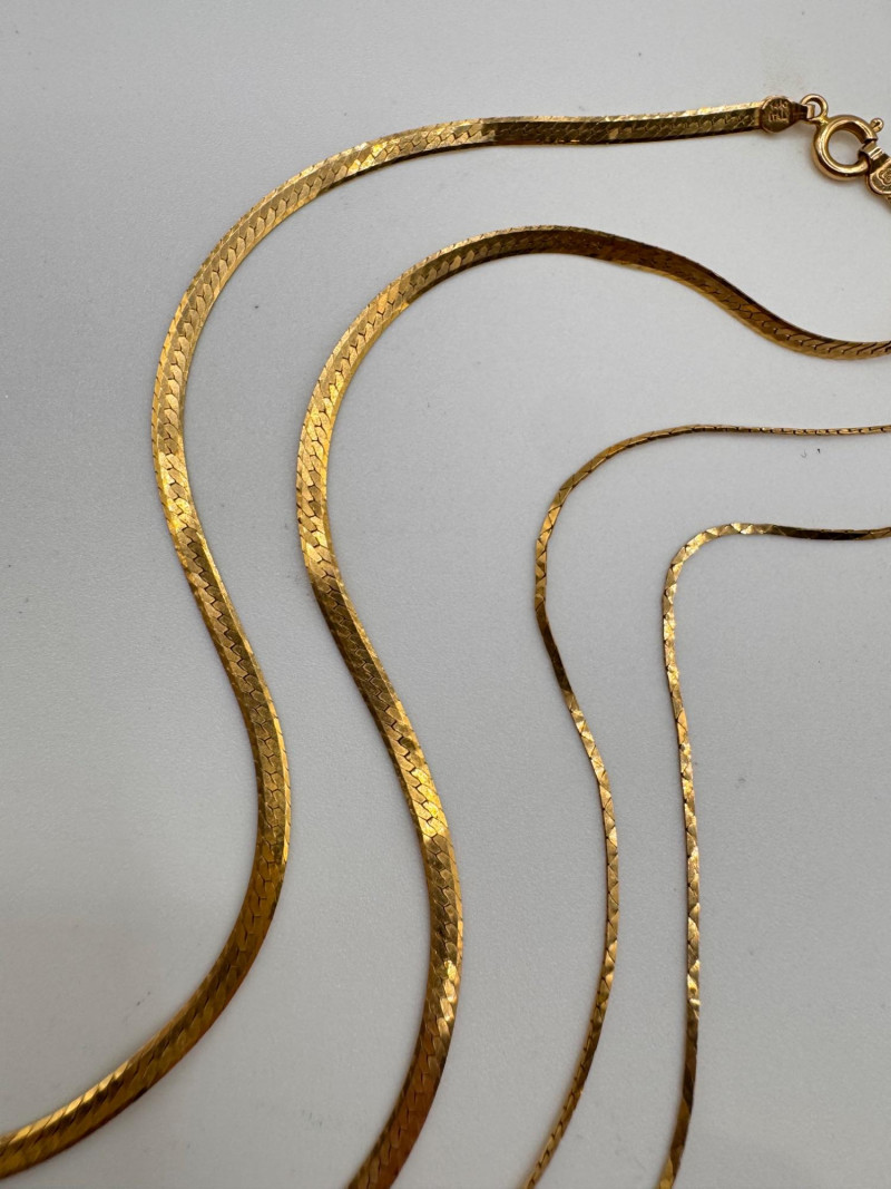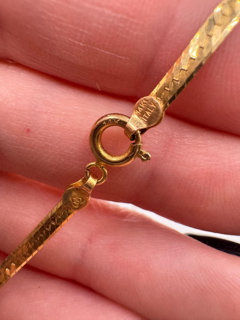 14K Gold Chain Necklace Herringbone Style - Italy, 5.29g.