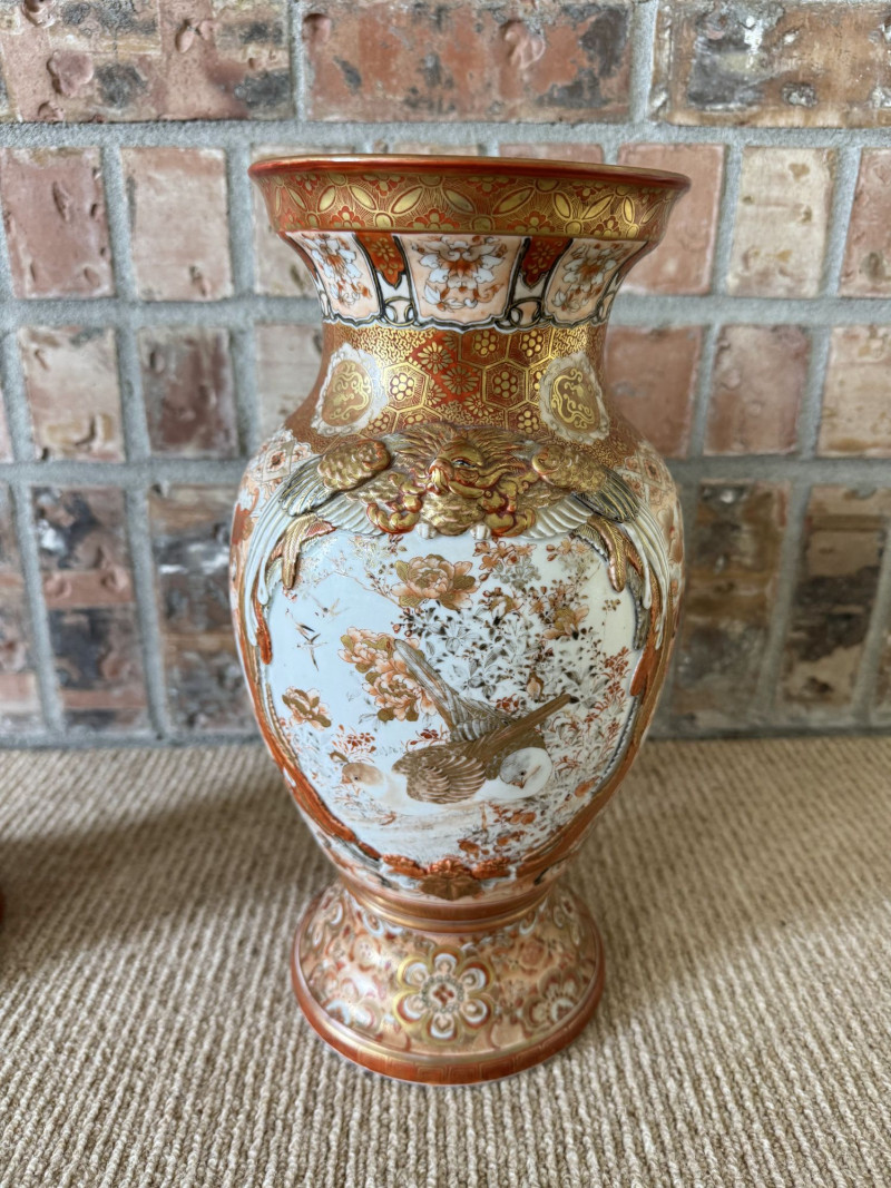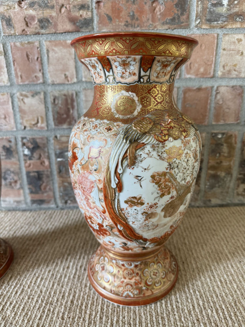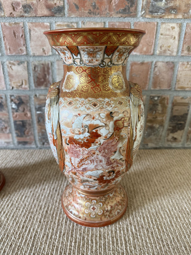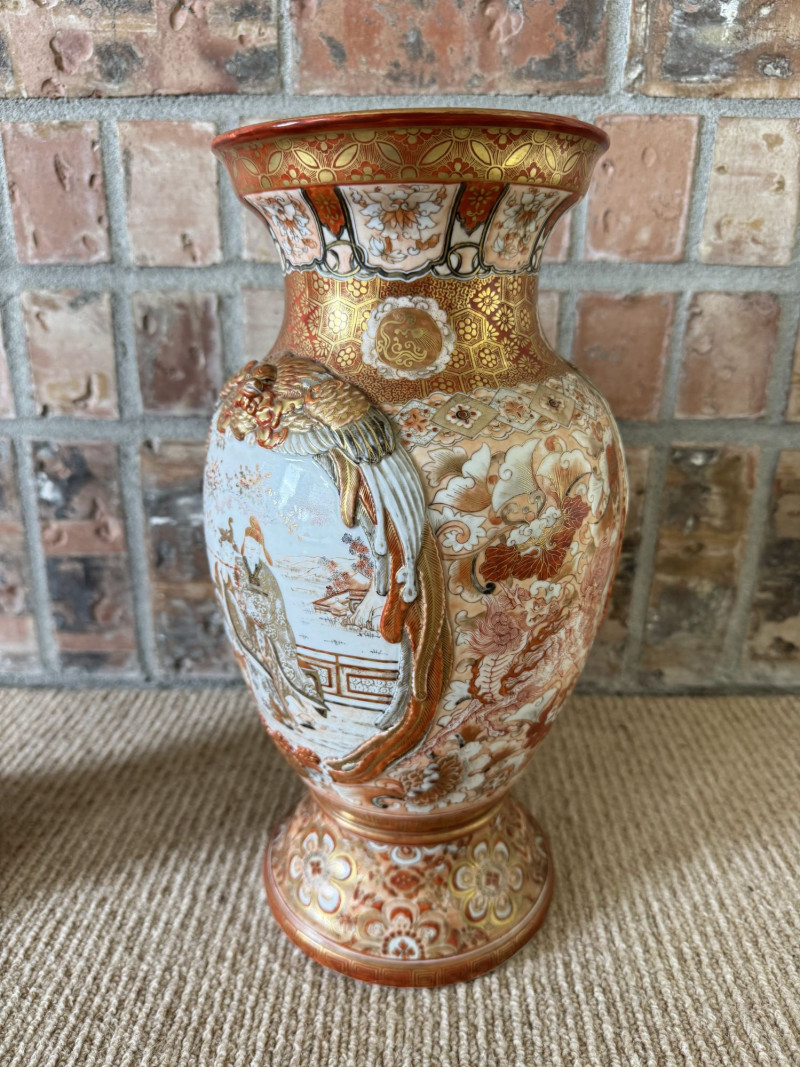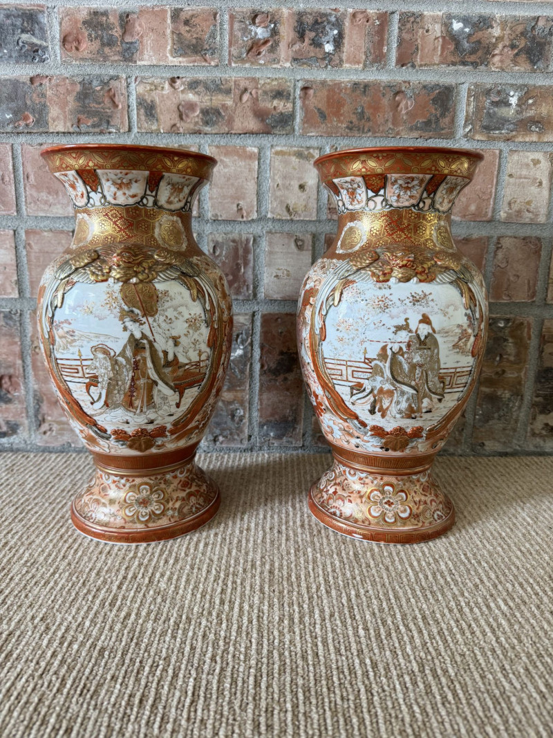 Lot # 13 - Antique Japanese Porcelain Vases w/ Moriage & Figural Scenes