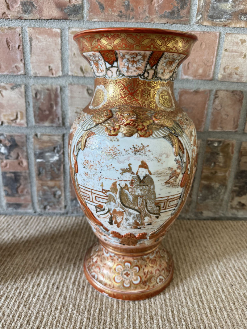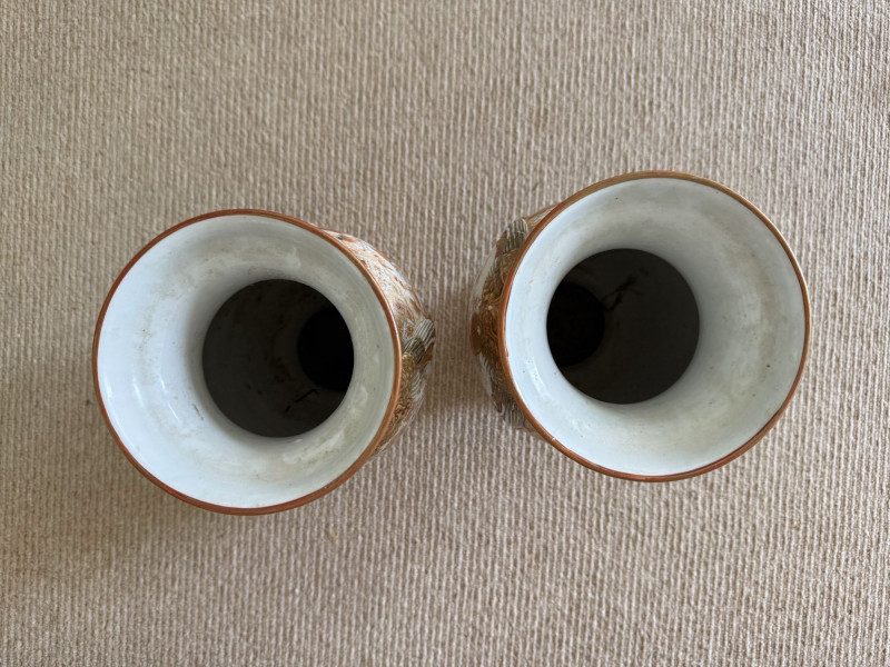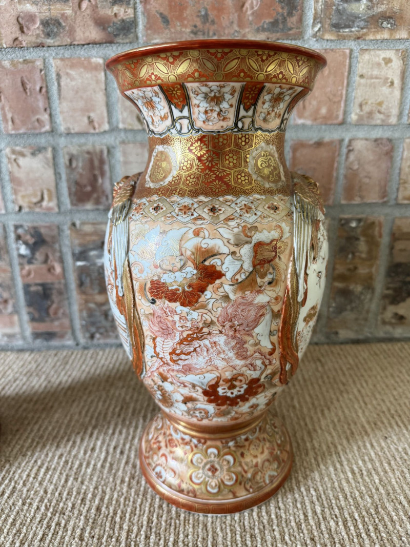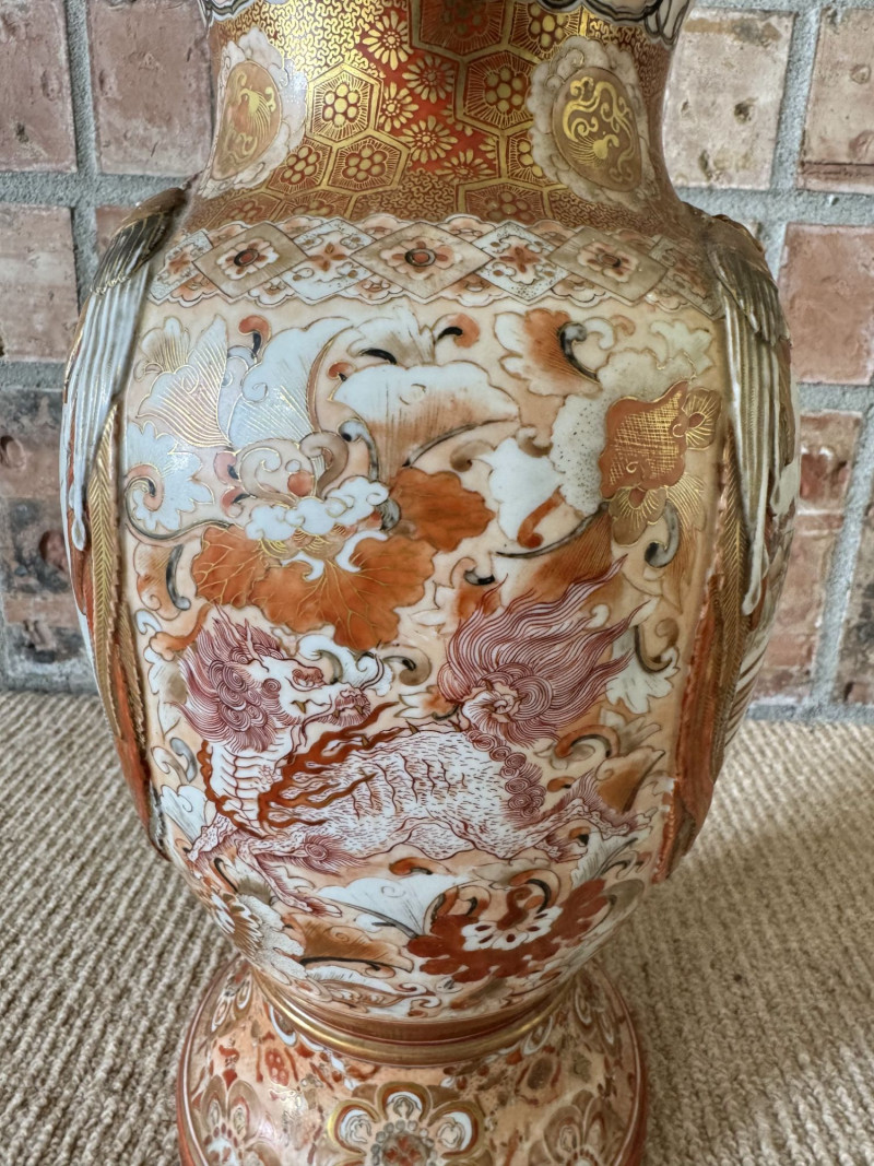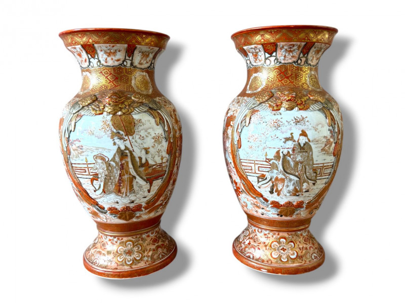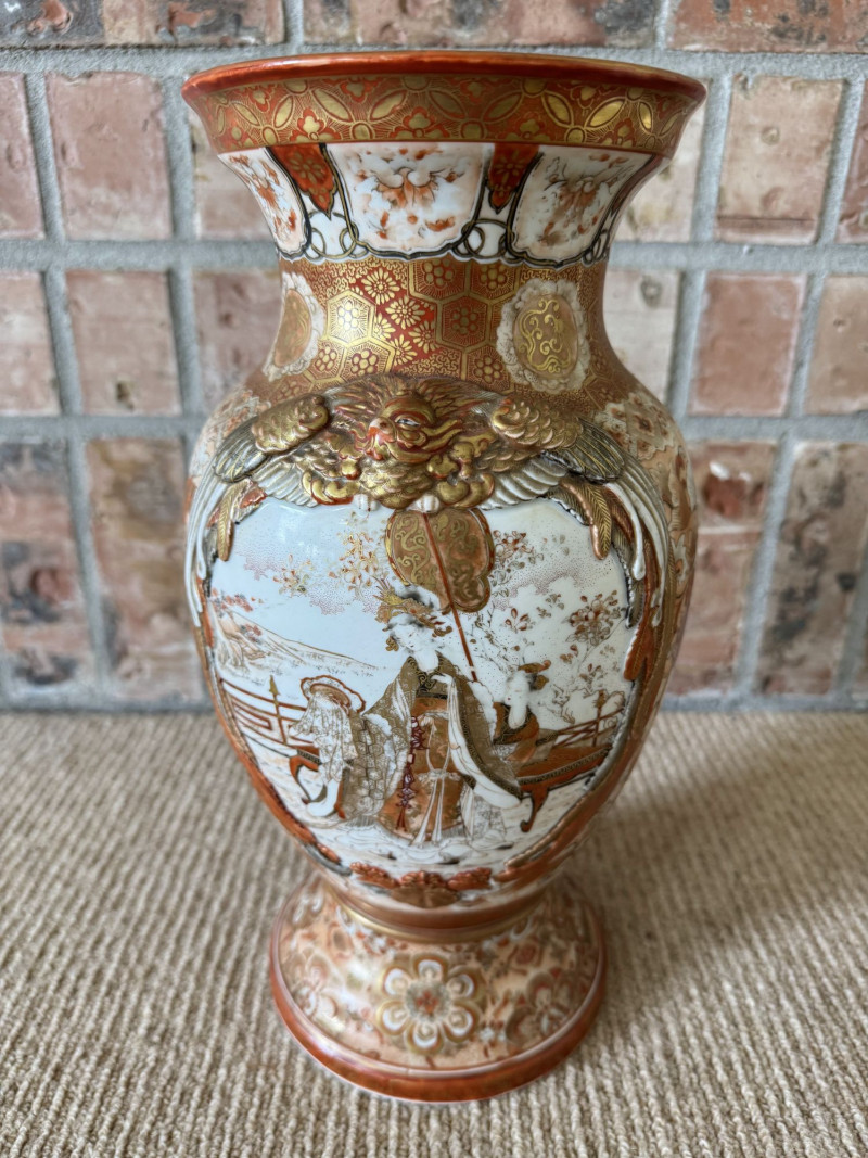 Lot # 13 - Antique Japanese Porcelain Vases w/ Moriage & Figural Scenes
