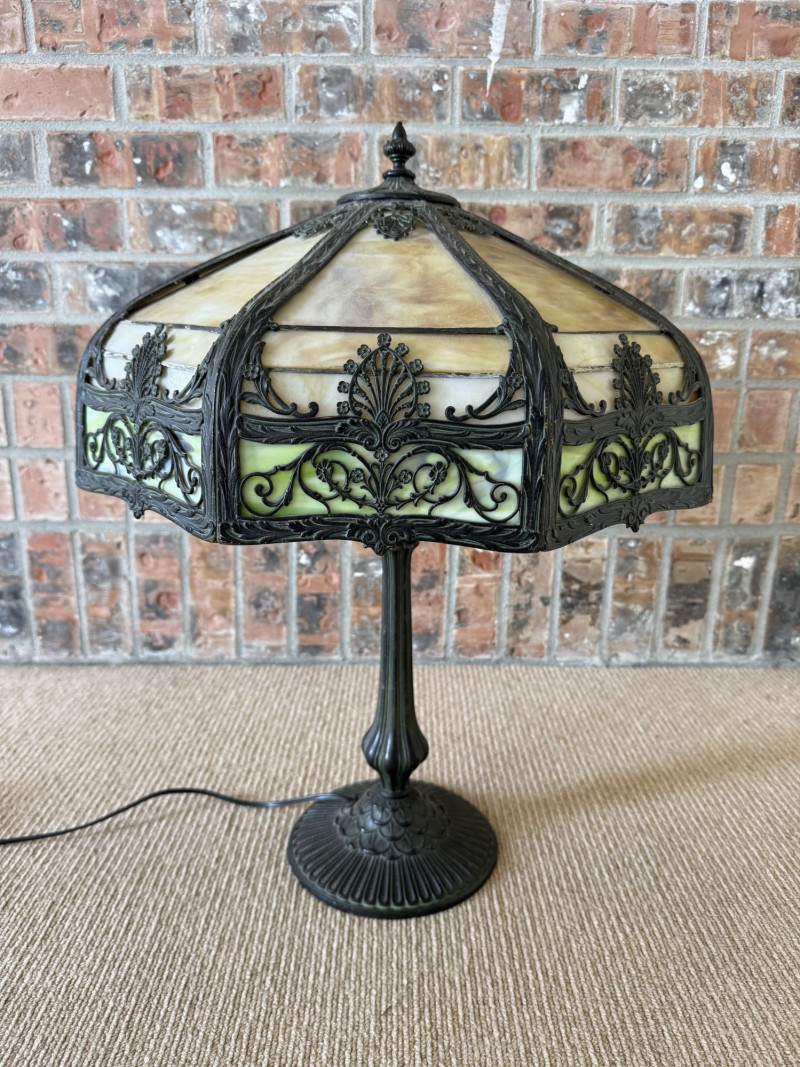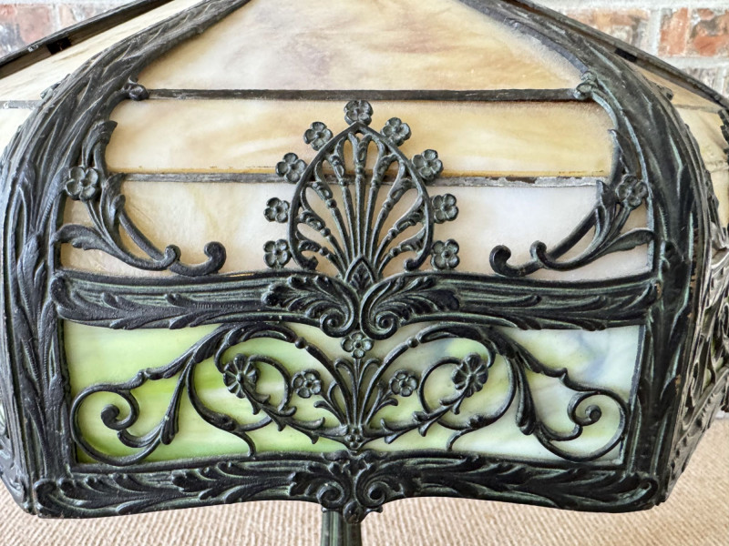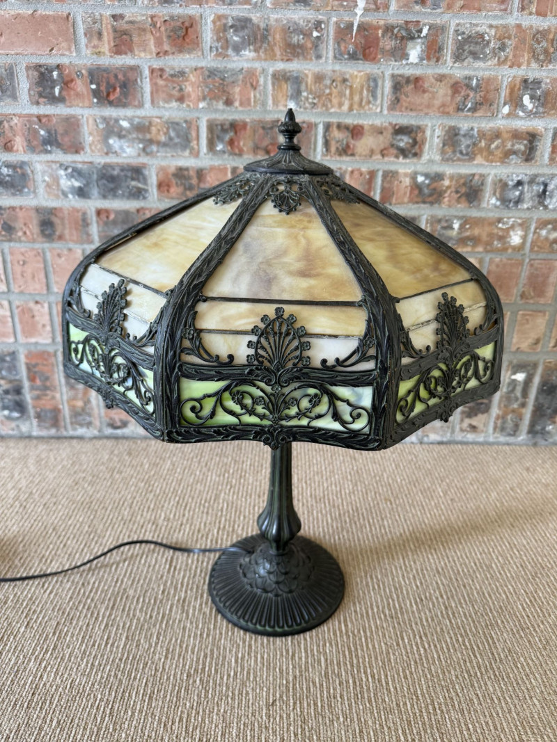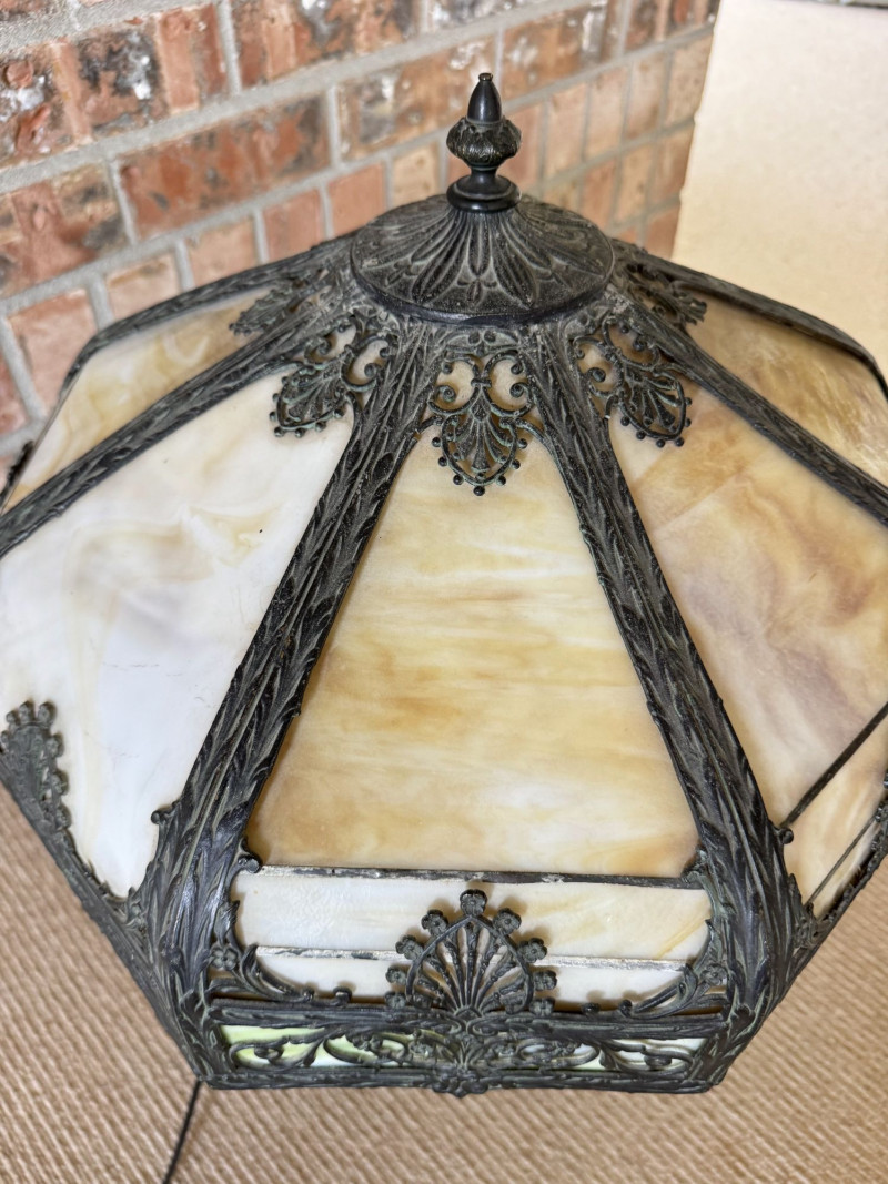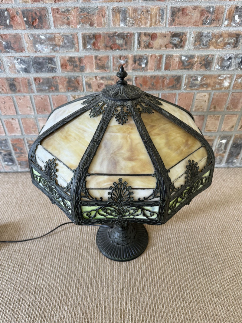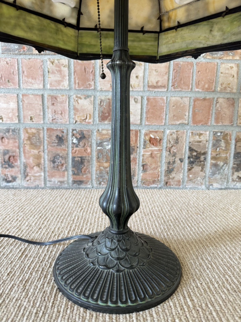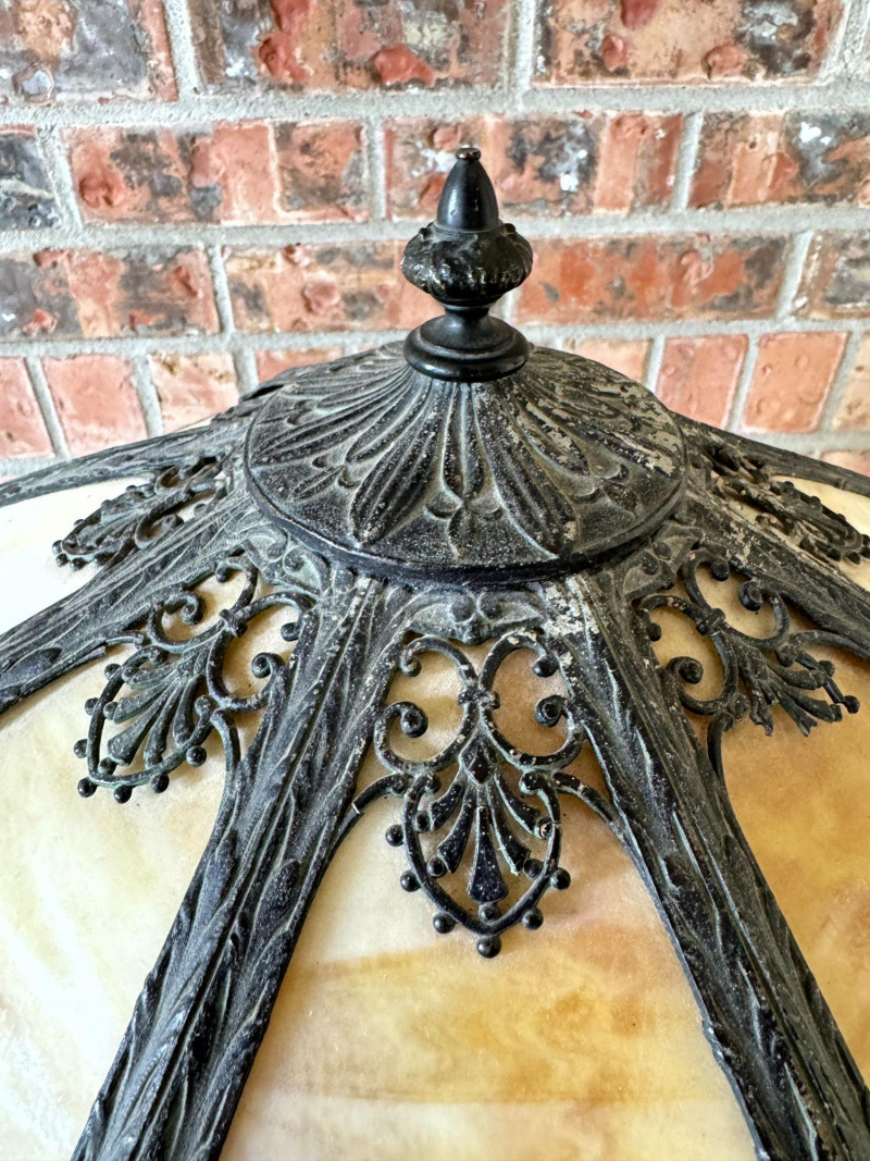 Vintage Slag Glass Panel Table Lamp w/ Cast Metal Base.