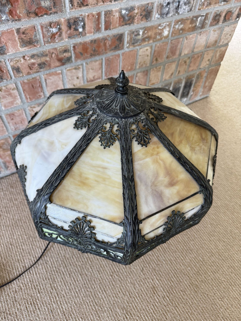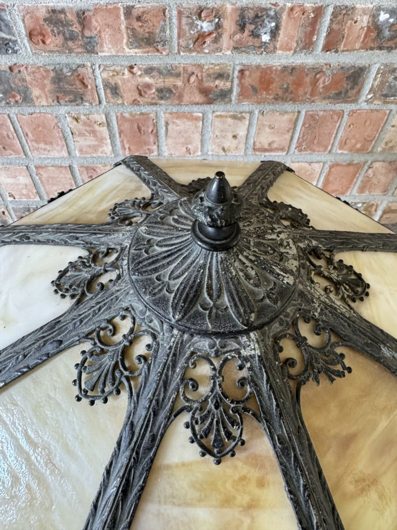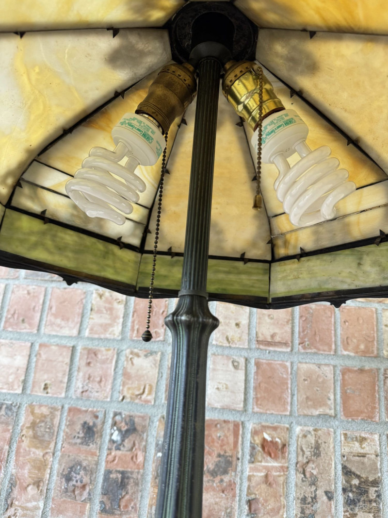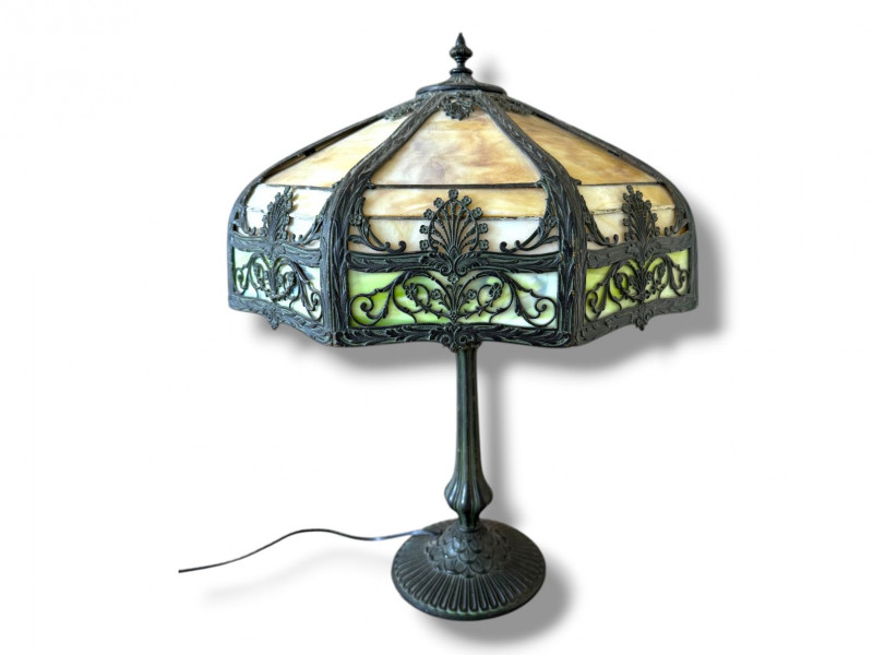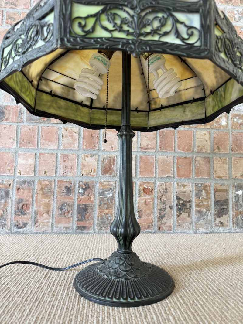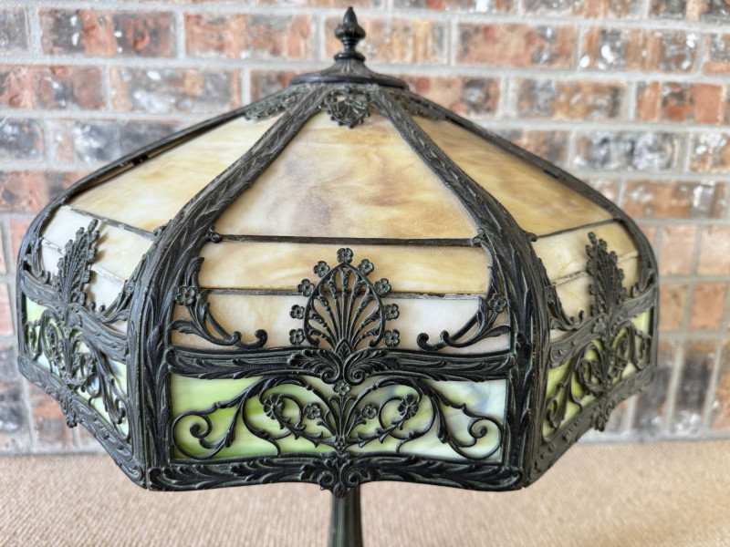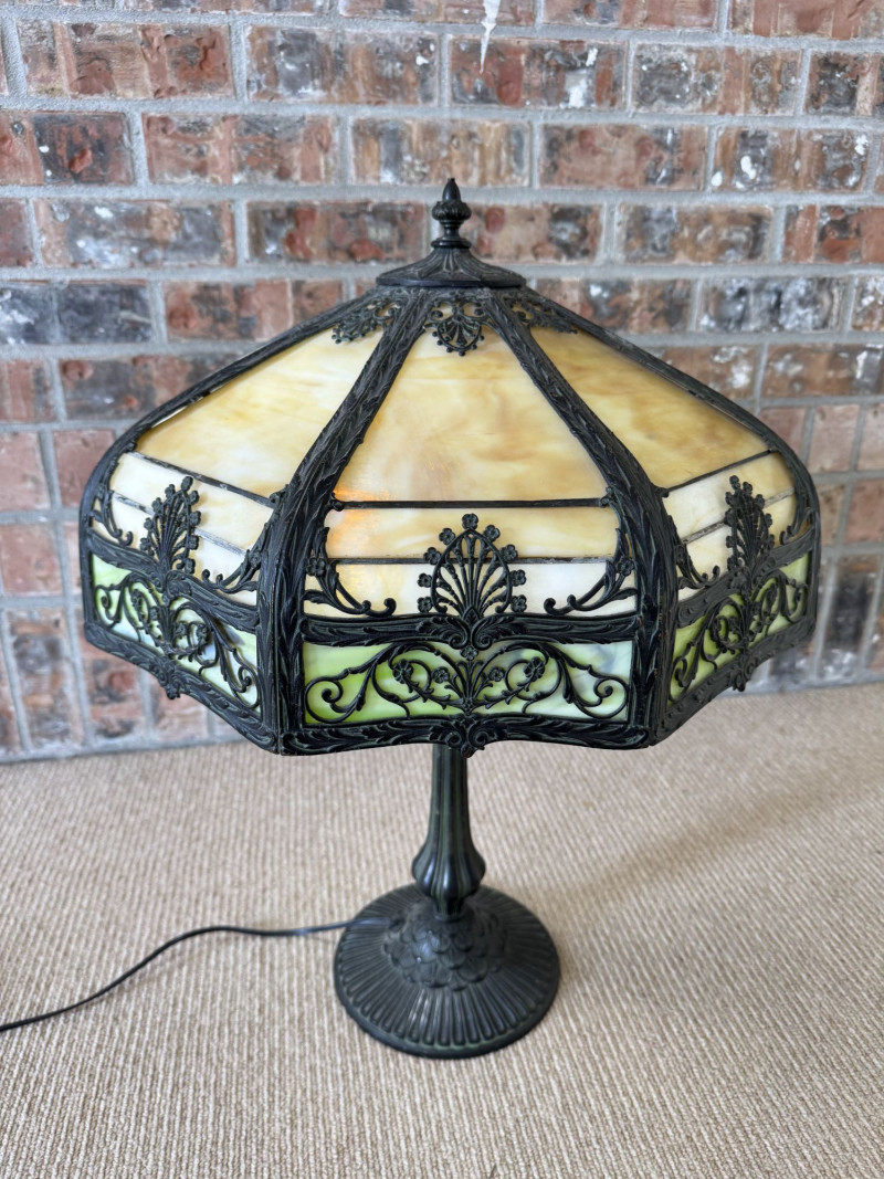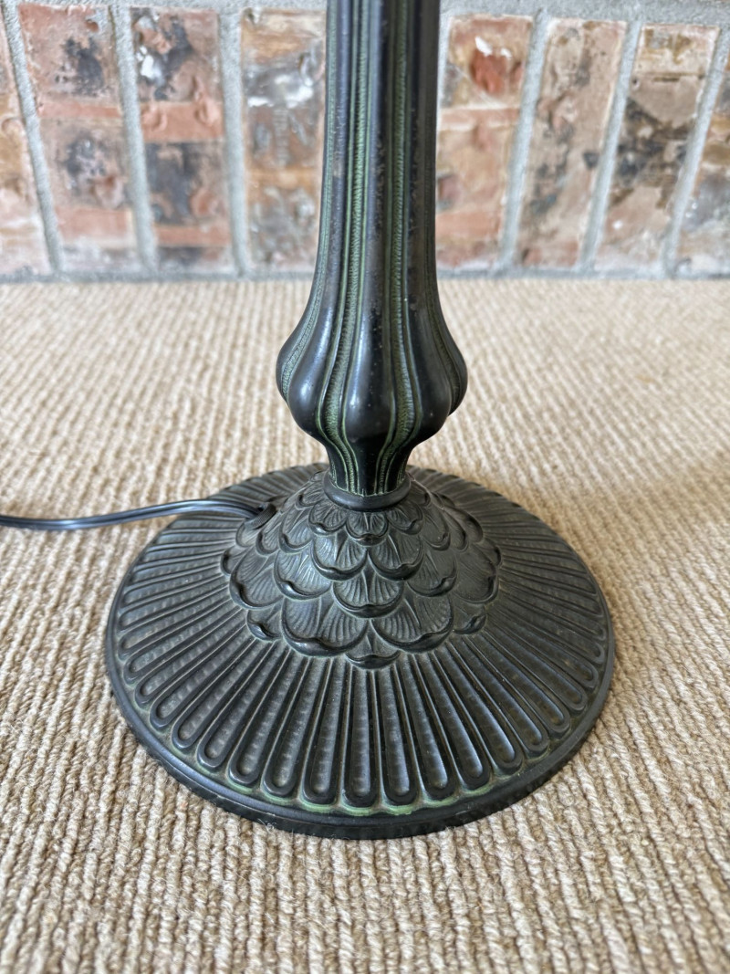 Vintage Slag Glass Panel Table Lamp w/ Cast Metal Base.