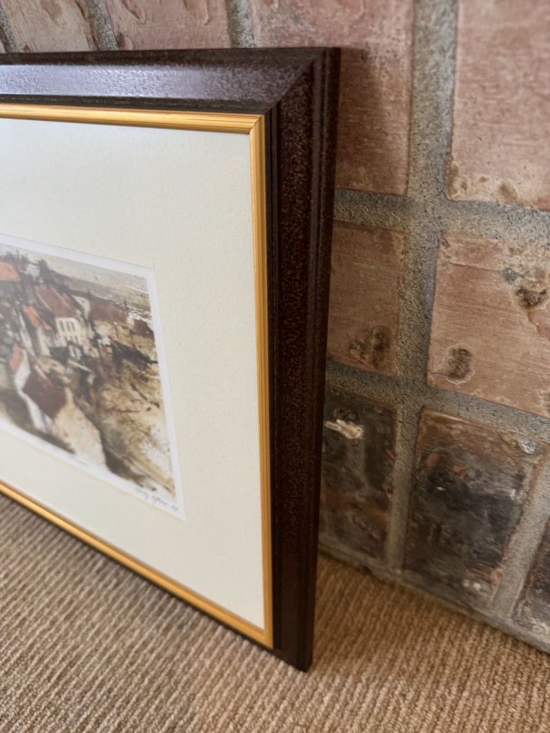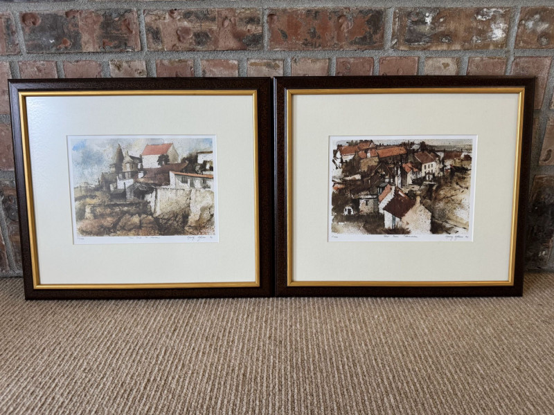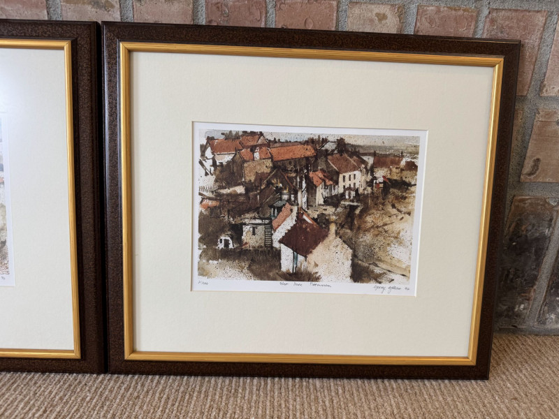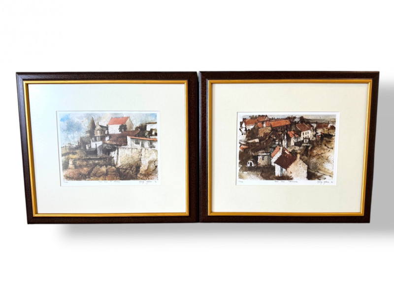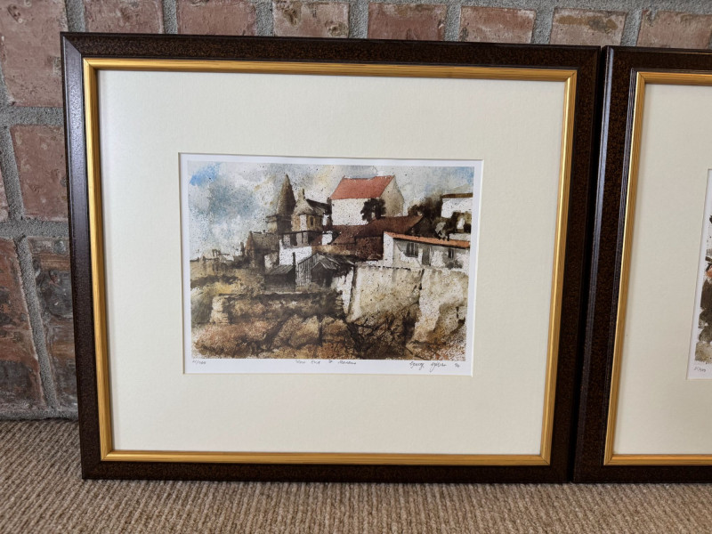 Signed Framed Prints - Pair of Coastal Village Scenes 21/500, 1994.