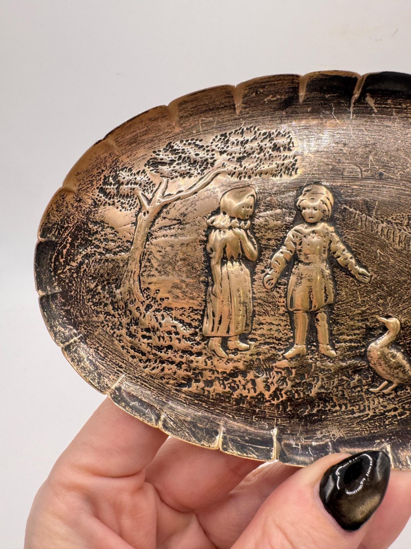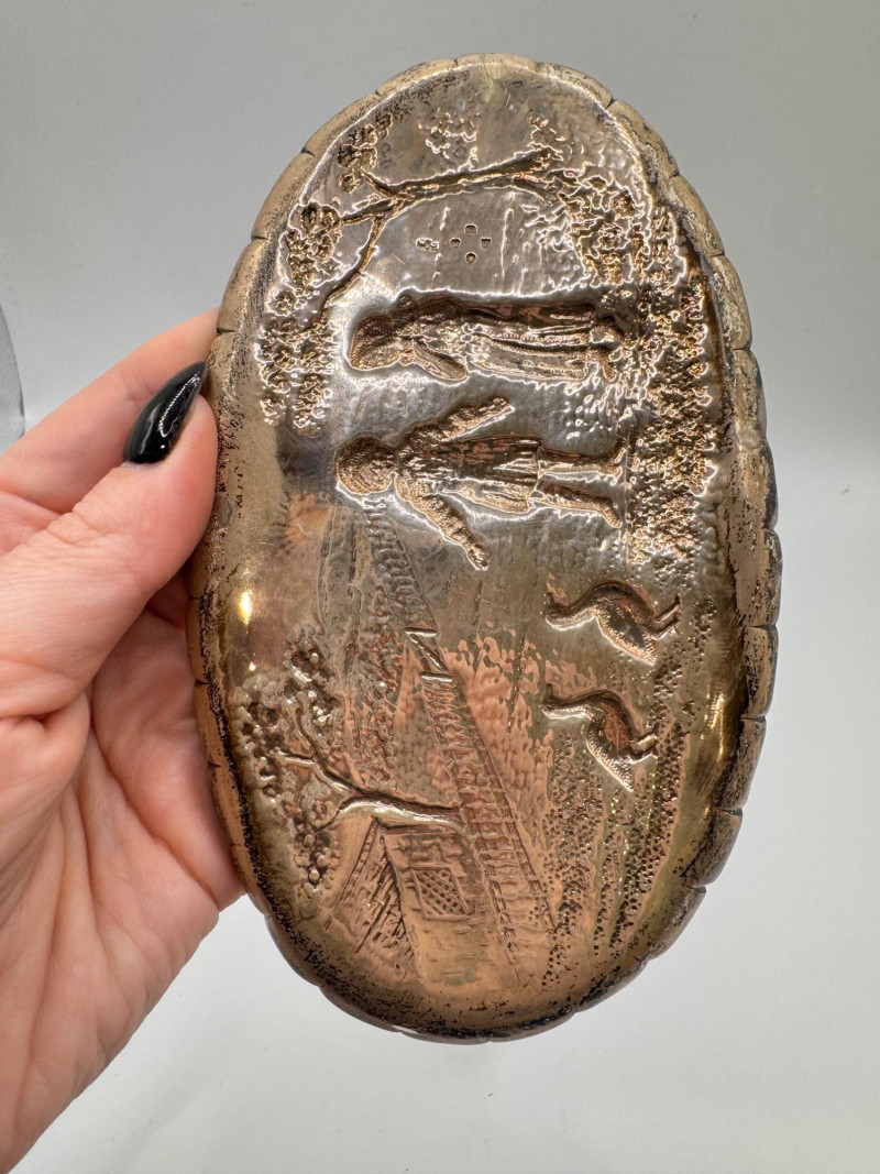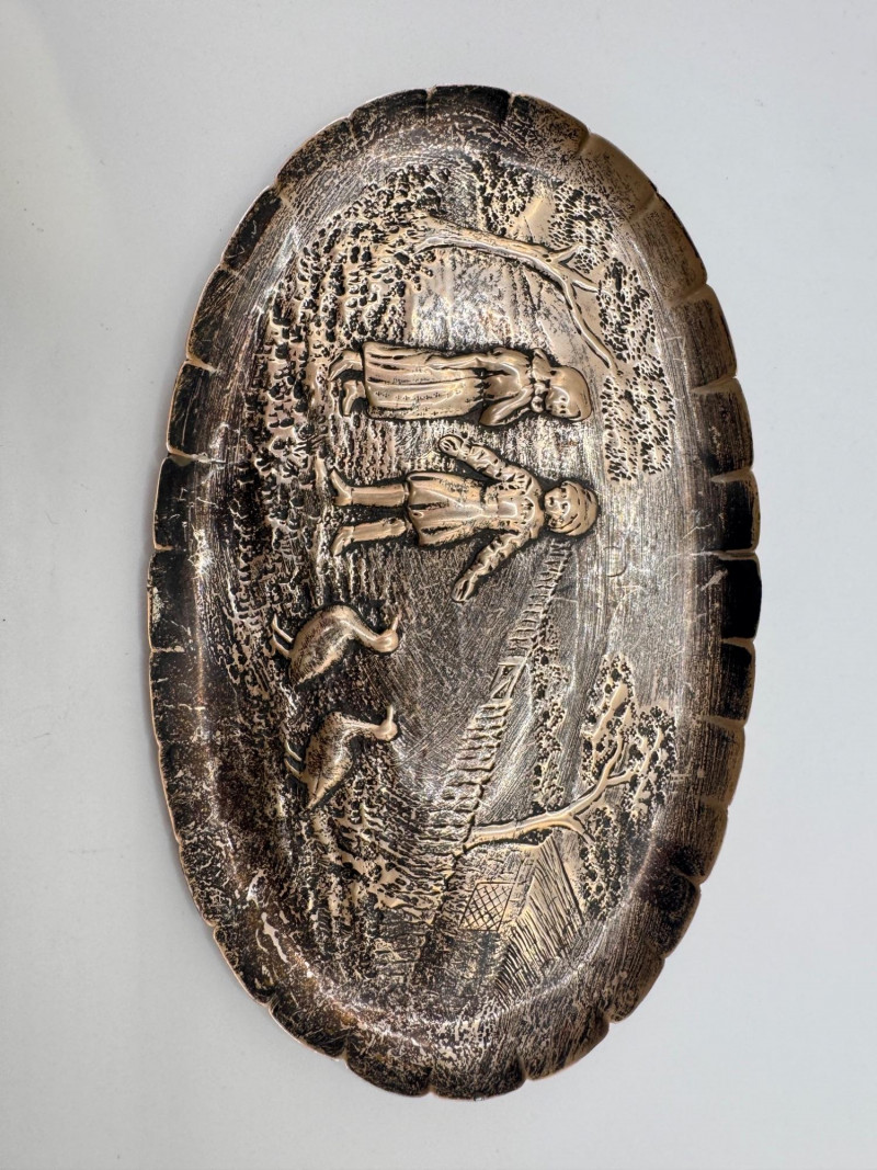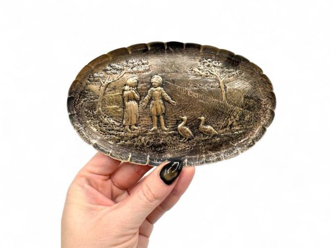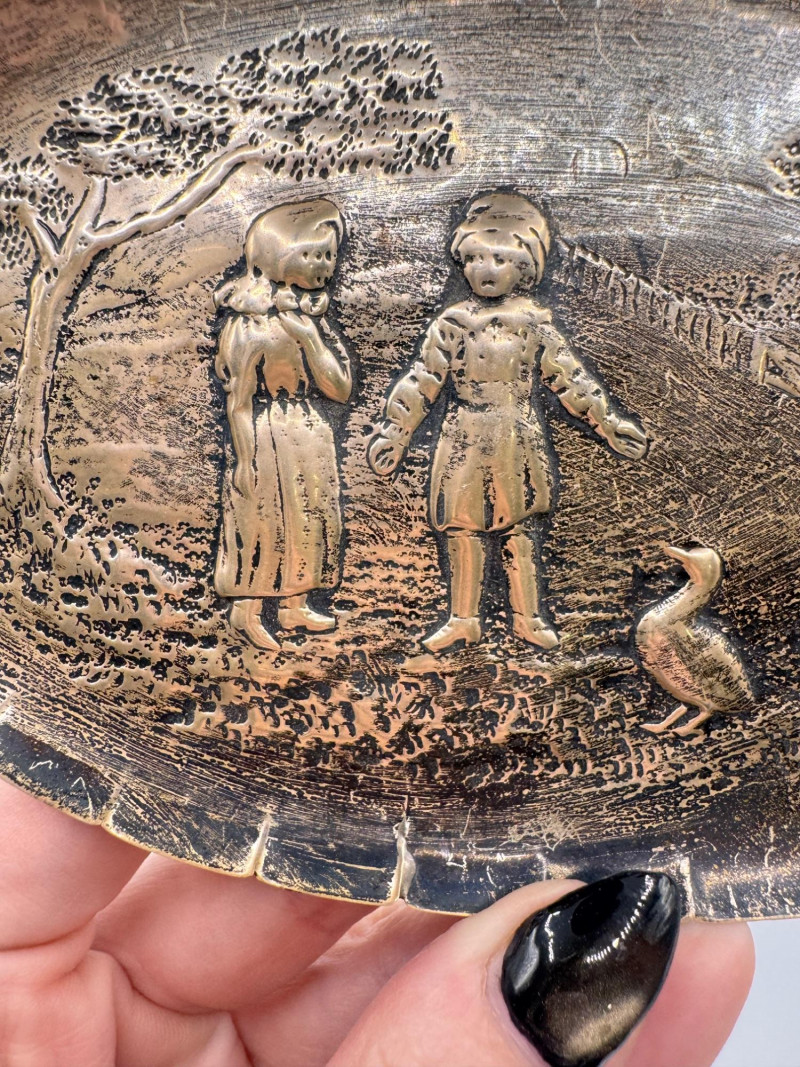 British Sterling Silver Repousse Dish Figural Scene c.1800s, 76.19g.