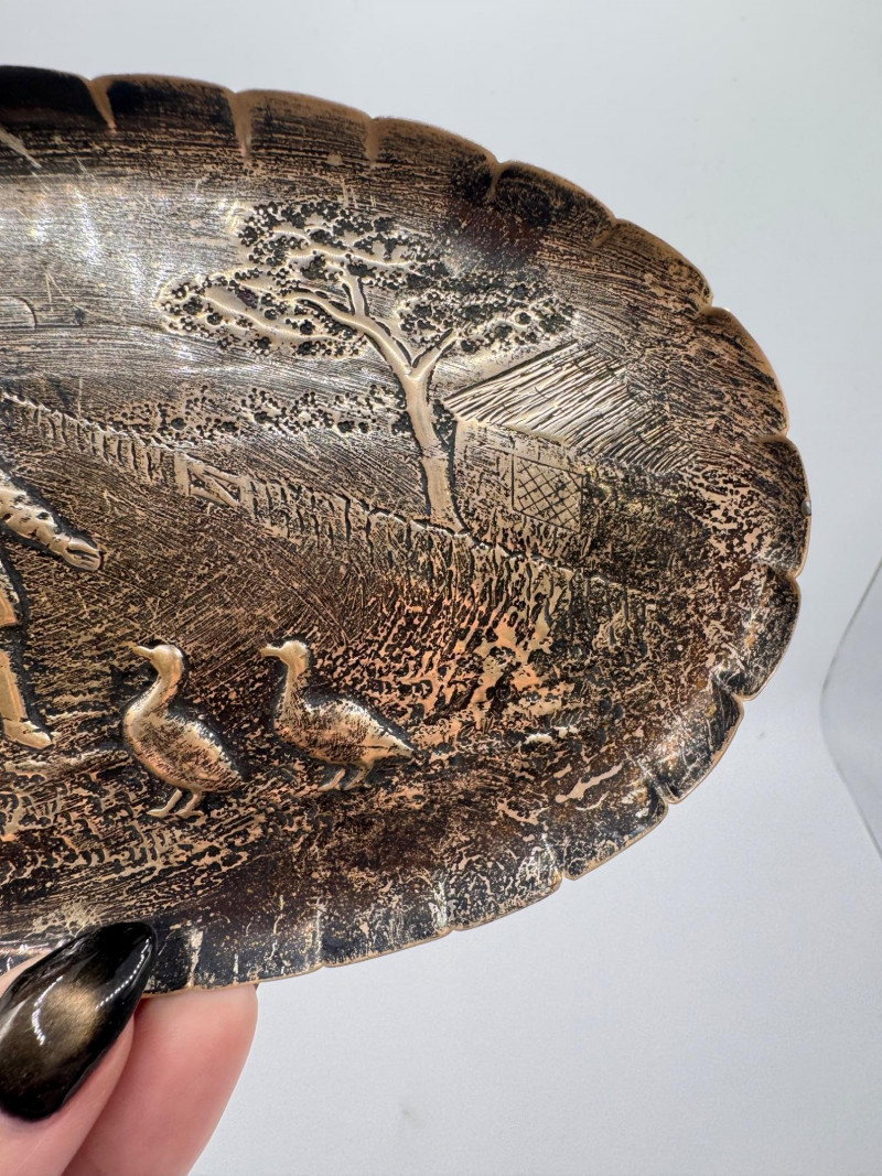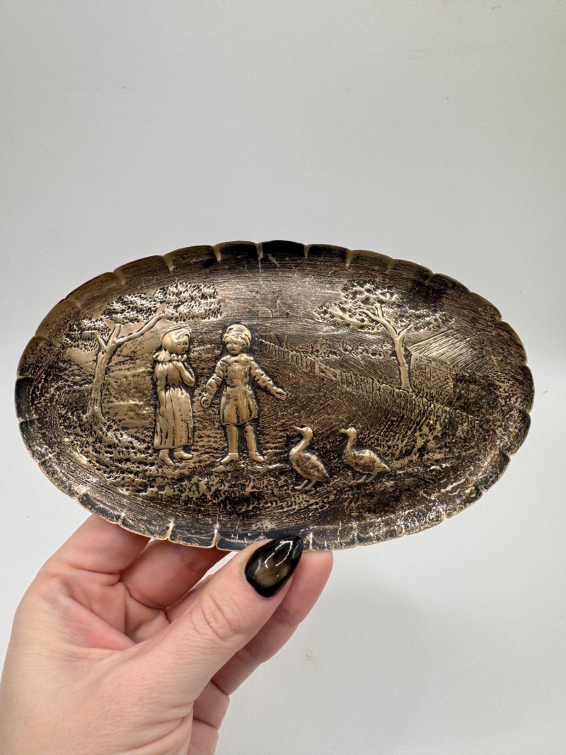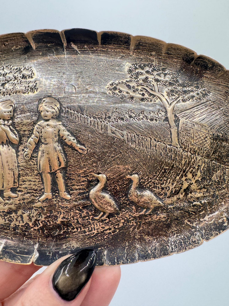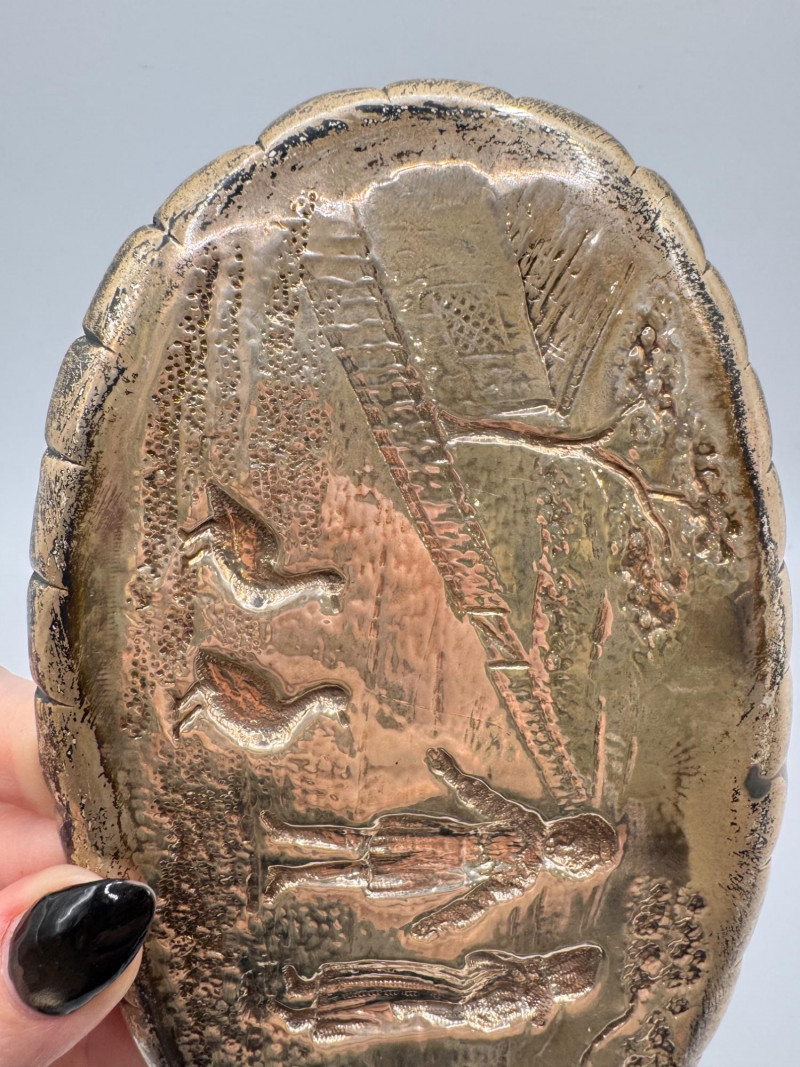 British Sterling Silver Repousse Dish Figural Scene c.1800s, 76.19g.