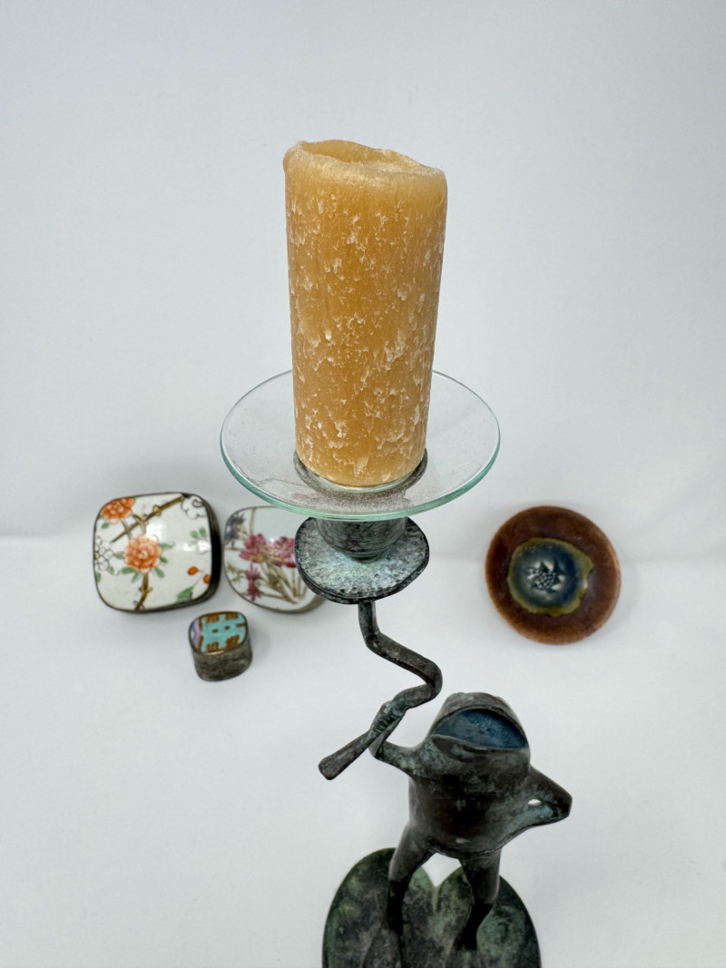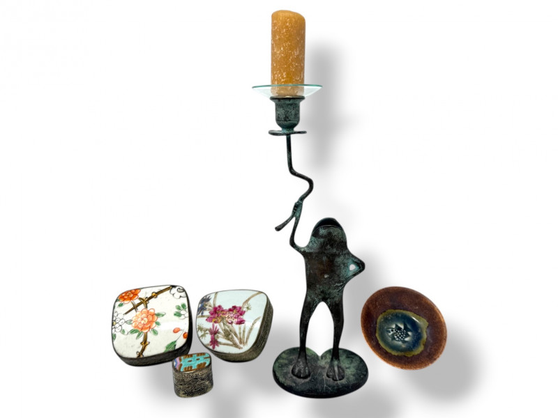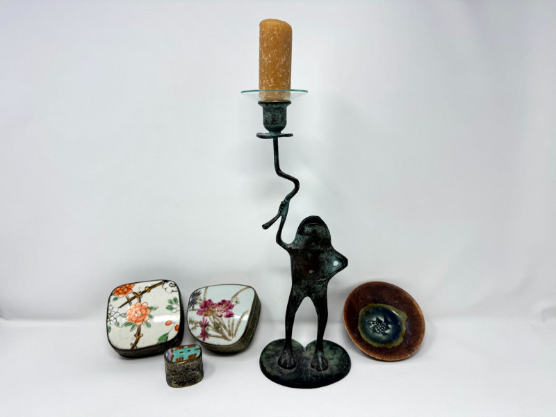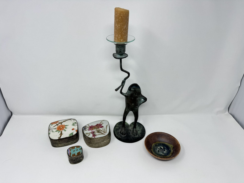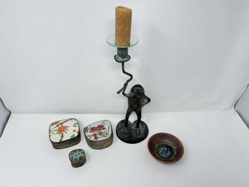 Vintage Frog Candle Holder w/ Trinket Boxes & Dish Porcelain.
