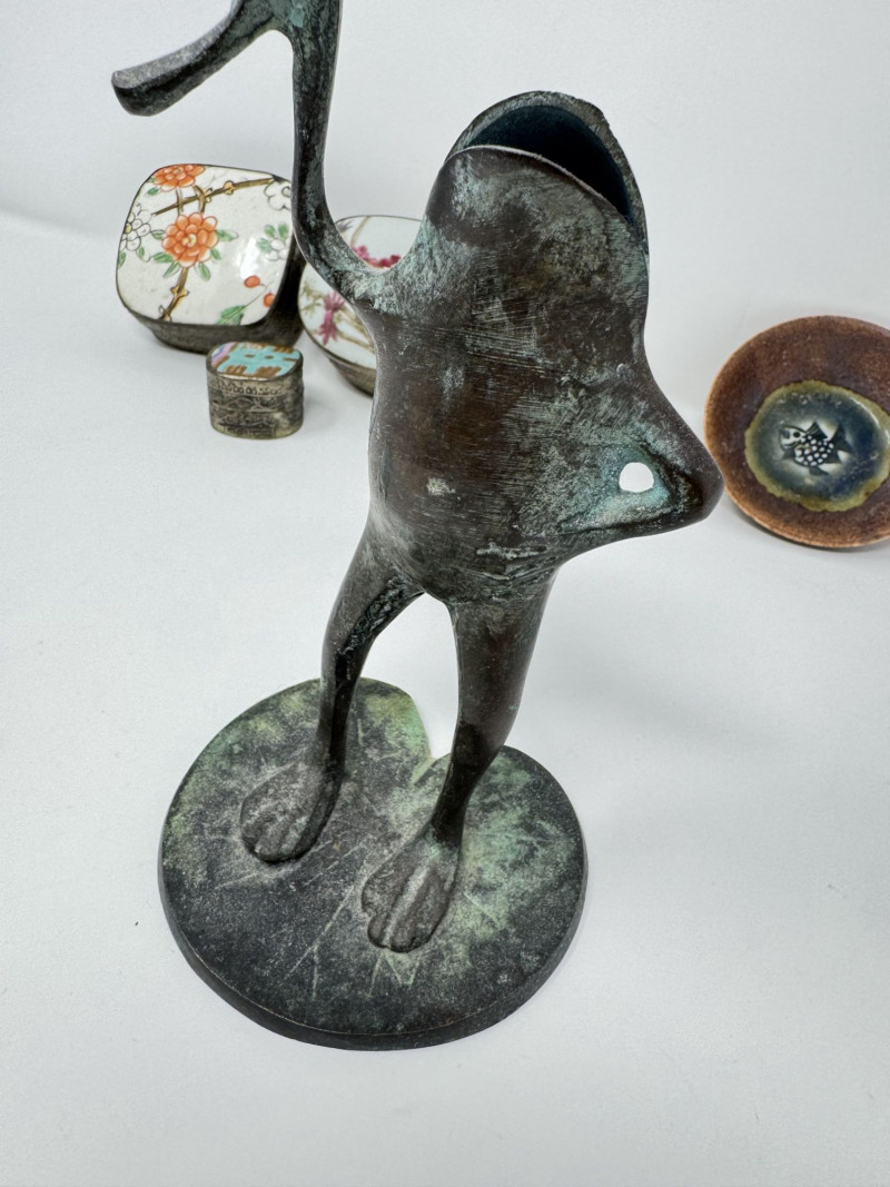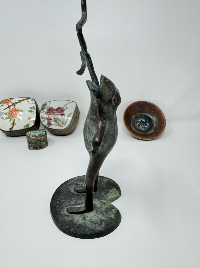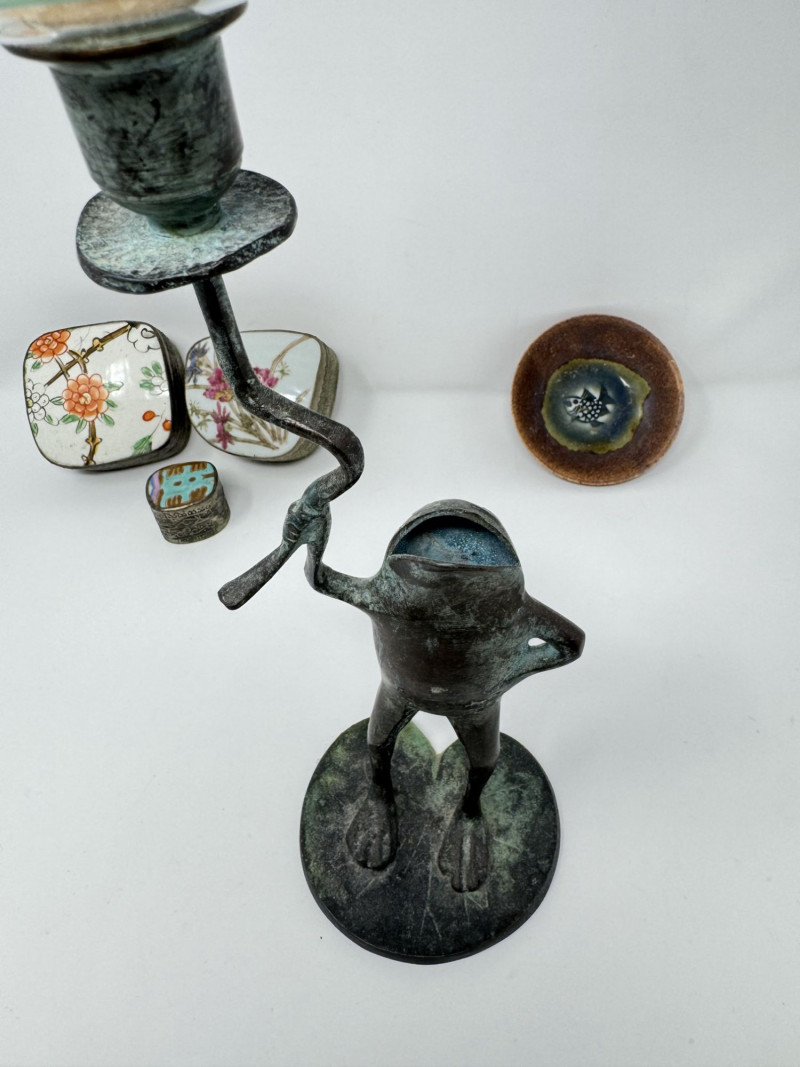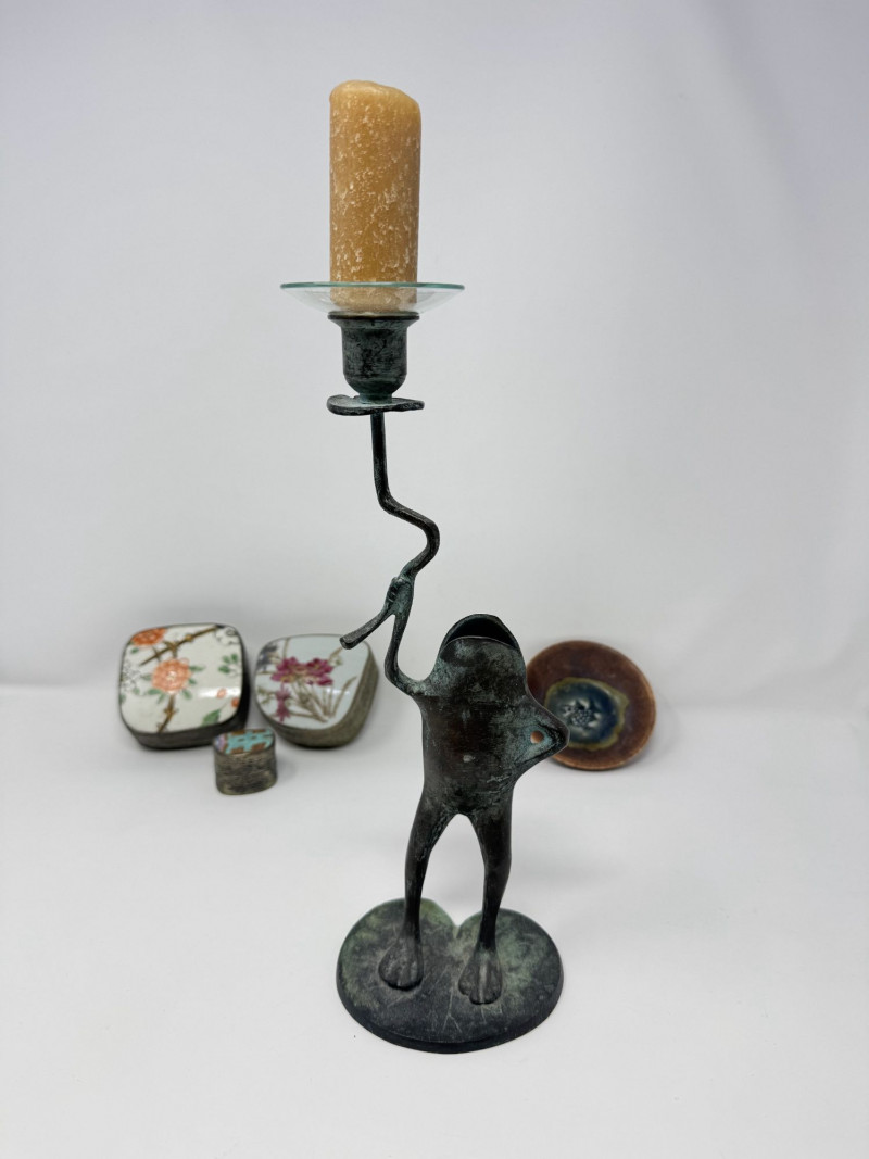 Vintage Frog Candle Holder w/ Trinket Boxes & Dish Porcelain.