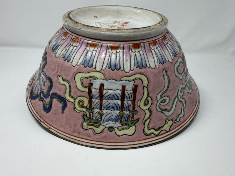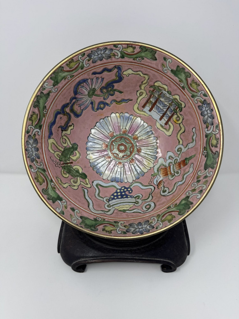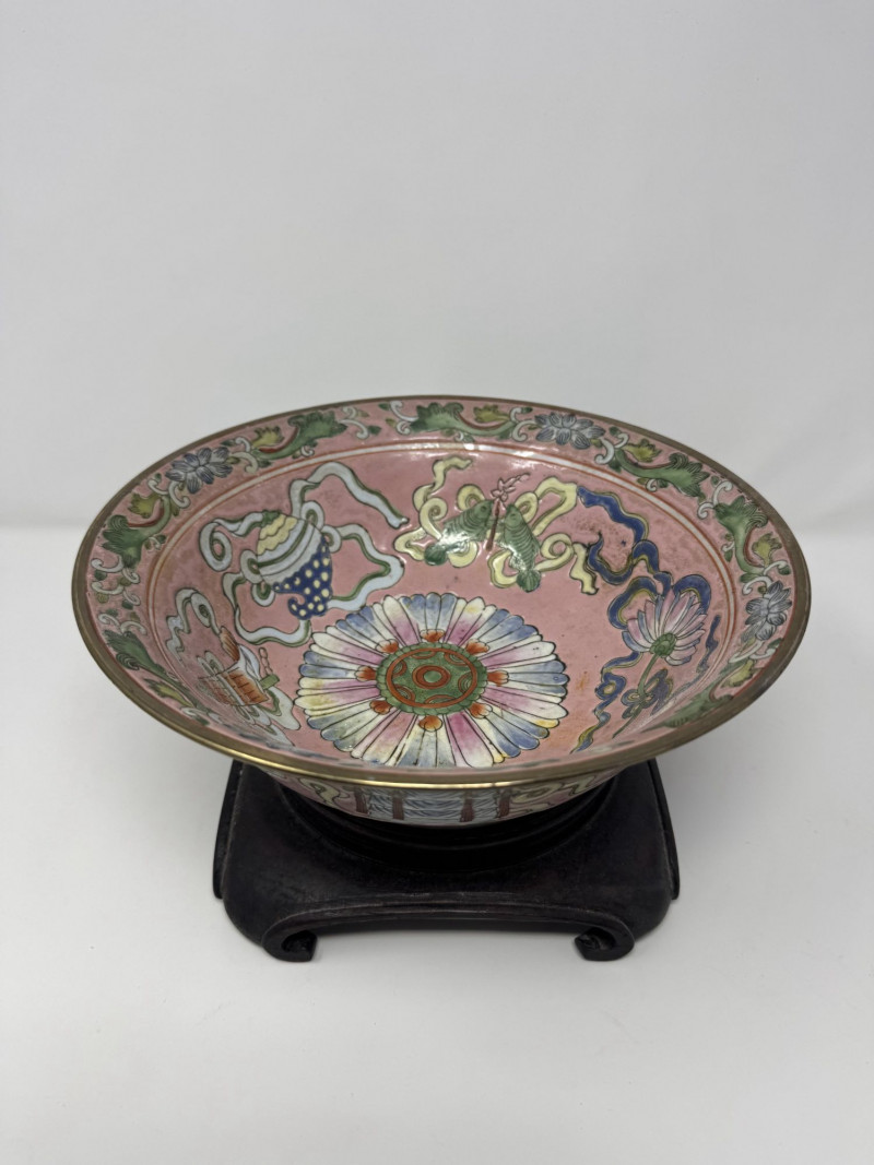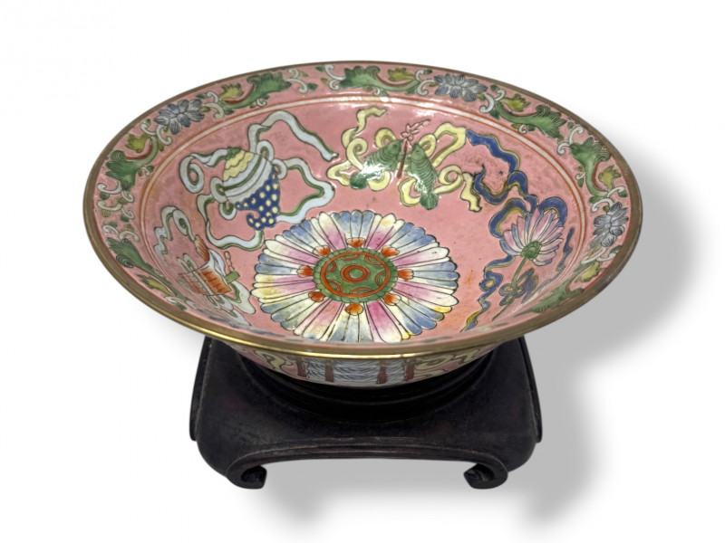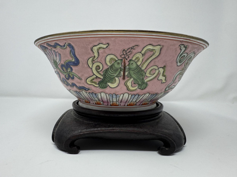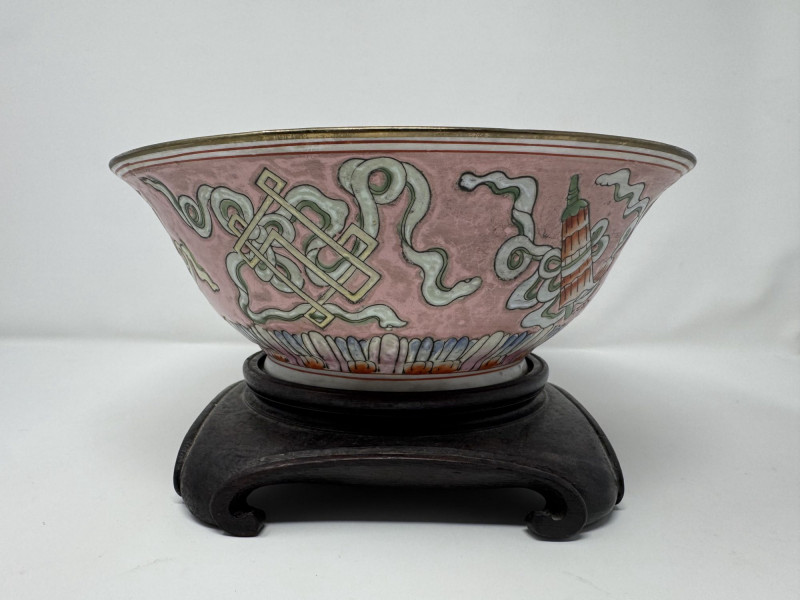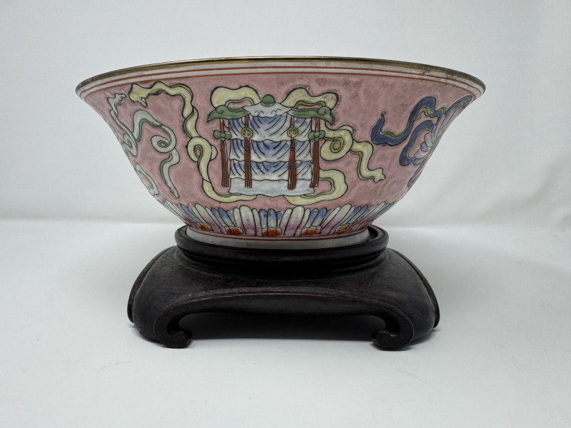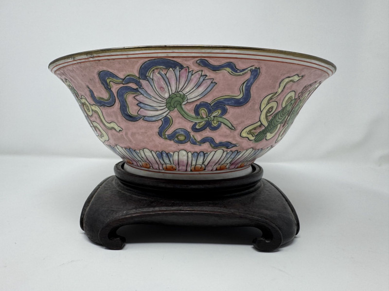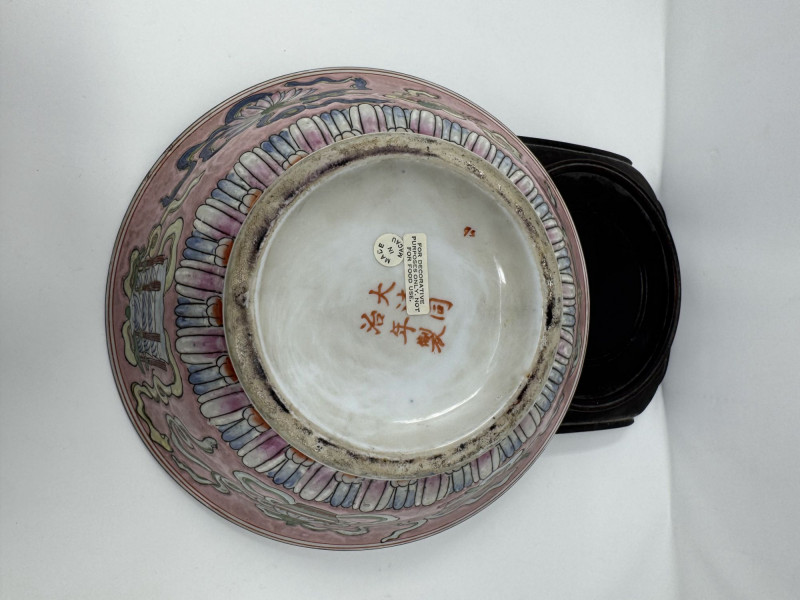 Lot # 32 - Vintage Macau Hand Painted Pink Floral Bowl w/ Stand