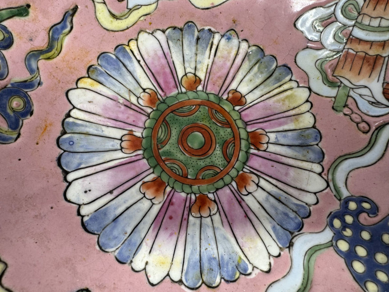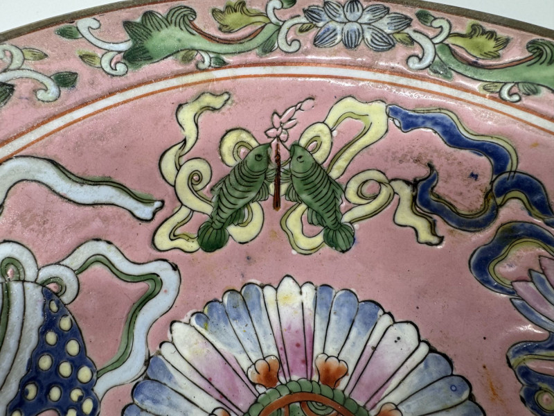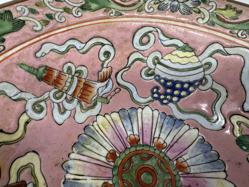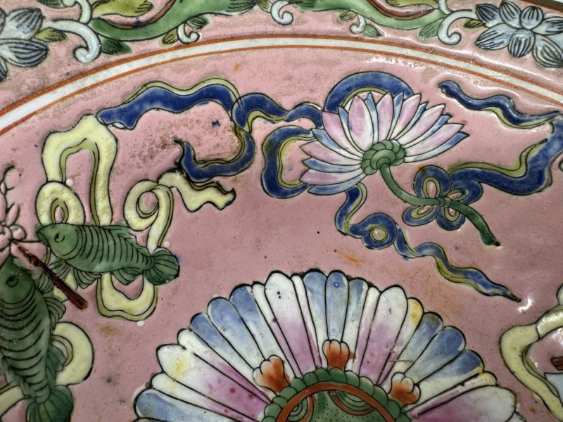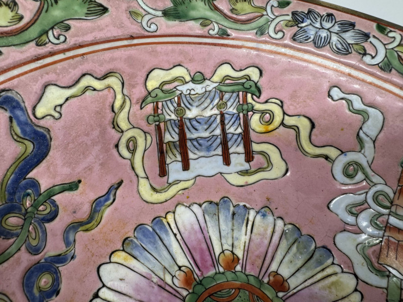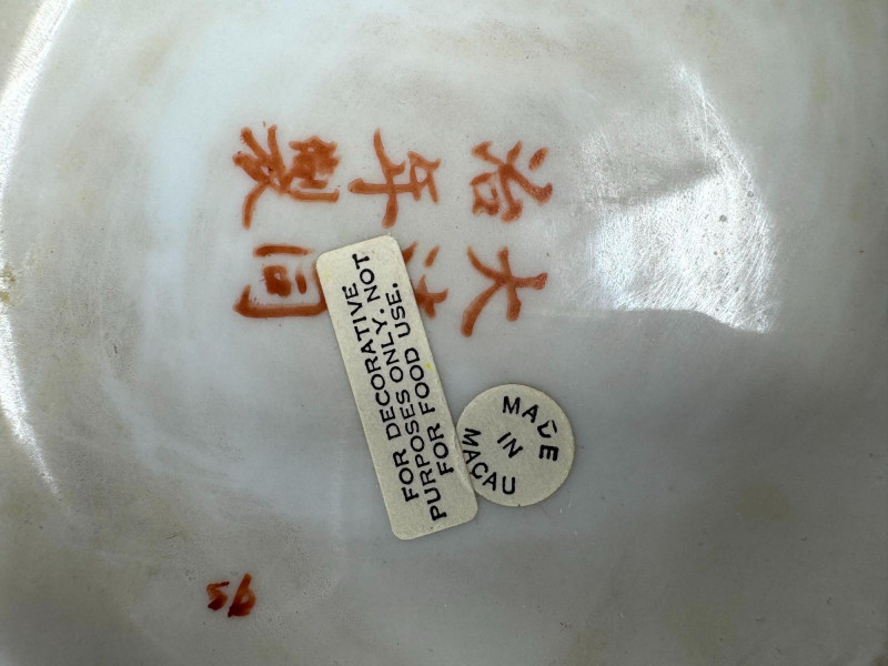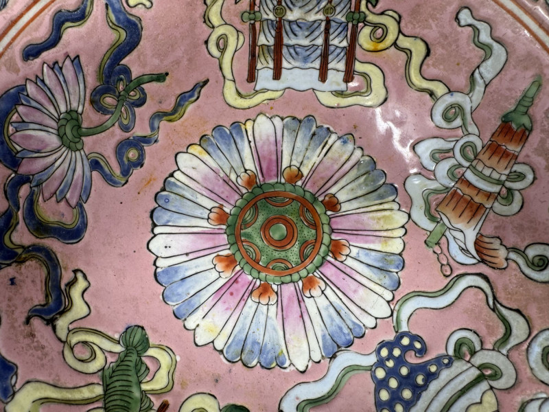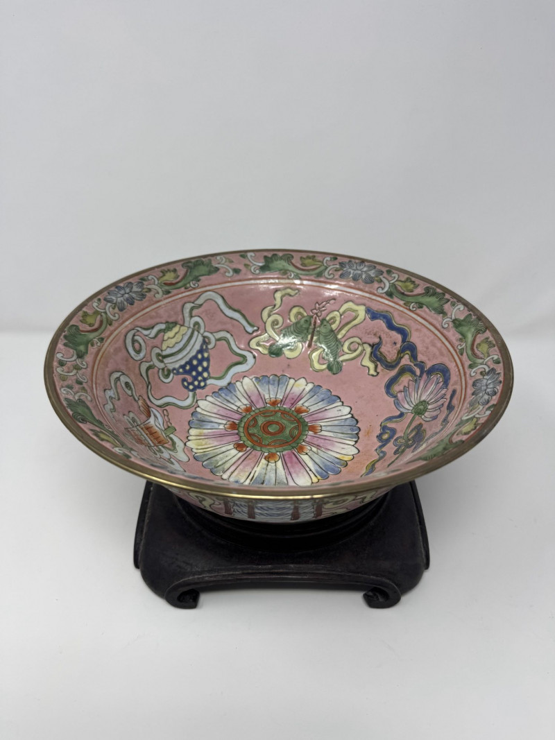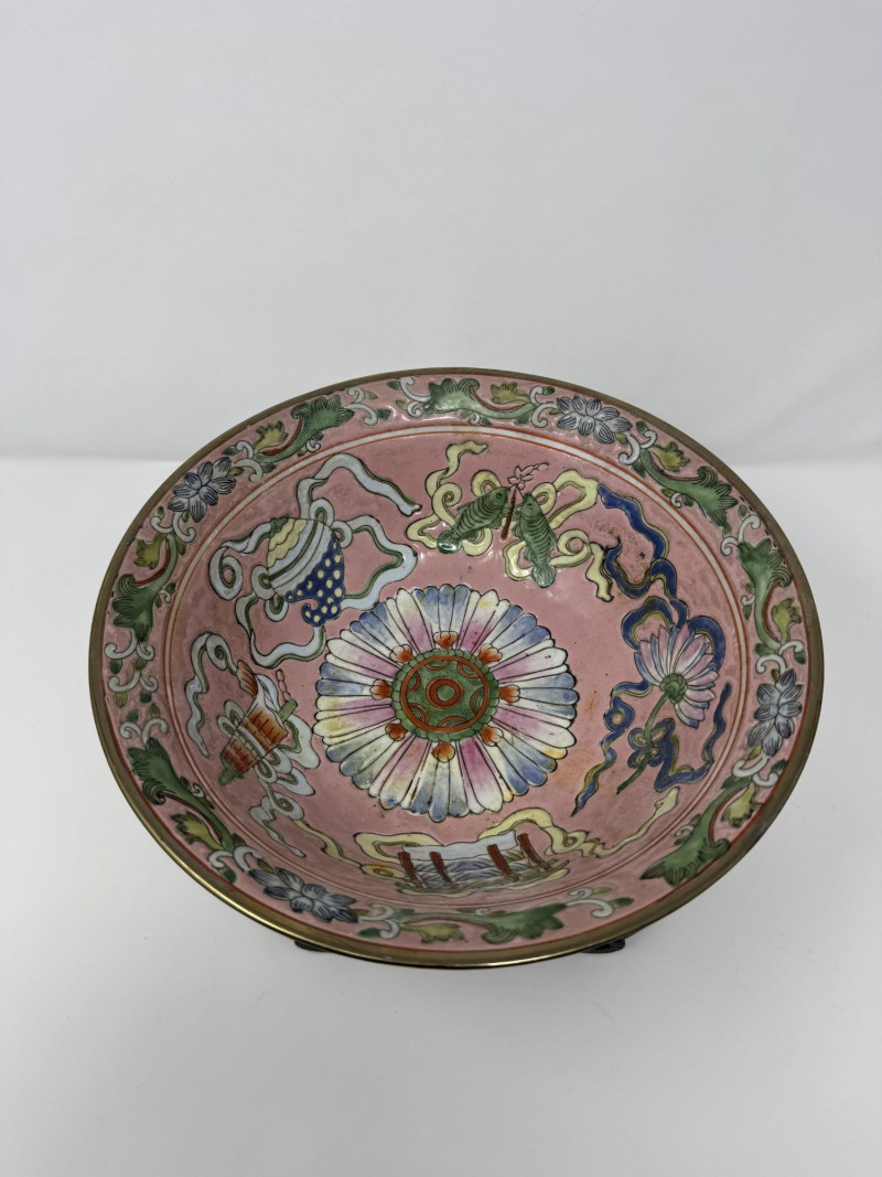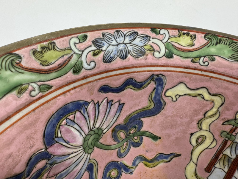 Lot # 32 - Vintage Macau Hand Painted Pink Floral Bowl w/ Stand