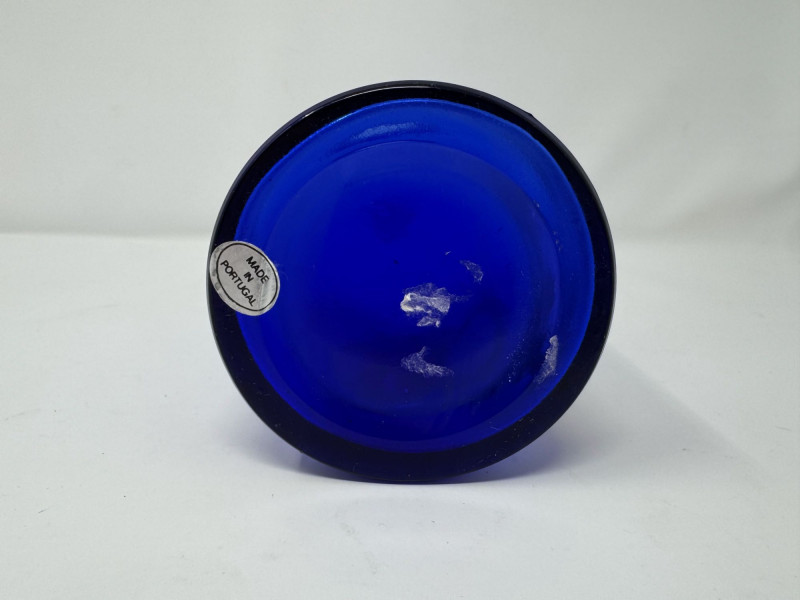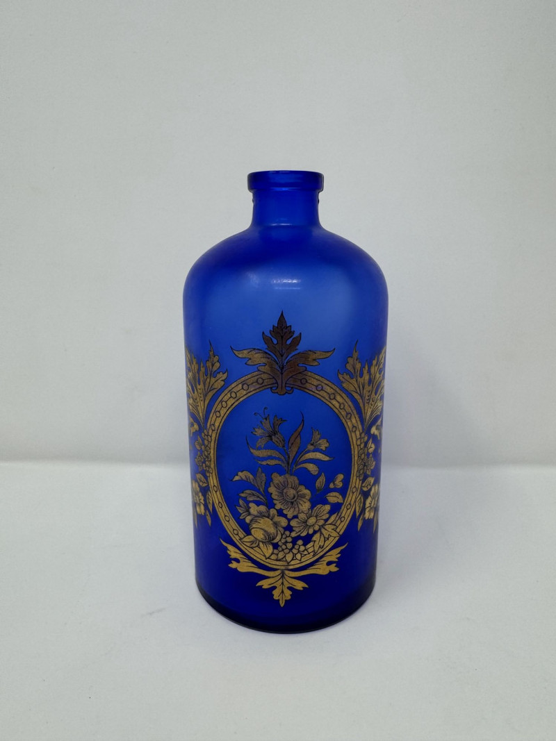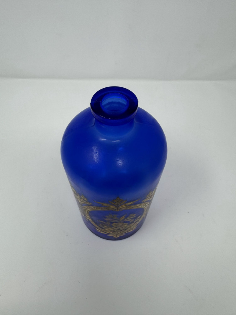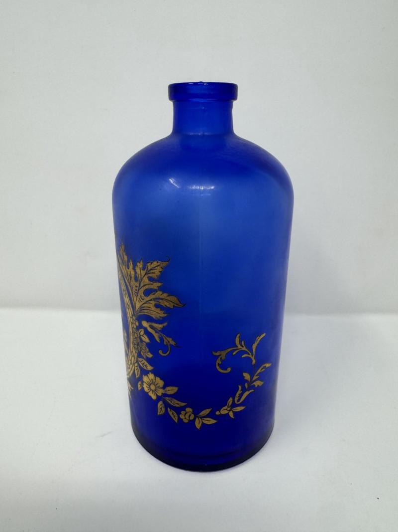 Cobalt Blue Glass Vase w/ Gold Floral Design - Made in Portugal.