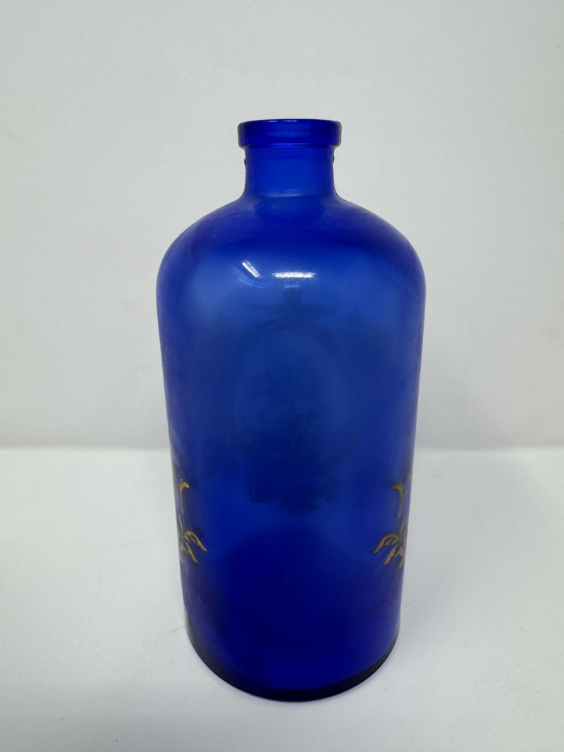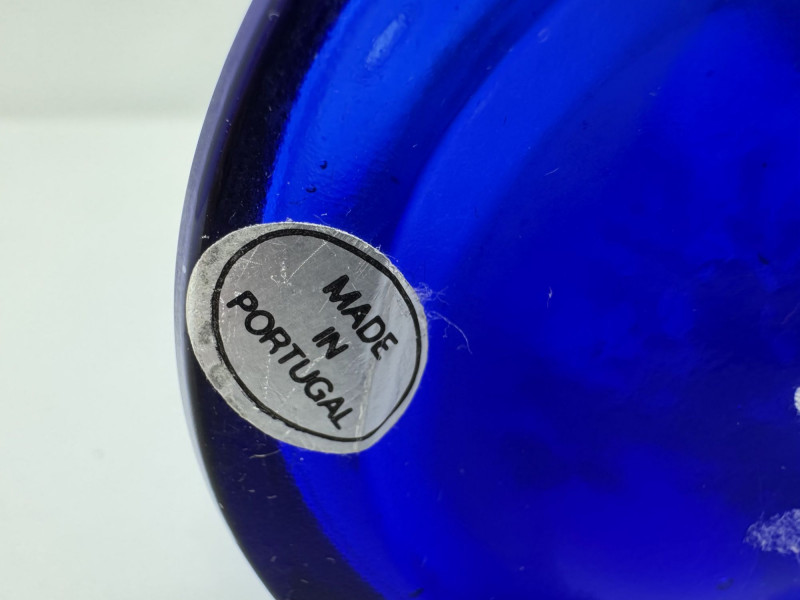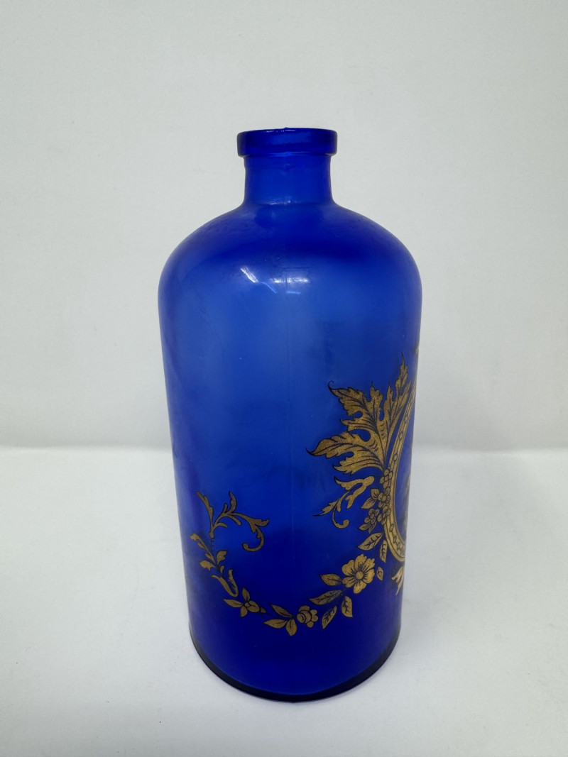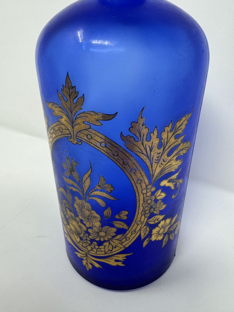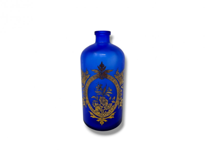 Cobalt Blue Glass Vase w/ Gold Floral Design - Made in Portugal.