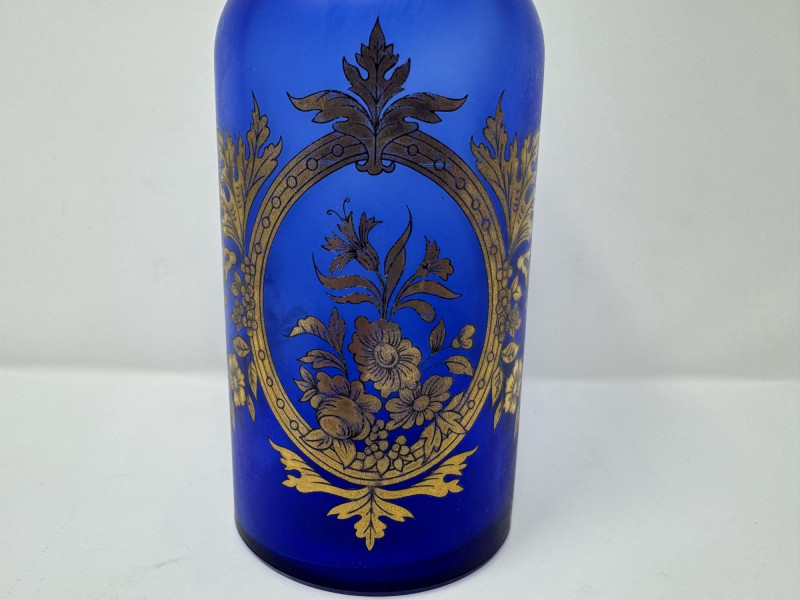 Lot # 33 - Cobalt Blue Glass Vase w/ Gold Floral Design - Made in Portugal