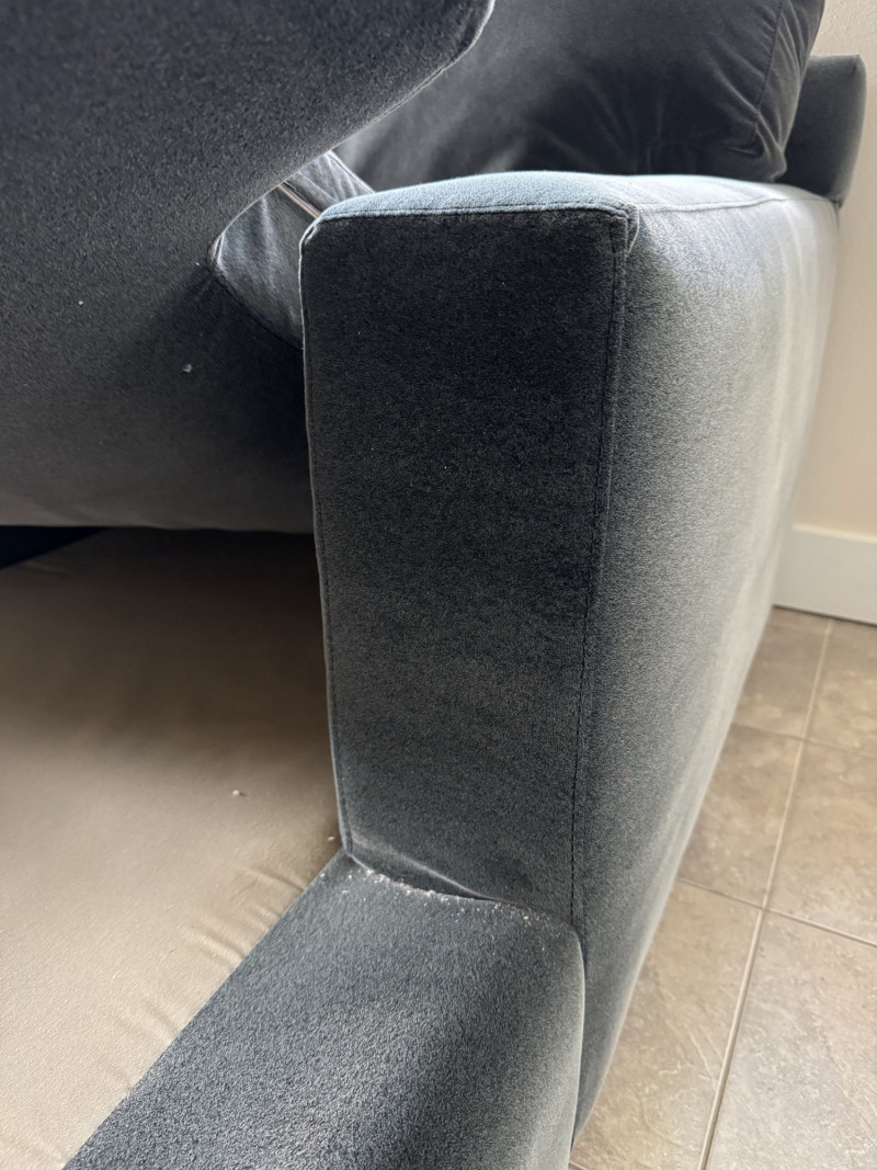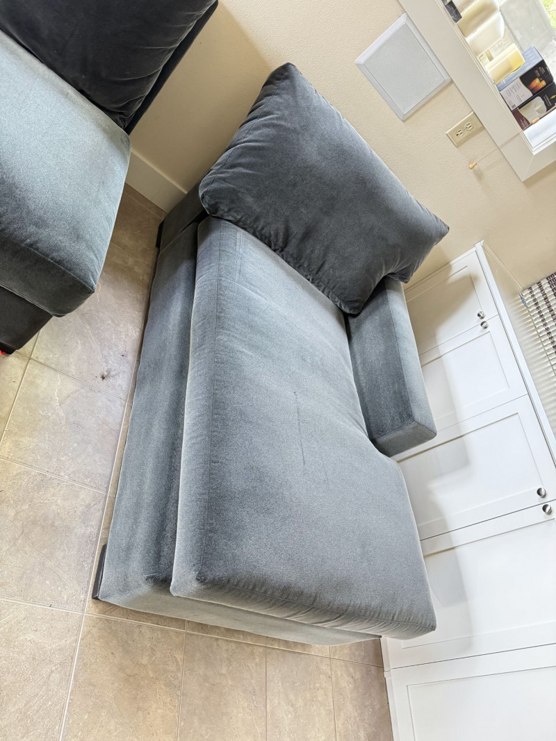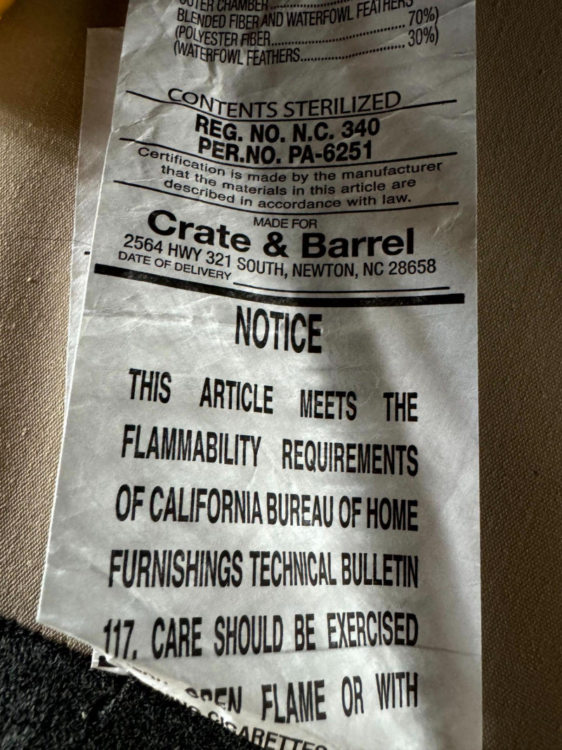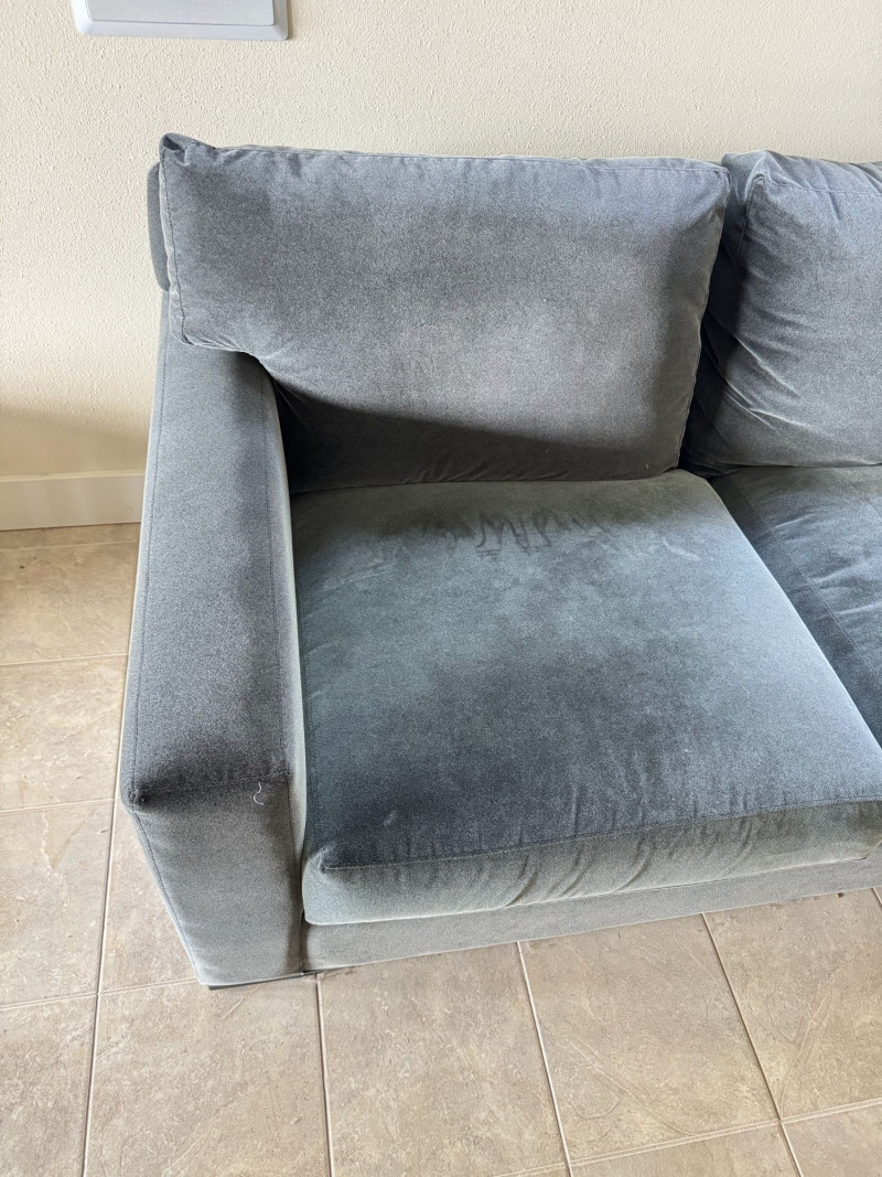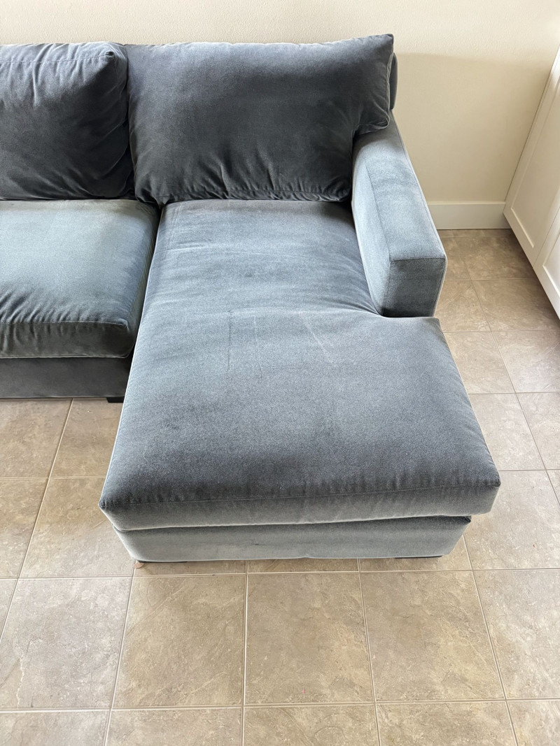 Crate & Barrel Sectional Sofa w/ Chaise. Bidding on this lot is an agreement that: (1.) You will have at least 2 capable, able bodied persons to lift and load at a minimum. (2.) You will bring a hand truck and/or any other tools needed to remove this item. If these steps are not followed your item will be forfeit and no refund given.