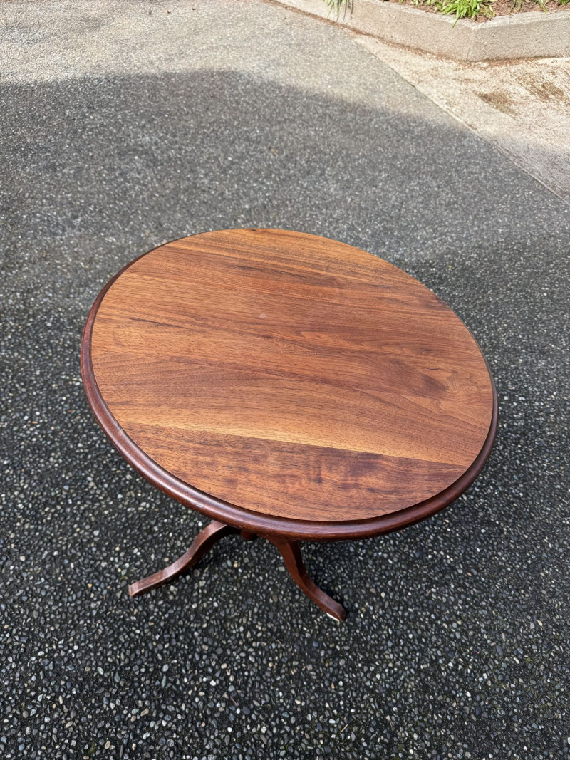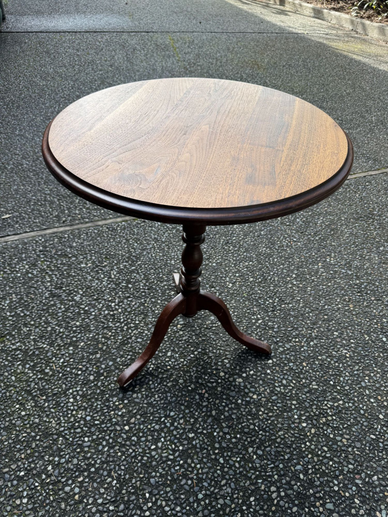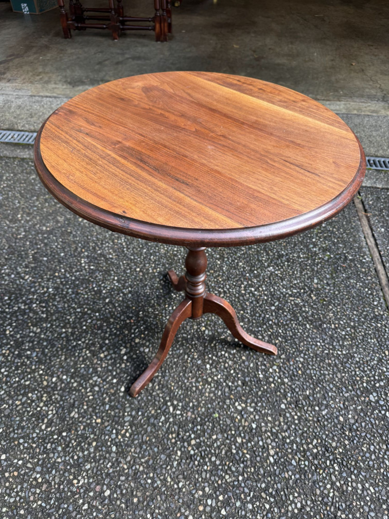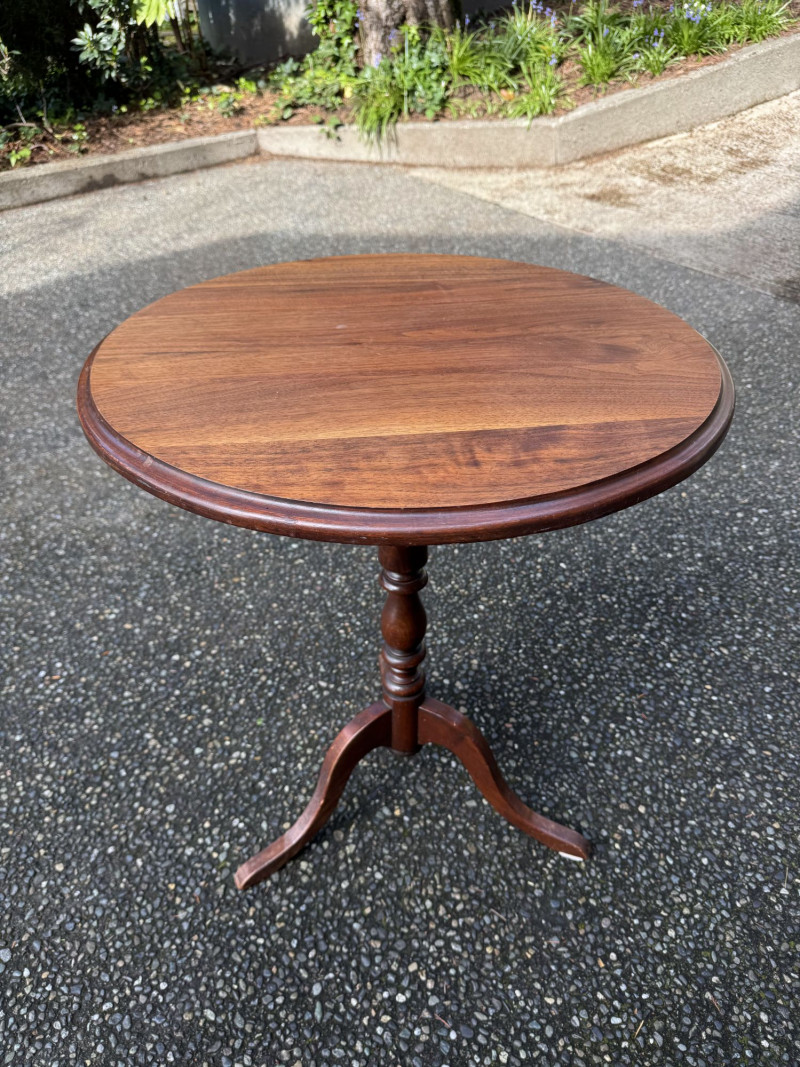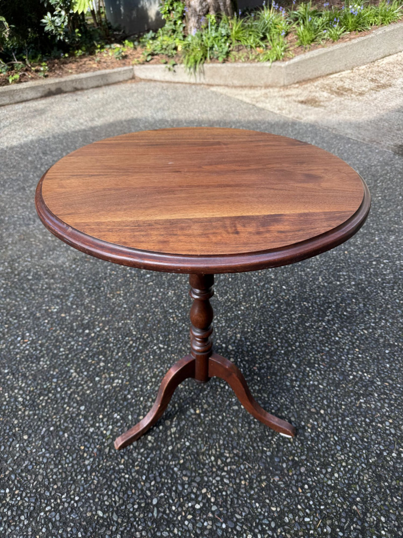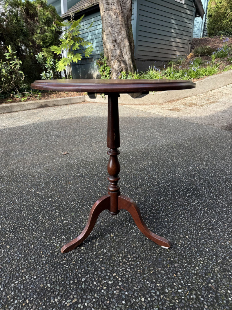 Classic Round Wood Pedestal Side Table w/ Tripod Base.