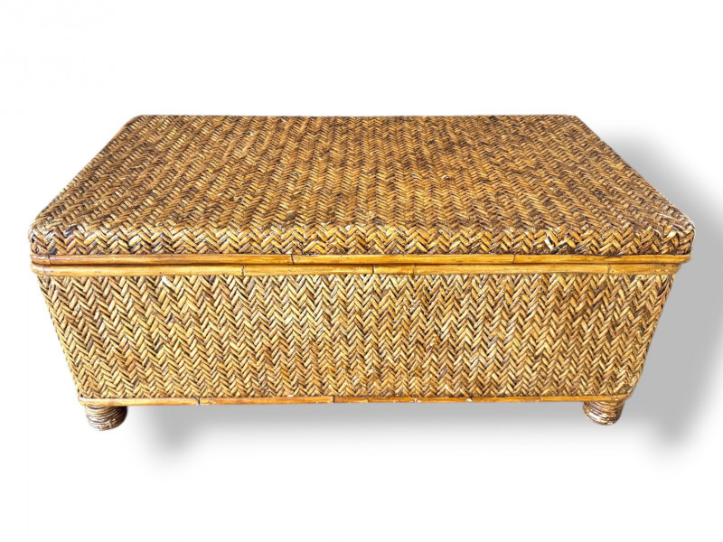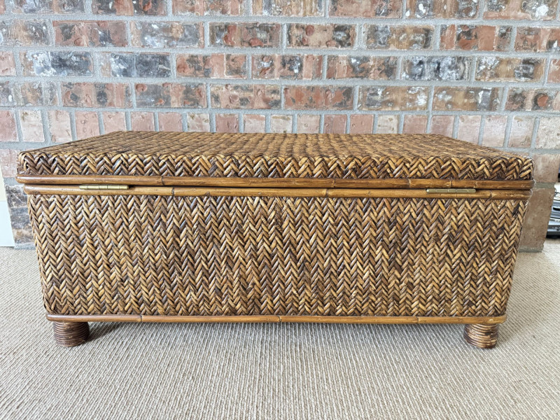 Lot # 61 - Woven Rattan Storage Trunk Chest – Wood Frame, Hinged Lid