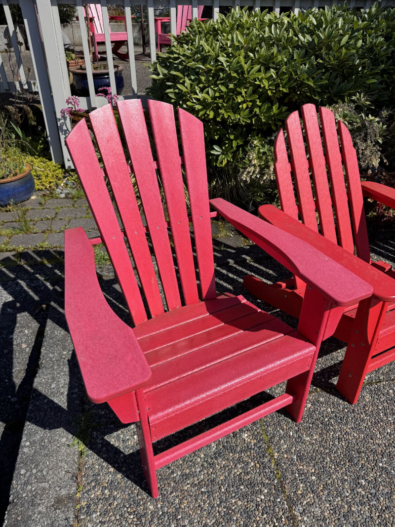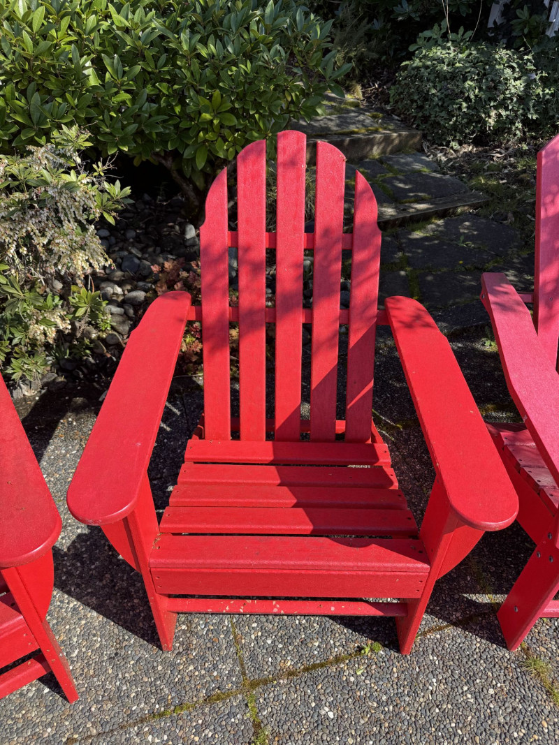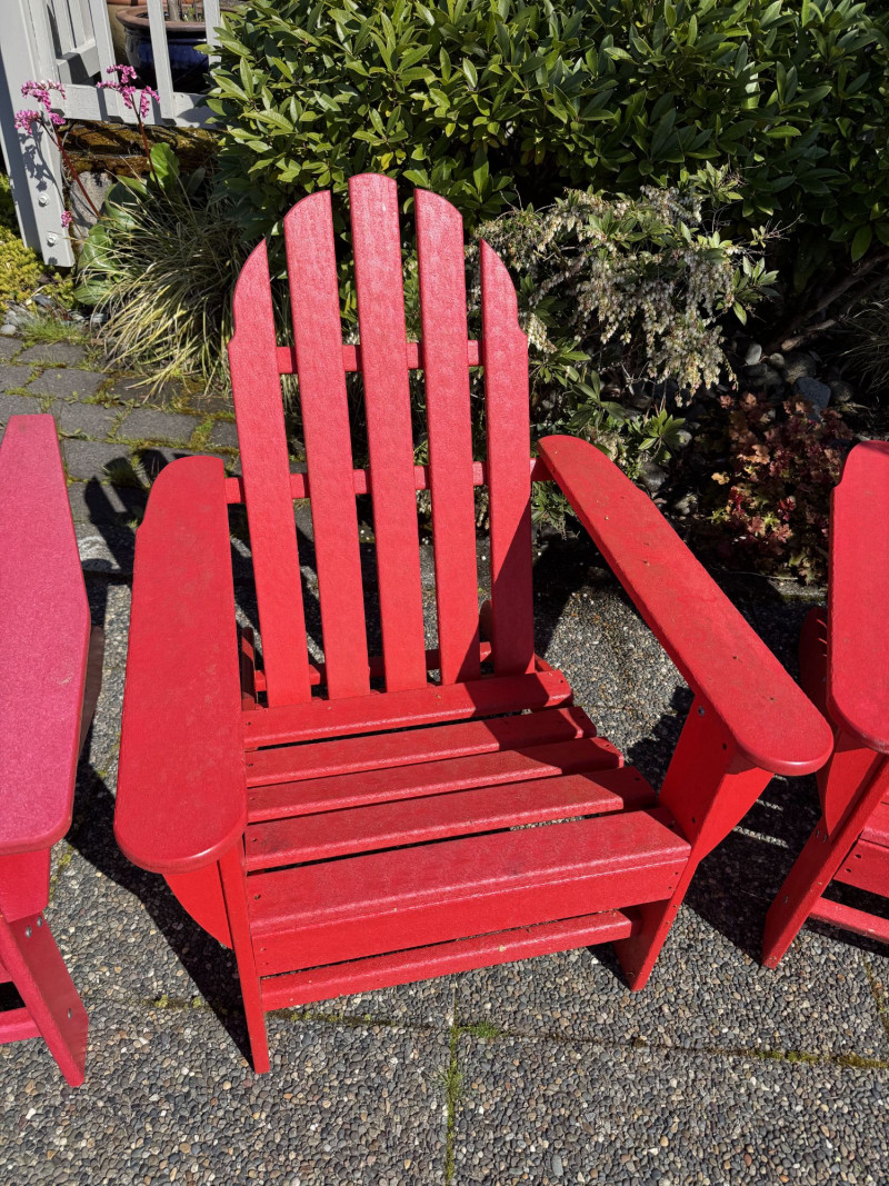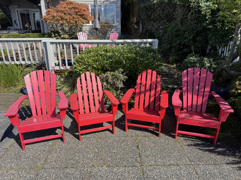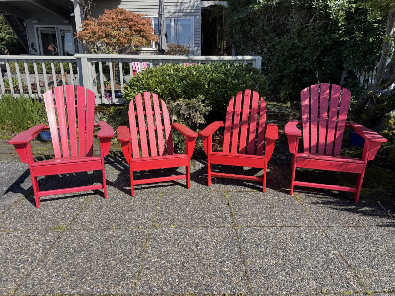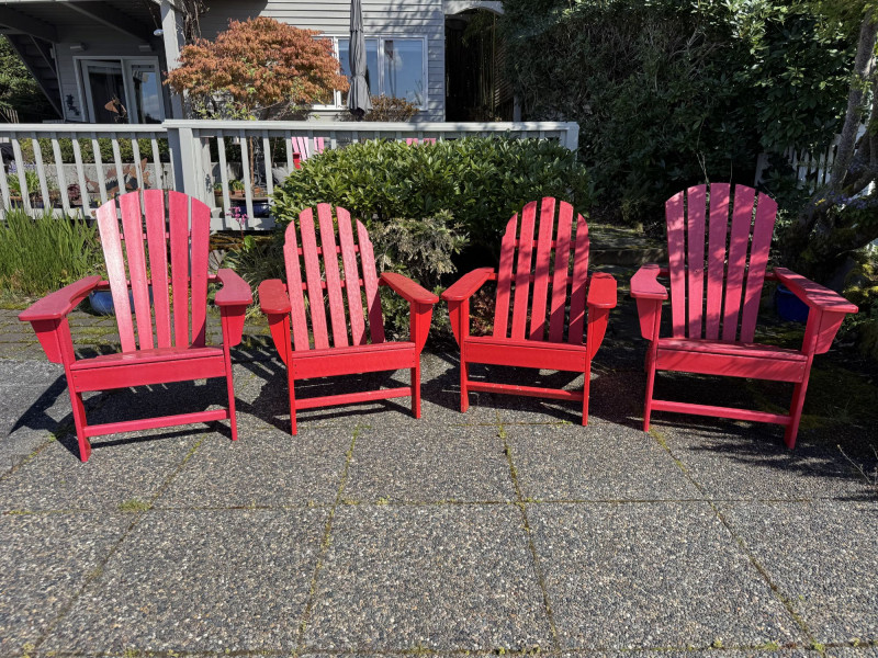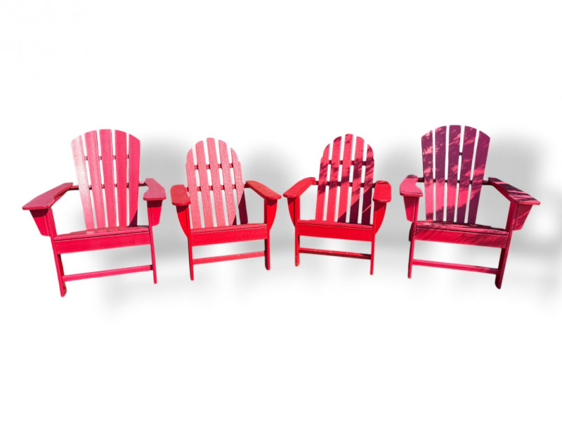 Set of 4 Adirondack Outdoor Chairs – Red Painted Wood.