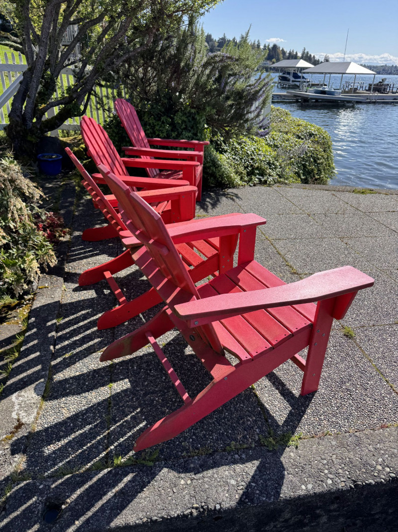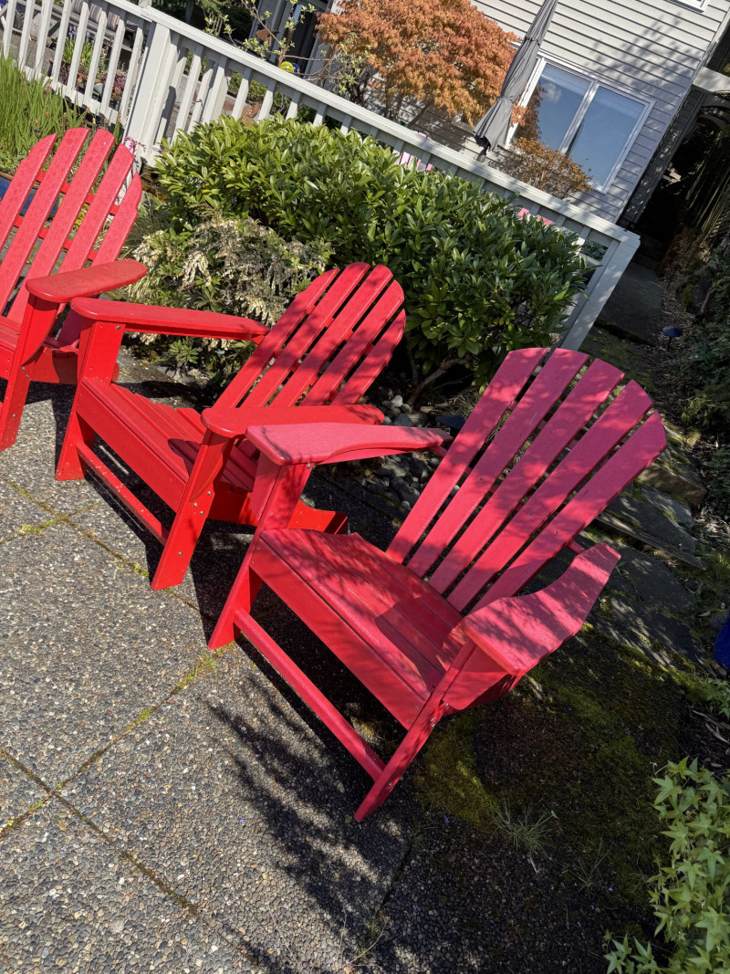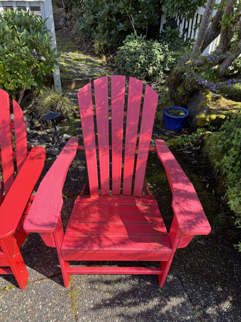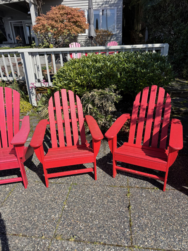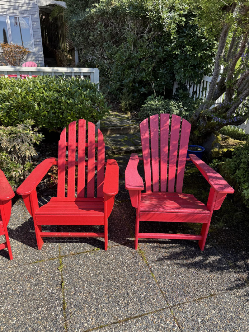 Set of 4 Adirondack Outdoor Chairs – Red Painted Wood.
