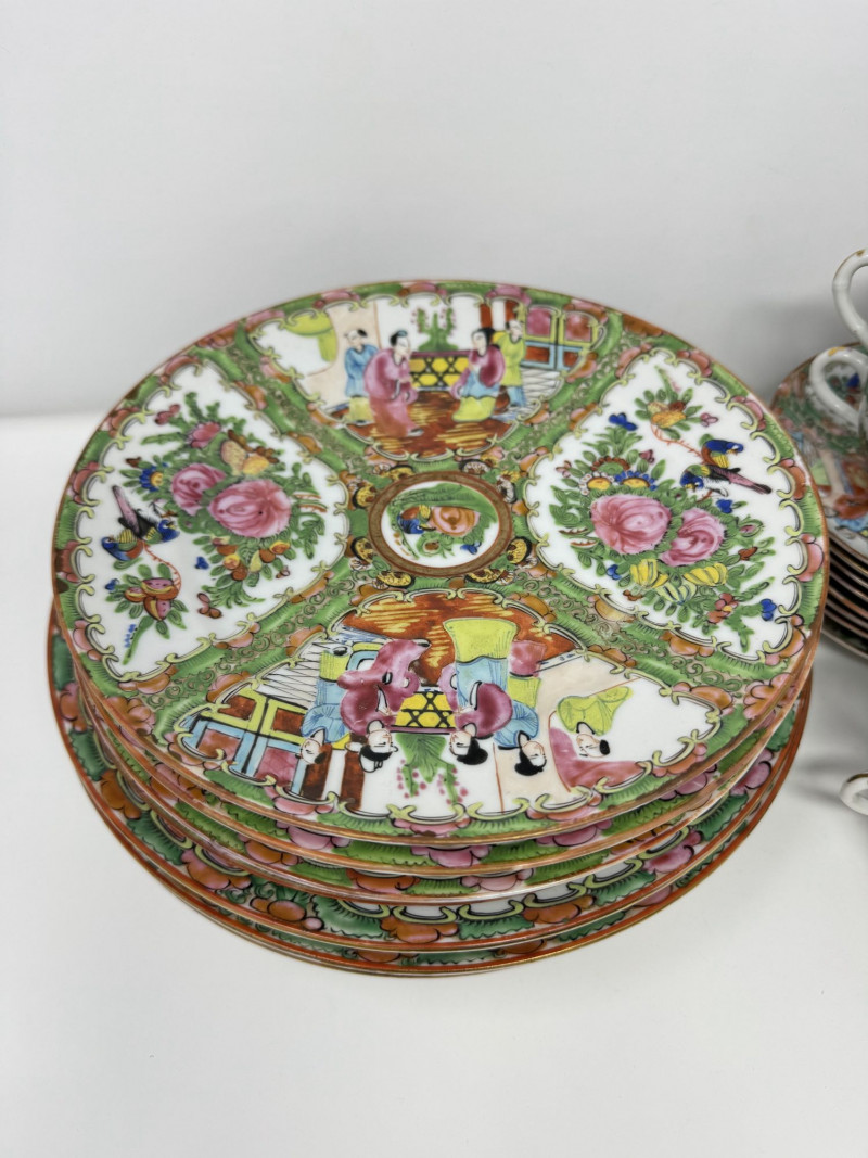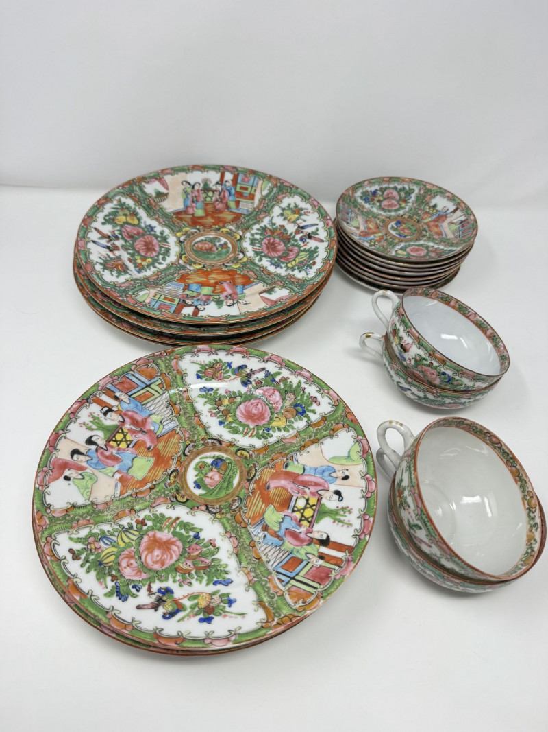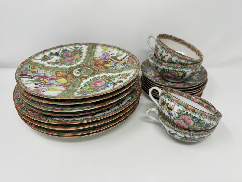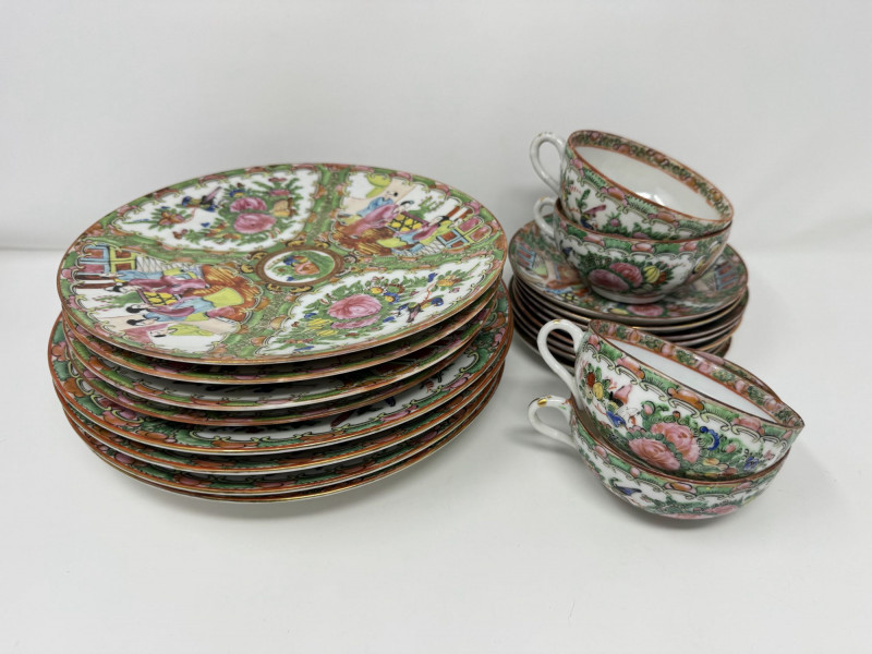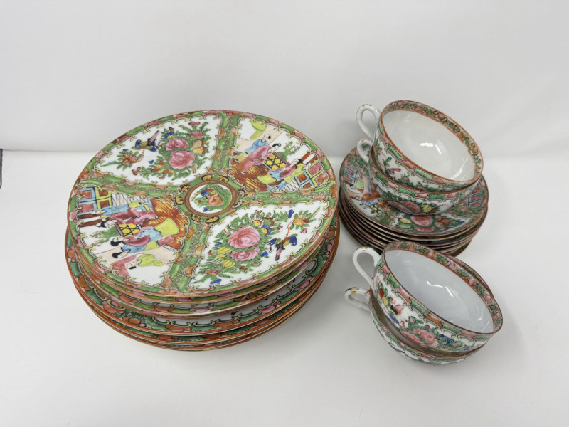 Chinese Rose Medallion Porcelain Dinnerware - Plates, Cups, & Saucers.