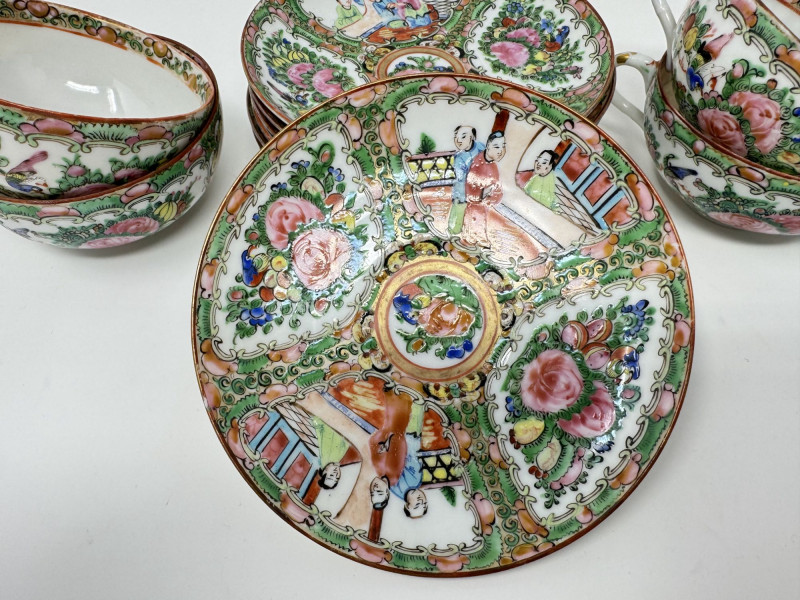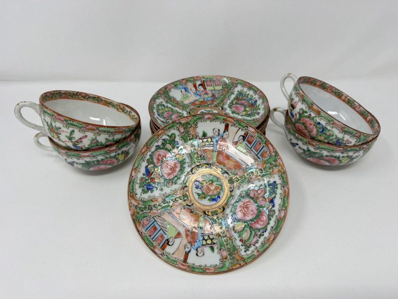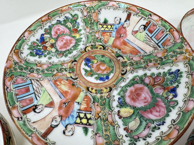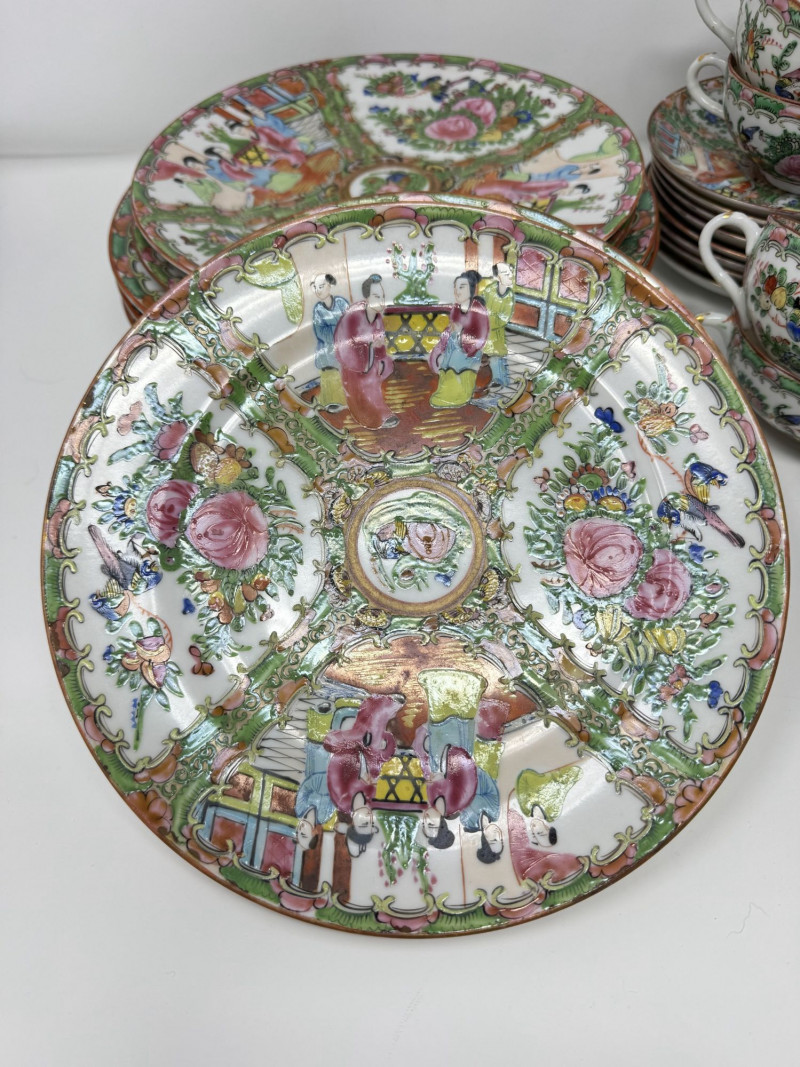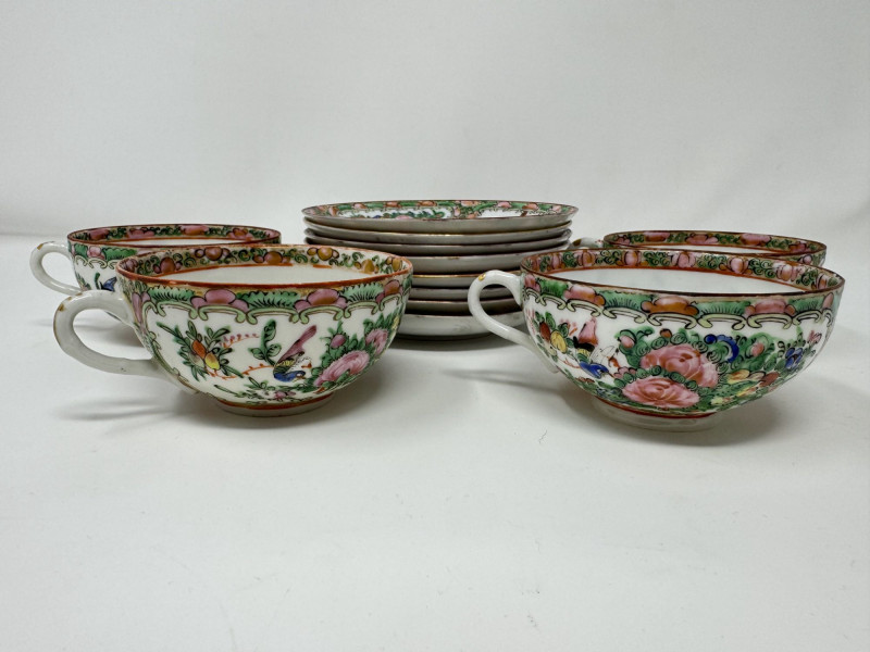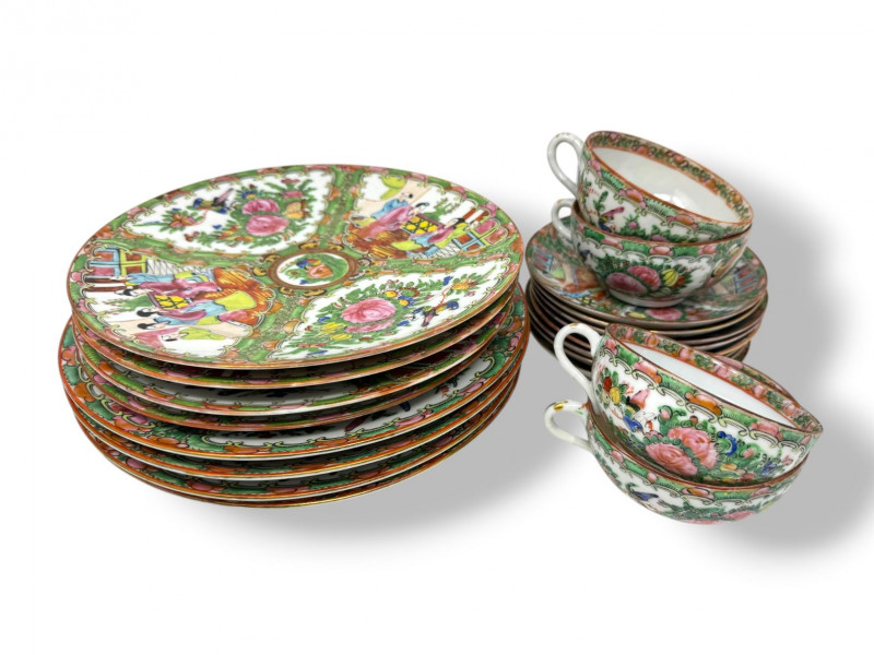 Chinese Rose Medallion Porcelain Dinnerware - Plates, Cups, & Saucers.