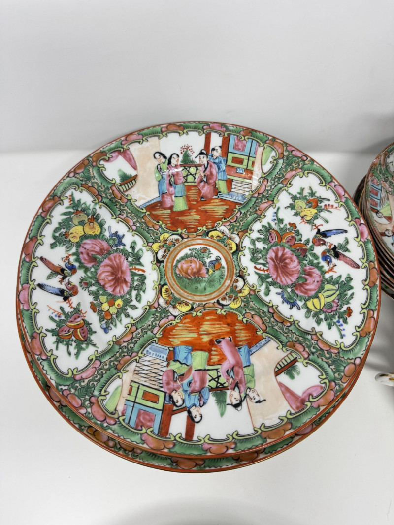 Lot # 95 - Chinese Rose Medallion Porcelain Dinnerware - Plates, Cups, & Saucers