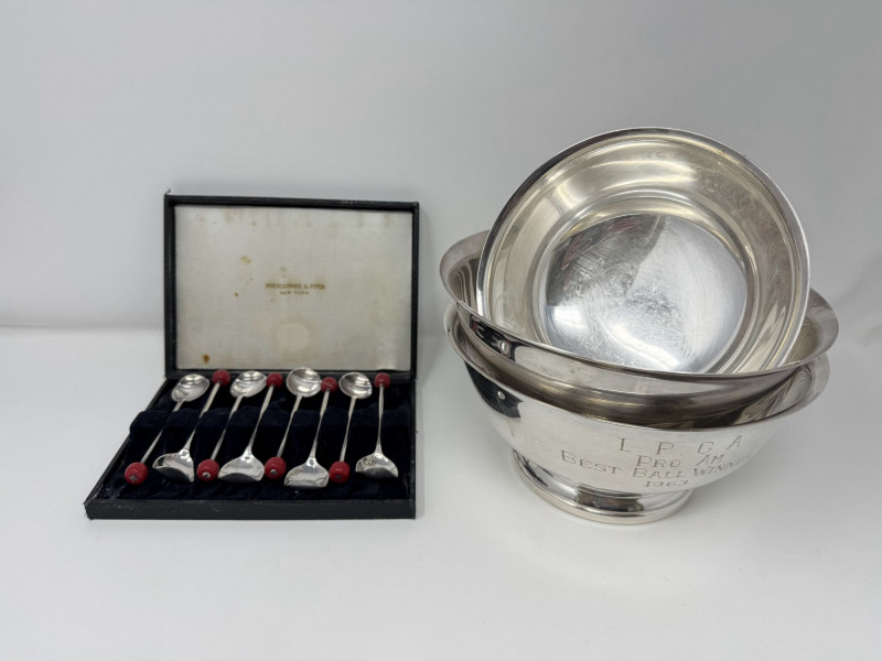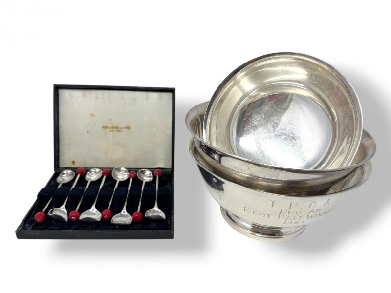 Lot # 96 - Gorham Silverplate Revere Bowls + Abercrombie & Fitch Muddler Set